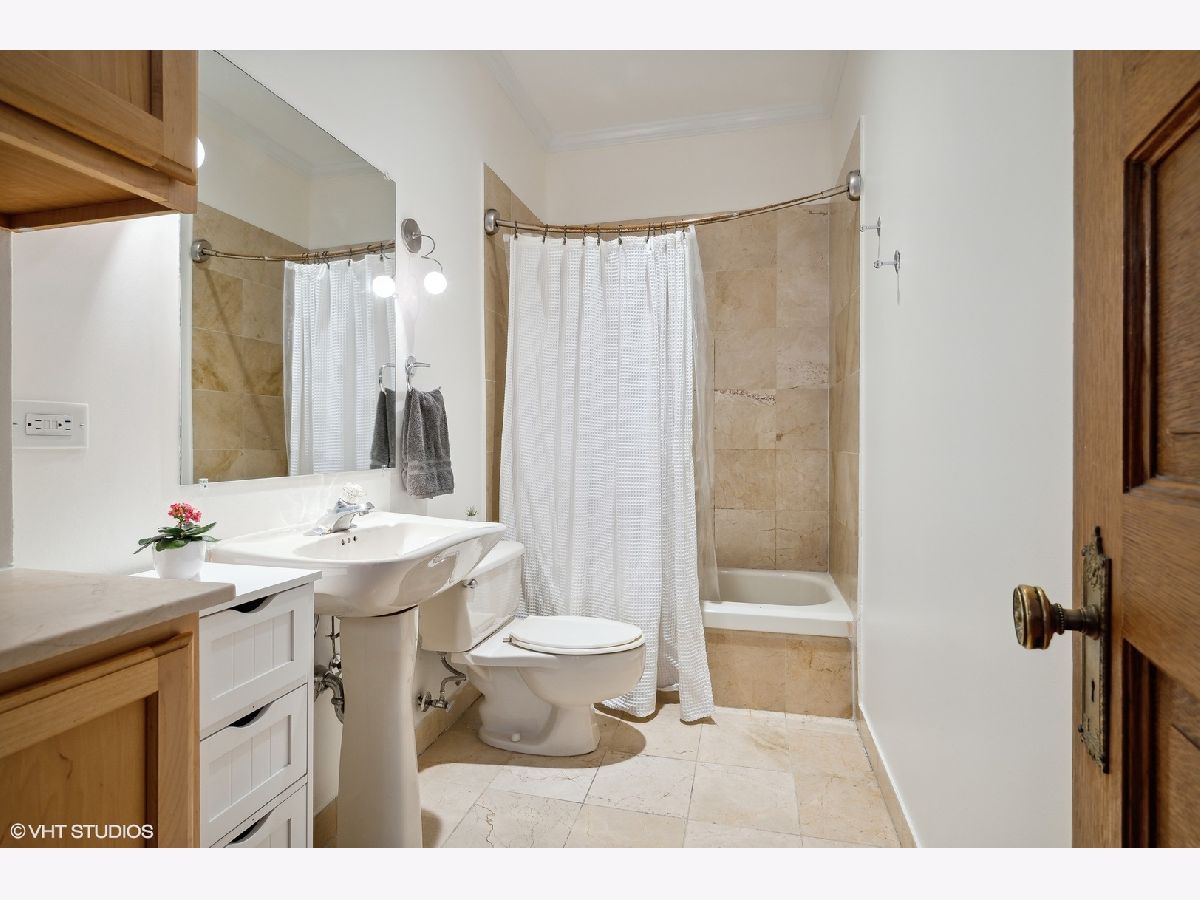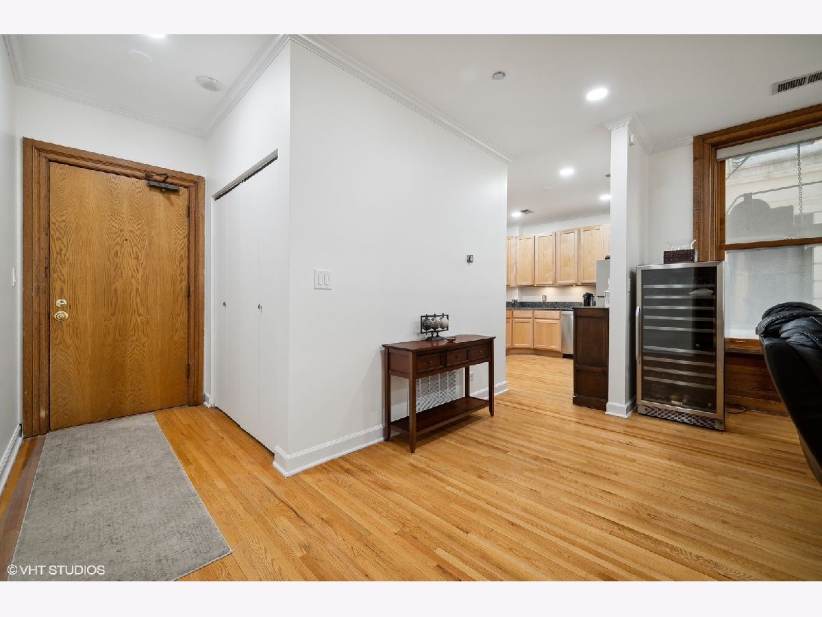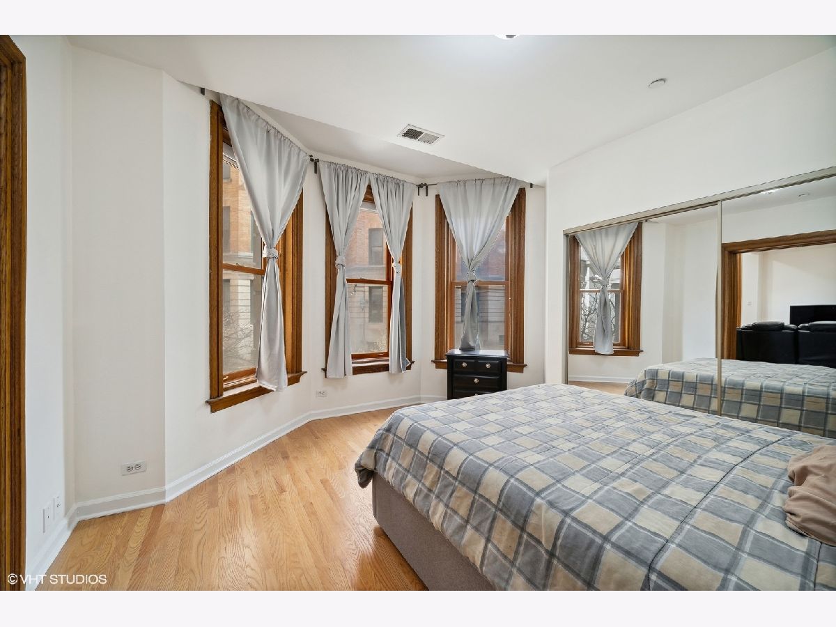 Situated in a meticulously managed landmarked building designed by architect Edmund R. Krause, known as The Commodore, is this elevated first level condo located in Lakeview East's historic Surf-Pine Grove District. Entering through the main iron gates, one is greeted by the grand courtyard being a great contrast to the golden Roman brick facade with terra cotta detailing mixing Classical and Chicago School Designs. The lobby and stately hallways differentiate this building from many around. The unit features charming woodwork throughout and could be painted for a more contemporary feel. Over-sized windows & new LED recessed lighting keep the living spaces bright, accentuating the hardwood floors that are throughout the condo. The spacious living and dining room open nicely to the updated kitchen with space for an island or table. Both bedrooms are nicely separated by a marble bath with the larger of the two being separated with pocket doors making for a great open airy office. Central AC/heat and in-unit W/D completes the package for this sizable property and separate available parking across the street. Be near the lake, transit, and the best of everything in Lakeview East and Lincoln Park. There is nothing currently like it on the market!