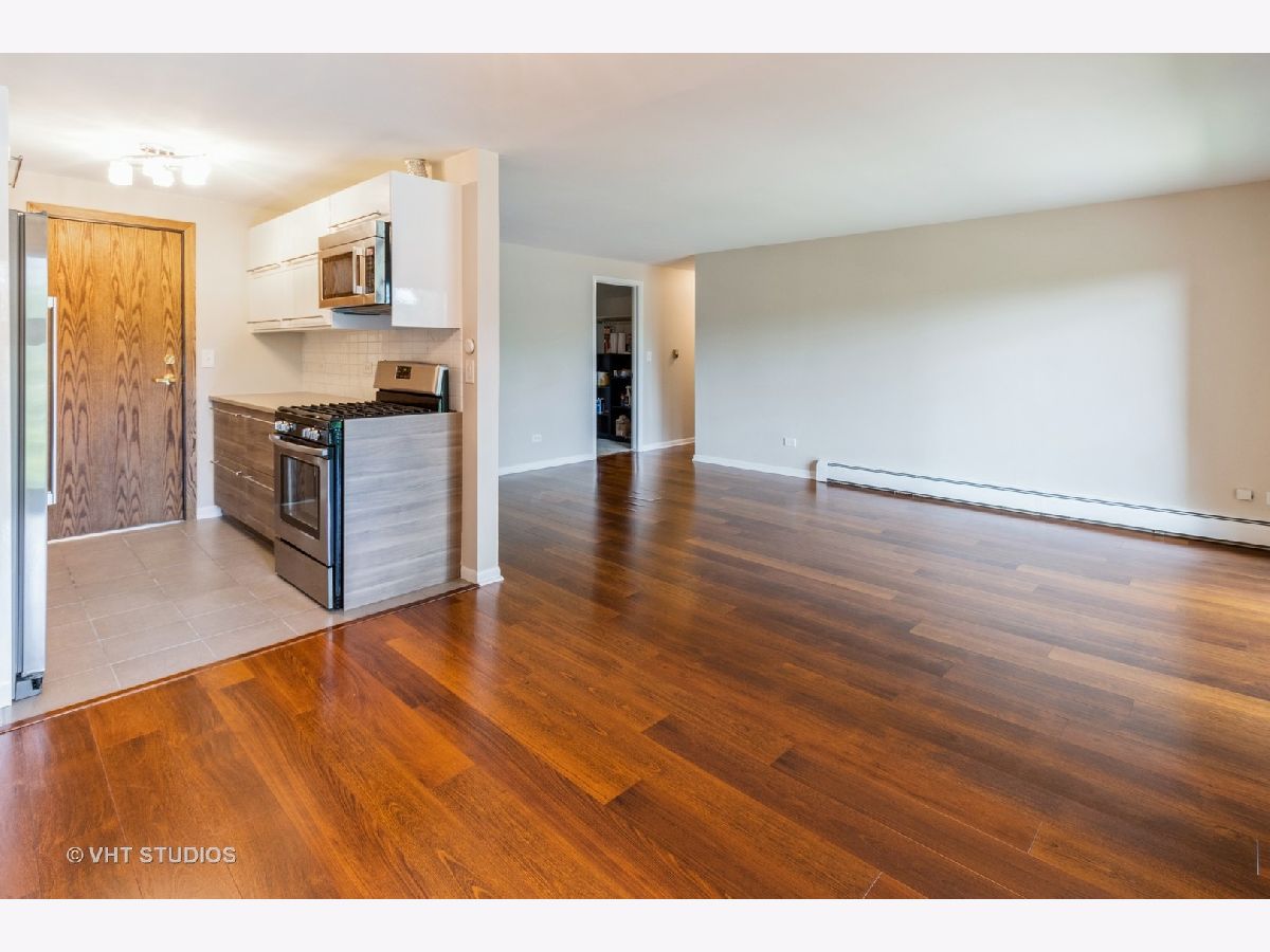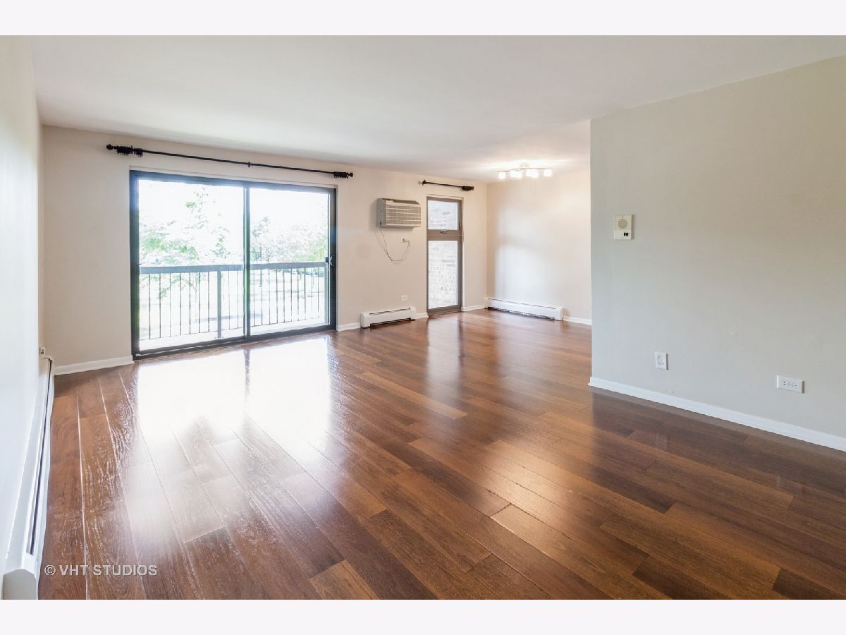 Immaculate, move-in ready 2 bedroom, 1.5 bath corner unit with south facing park view. Great light. Spacious living room and dining area, new kitchen with stainless steel appliances and quartz counters. Balcony off living room. Tons of closet space. Spacious master bedroom with 1/2 bath and large walk-in closet. Large 2nd bedroom with ample closets. Walk-in closet off living room. 2 AC units, 1 assigned exterior parking space. 3 year old noise abating windows. Well-maintained building. Quiet residential street close to expressway, LA Fitness and shopping.