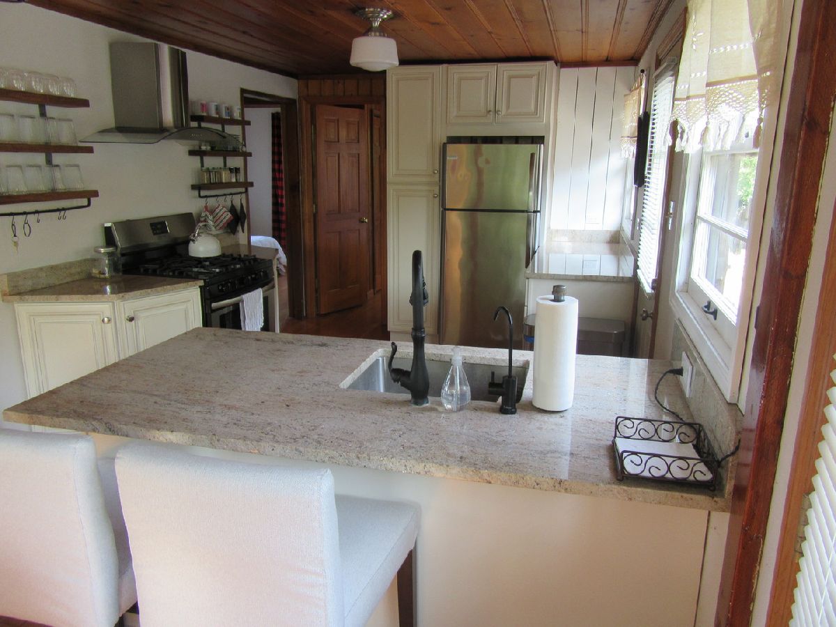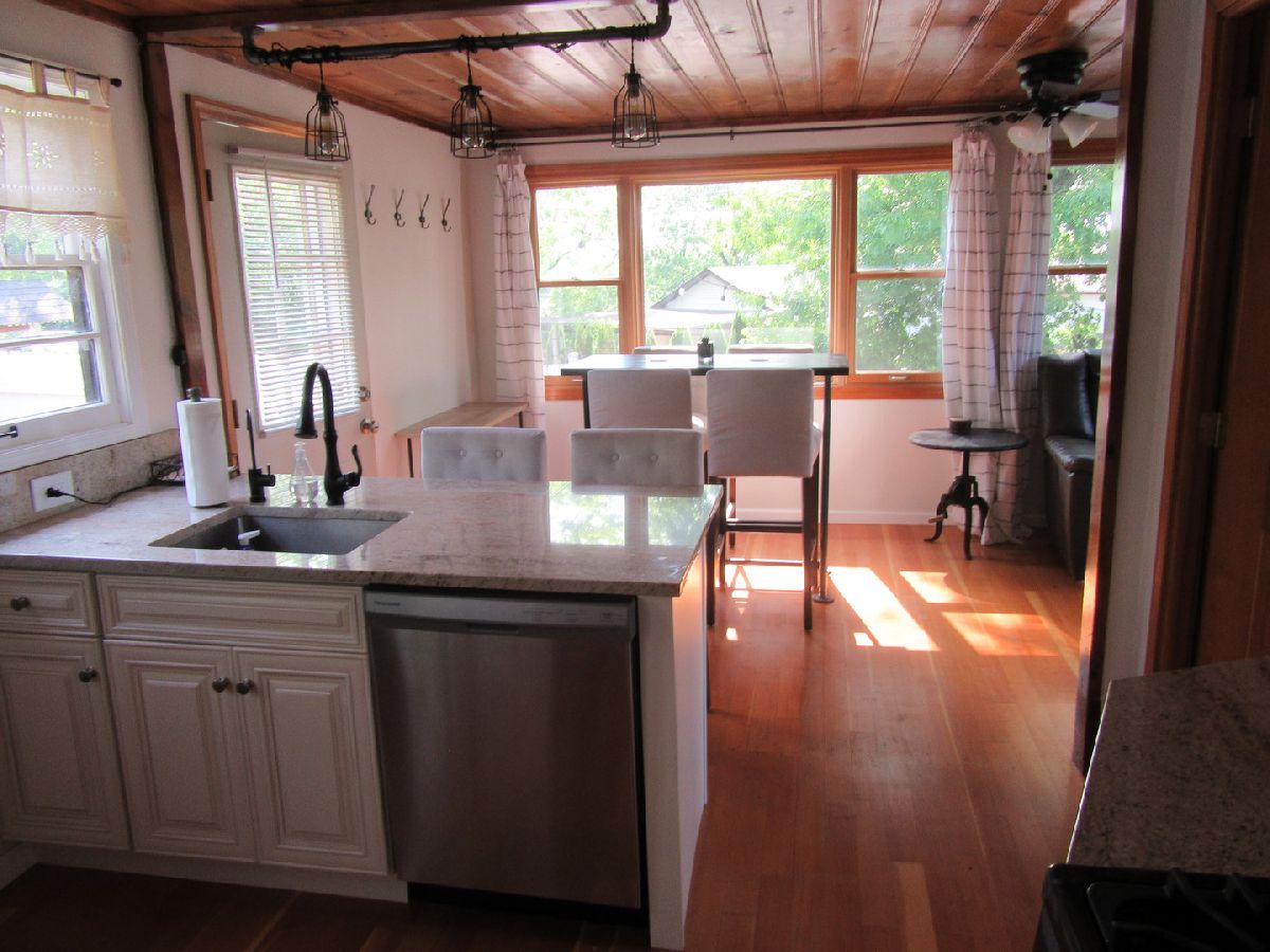 The ideal summer get-away home with lake view and lake rights! This charming, bright, & cozy cabin has been renovated w/new cabinets, granite countertops, S.S appliances, all new light fixtures. New roof (2022) and Colligan water softener and reverse osmosis (2021). Septic & well have been serviced and updated in 2021. Great view of the lake from living room, kitchen and the front yard. Fenced in front and back yard.
