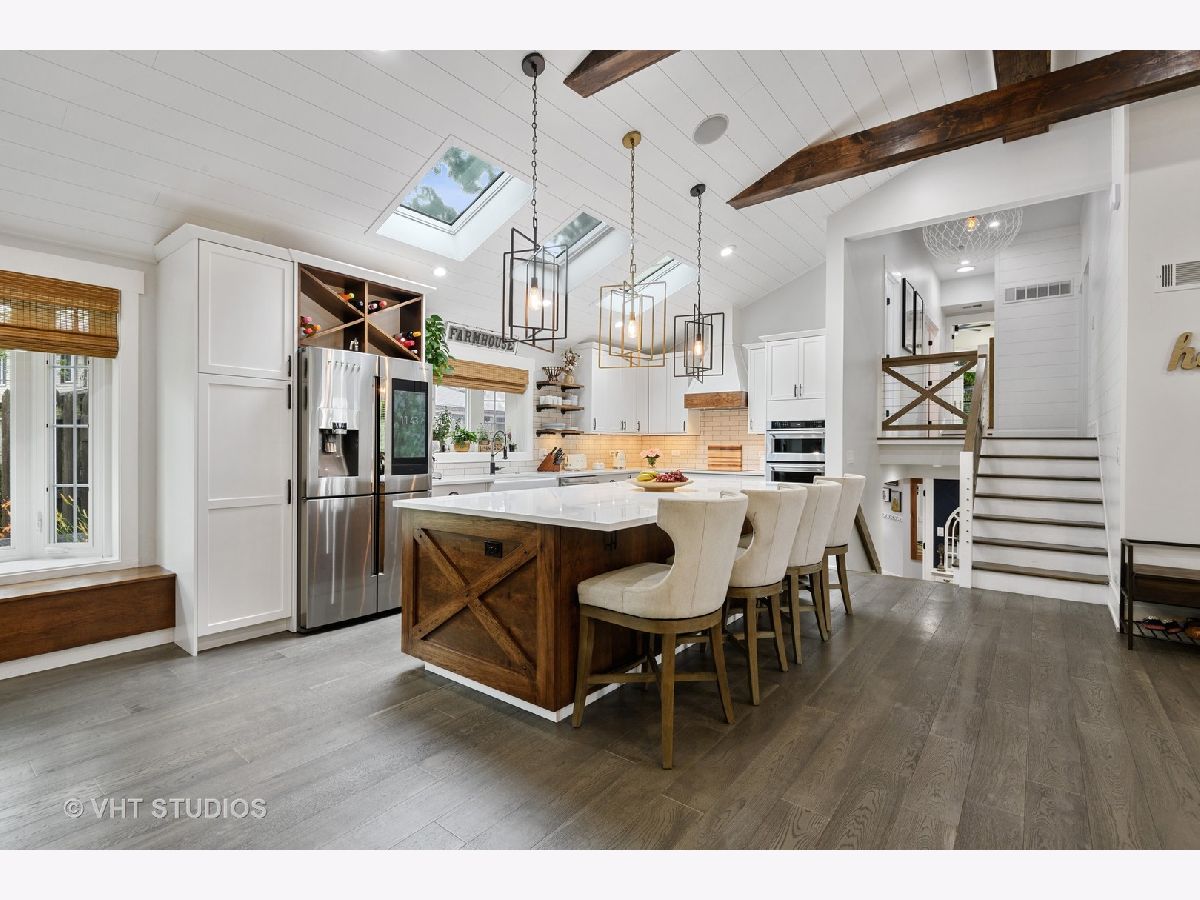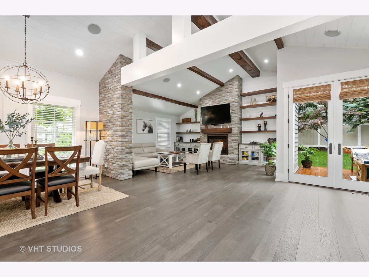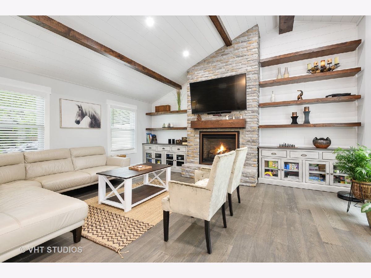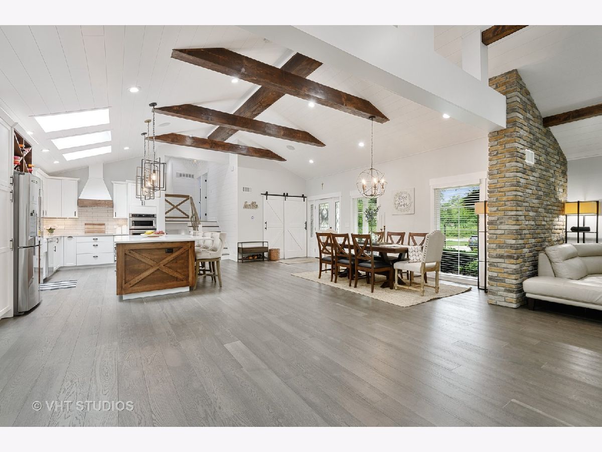 Stunningly Renovated 4 Bedroom, 3 Bath Home in Northeast Deerfield! This is Not your cookie cutter home. Recent substantial renovation has created a breath taking main floor open floorplan with Dramatic Vaulted and Beamed ship lapped ceilings. Bright white kitchen with slow close cabinets/drawers and under cabinet lighting, Stainless Steel Appliances, Quartz counters, 9 Foot island with built-in storage and seating for 5+. Oversized Skylights allow for great natural light. Separate Dining area. Living Room with Gas Log Fireplace. New 6 1/2 Inch wide wood flooring. Speaker system thru-out Main Level. Kitchen area flows out thru New 8 Ft Patio Doors to deck space and yard. 2nd Floor has 4 Bdrms & 2 Bths including a Primary Bedroom suite with Walk-In Closet, Juliet Balcony overlooking Forest Preserve and updated Bathroom with Double Vanity, Granite Counters, Walk-in seated shower, Heated floors/Towel Bar, Grohe Fixtures and Toto Toilet. 2nd Floor Guest Bath completely gut renovated with White Subway Tile, Heated Floors and Toto Tankless Toilet. Lower Level has spacious Family room w/ great natural light, Gas Fireplace and Substantial Closets for storage. Newly Remolded Bathroom w/ shower. Full Laundry Room/ Mud Room with Seated Built-in Storage. All Interior, Exterior Doors, Trim and Windows have been replaced. All New Electrical and Majority of the Plumbing is New. Foam Insulated Ceilings. 2 Car Attached Garage w/ New Insulated Main Door and Side Mount Door Opener that has Wifi and Battery Backup. Zoned HVAC with Nest System. New A/C Unit in 2017. Professionally landscaped exterior. Close to Award Winning Deerfield Schools, Parks and Town.