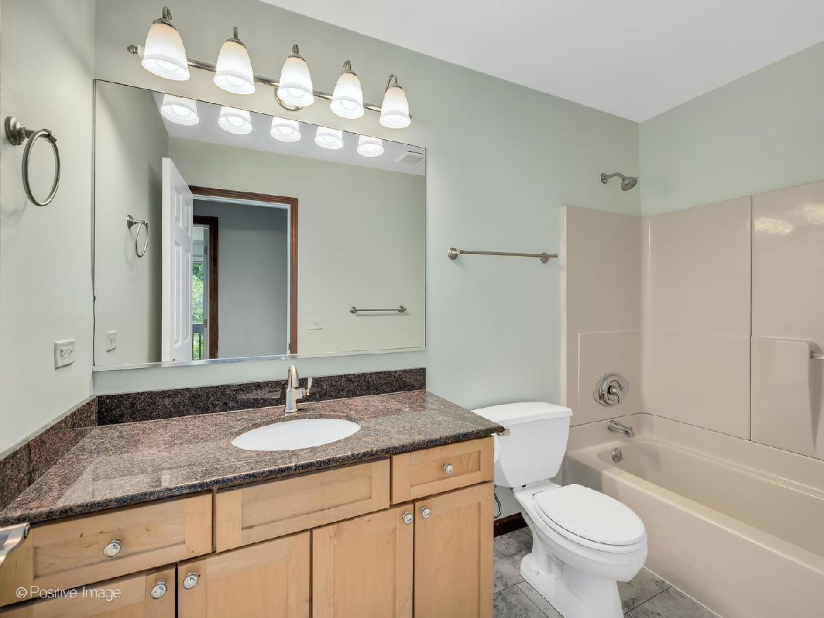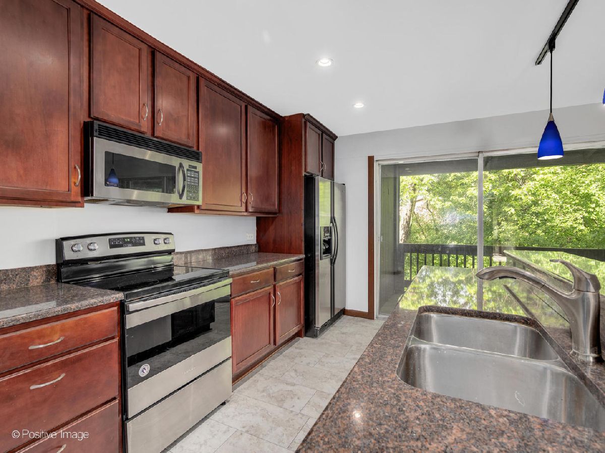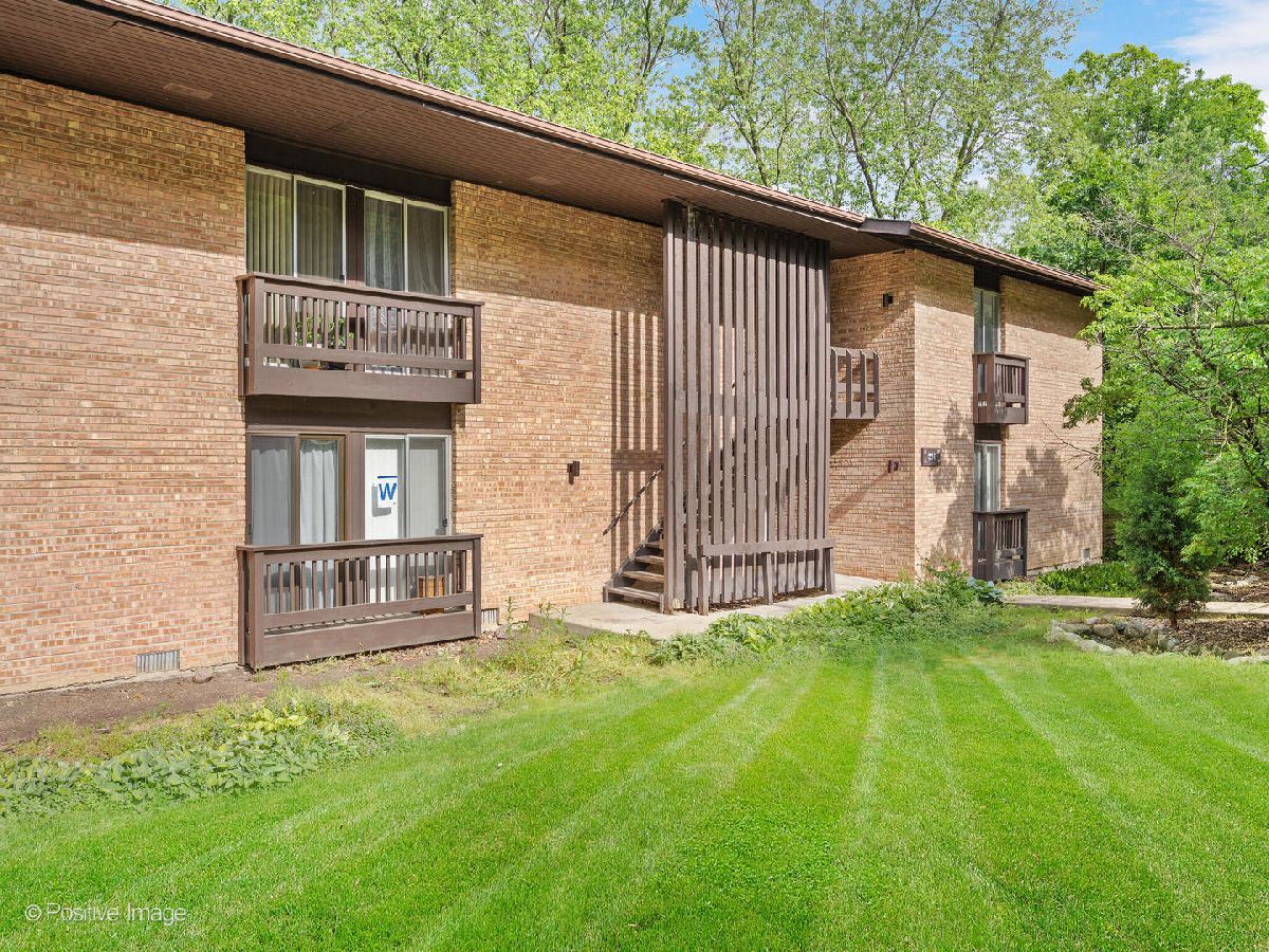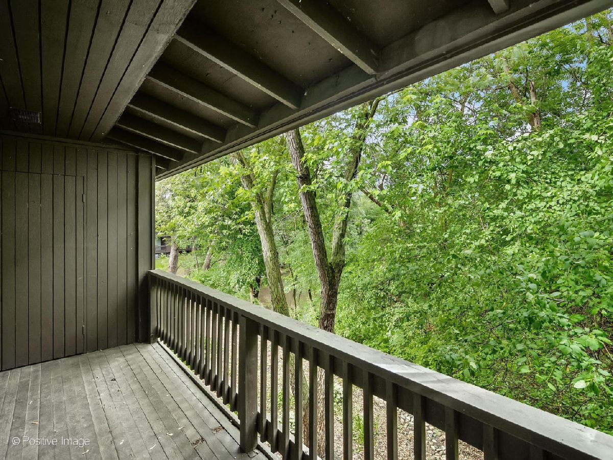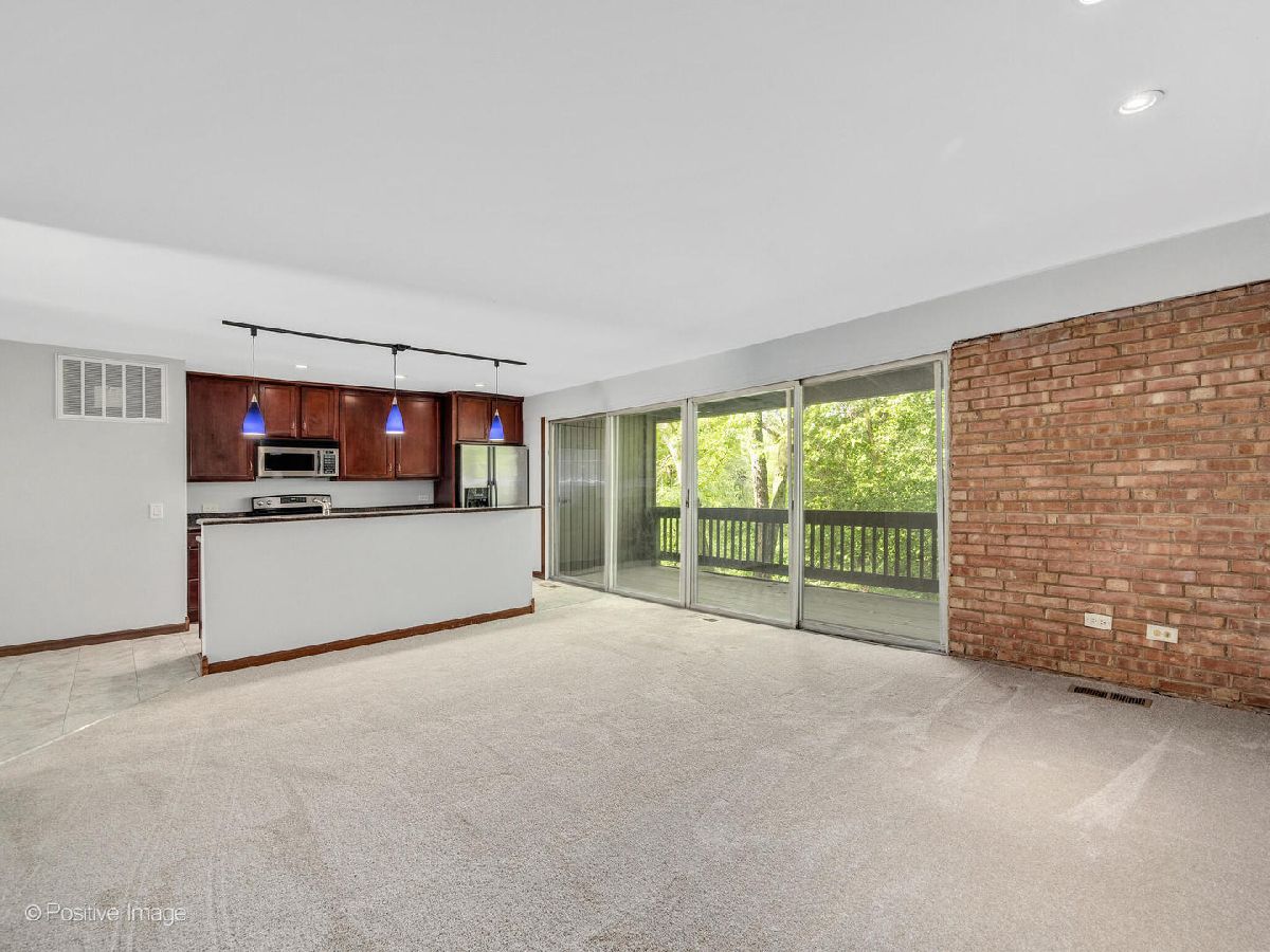 Beautifully updated end unit with two bedrooms and 1 1/2 baths. Kitchen with granite counter tops, breakfast bar, stainless steel appliances. Balcony with private view of trees, pond and stream.Wood burning fireplace adding charm to the open floor plan. Enjoy the amenities that this complex offers from skiing, outdoor pool, sand volleyball and more.NEW WATER HEATER, NEW A/C, NEW DISHWASHER, Newer Oven. Minutes to I355 & I88. Close to train and pace bus runs through the complex as well. (Parking space is 122-1)