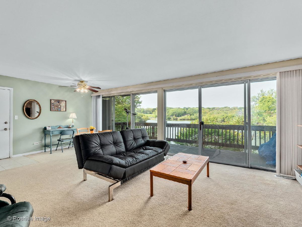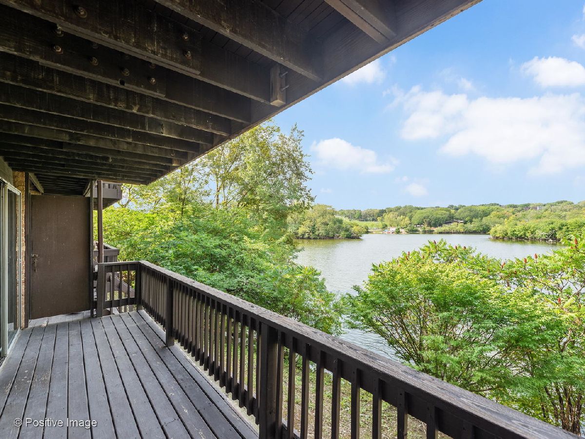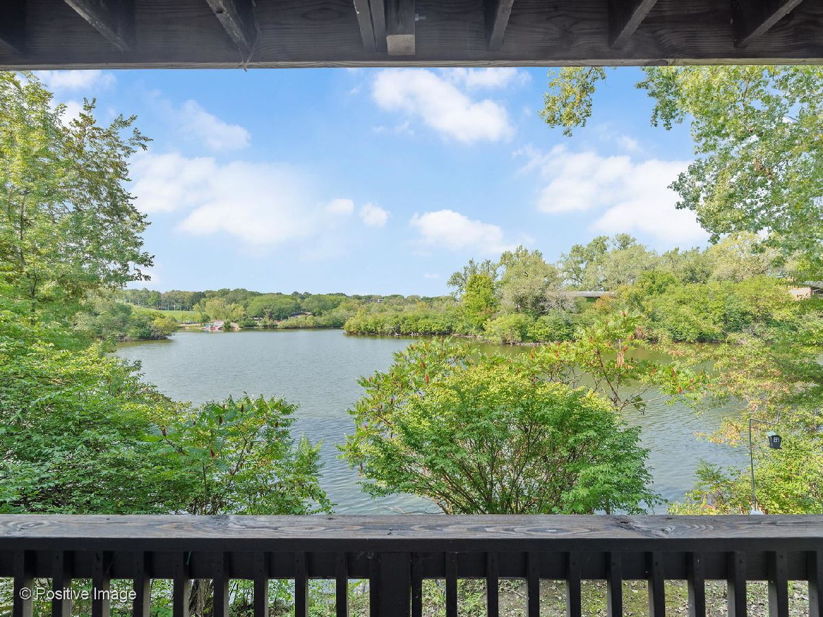 Lovely first floor unit with private entry will welcome you in with the amazing immediate views of the glorious greenery and lake as you look out your full wall of windows/doors in the living room where the showcase fireplace and brick wall will compete for attention. Stainless appliances in the kitchen with decorator lighting and plenty of cabinets and counters overlooking the dining area. Good size bedrooms and closets with washer/dryer in unit make this home the one. Parking spot 80-5 right in front.Fish from your deck or enjoy the Four Lakes lifestyle with four pools, workout facilities, volleyball courts, tennis courts, boat rentals, walking paths, skiing/snowboarding, restaurant & bar, and convenience store and Easy access to I355 and I88. Impress yourself with this great find! This unit would also work well for those with limited mobility.