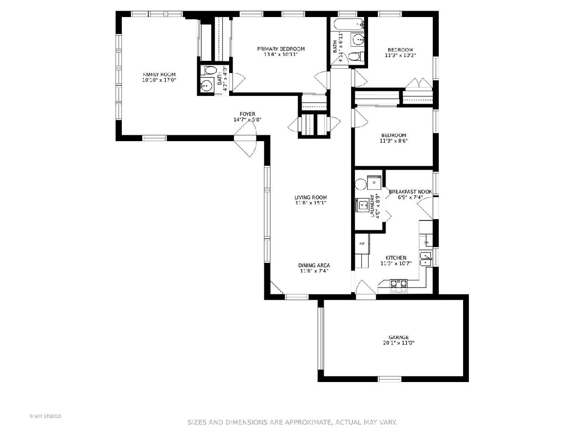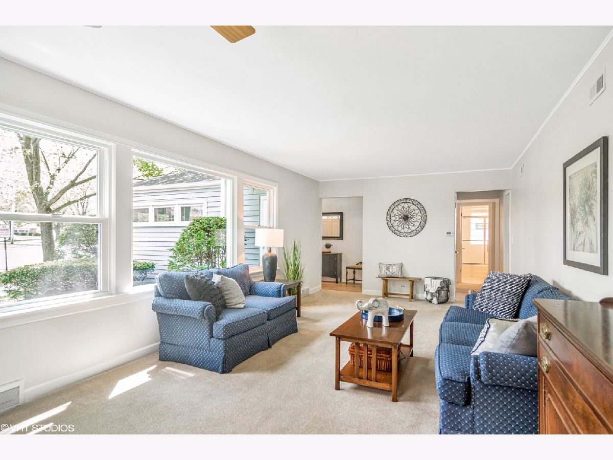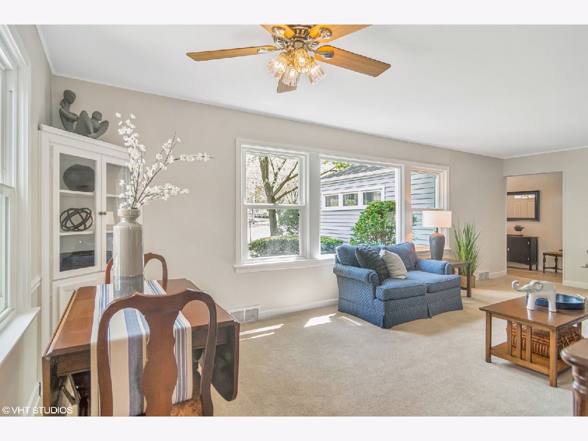 This ranch home offers a wonderful location just minutes from downtown Des Plaines, multiple parks, forest preserves, commuter train, & Maine West High School. It has a warm and welcoming feeling when you walk in the door and you'll love all the natural light in the living room from multiple windows. The remodeled kitchen offers stainless appliances and plenty of storage in the fresh white cabinetry. The charming eating nook is ideal for meals or working on projects. The family room is the perfect place to relax and has space to create a work or study zone if needed. All of the bedrooms feature hardwood flooring, neutral paint, plus white doors and trims. There are also hardwood floors under the carpeting in the Living/Dining Room. Other features include convenient main level laundry, one full and one 1/2 bathroom. The home has updated lighting and other cosmetics including fresh and light on-trend paint colors throughout. Outside you'll enjoy a large patio and private fenced yard. Garage door was replaced in 2021, furnace is 2018, water heater in 2014, and living room windows in 2009.