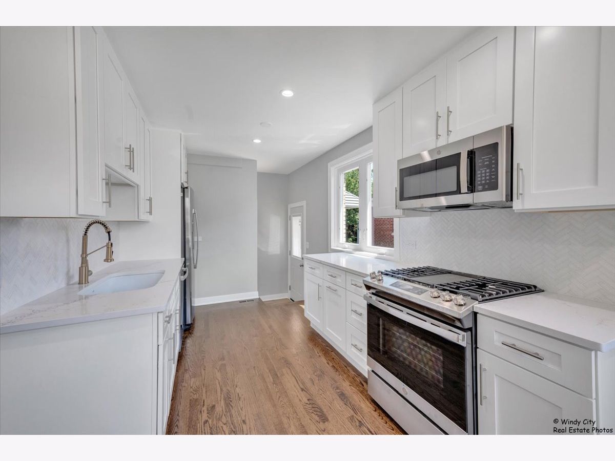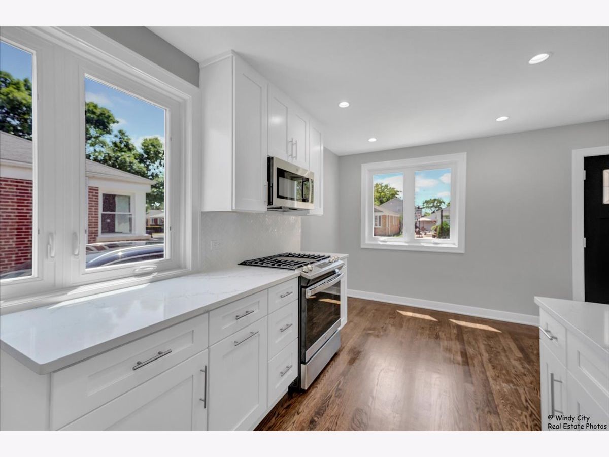Completely renovated ranch-style home in South Oriole Park, featuring over 1500 square feet of fully remodeled living space. The main level offers a spacious living and dining area that flows effortlessly into the kitchen, with two bedrooms and bathroom situated on the opposite side. With hardwood floors and soft wall colors throughout, the kitchen and bathroom designs exude timeless elegance. The brand-new kitchen is equipped with stainless steel appliances, modern cabinetry, high-quality countertops, and stunning tile work. The fully updated bathroom features custom finishes, an elegant vanity, and generous storage options. New windows and doors throughout enhance both energy efficiency and visual appeal. The fully finished basement adds extra living space, including a bedroom with closet storage and a full bathroom with a custom shower. There's also a small room ideal for an office, along with a spacious laundry room offering additional storage. Recent upgrades include a new furnace, water heater, AC system, and sump pump. Conveniently located near major highways (I-90 & I-294), the Blue Line, O'Hare International Airport, and a variety of dining and shopping options, this home also provides ample street parking. Move-in ready, this property promises years of comfortable living.