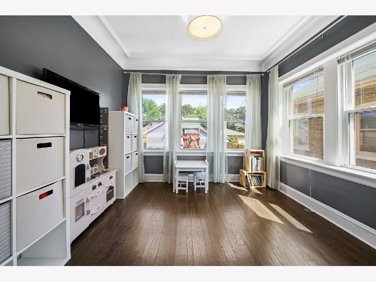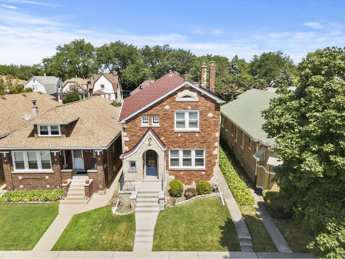 Welcome to this one of a kind beauty that has been completely renovated from top to bottom, inside and out! Space abounds in this amazing home which combines open concept with traditional features making it one of the most unique homes you will find in the area. The grandness begins as you approach the stately exterior with front porch leading to the original foyer. This then leads to the formal living room adorned with windows throughout and a wood burning fireplace. Hard wood floors then flow through to the open concept galley kitchen with large island extending into the dining room. The first floor also features a walk-in pantry and a play room with wall to wall windows allowing for wonderful natural sunlight. On the second floor you will find a large cedar closet as well as a built-in linen closet, a huge primary bedroom with walk-in wardrobe closet, 2 additional bedrooms, large bathroom with double sinks, and a bonus room that leads to a brand new pvc balcony facing the beautiful, fenced in yard. The basement is completely finished with tool room, huge laundry/storage area, full bath, bedroom, and kitchenette with exterior access. Additional storage to be found in the attic. Most work completed in 2015 including: Dual zoned with two new a/c units, front brick tuck pointed, all new windows (*except basement windows*), new furnace/humidifier, new boiler, all new electric, plumbing, sump pump, tile drainage system, new roof, new front concrete stairs, and chimney tuck pointed, swept and sealed. New in 2018: Entire backyard landscaped, privacy fence, new sidewalk, new brick patio, brand new 24x24 garage with attic, and entire home insulated including attic. Conveniently located minutes from the I-90, Starbucks, and shopping. This home is truly exceptional with nothing left to do but move in and enjoy! *please note outdoor play set and washing machine are excluded*