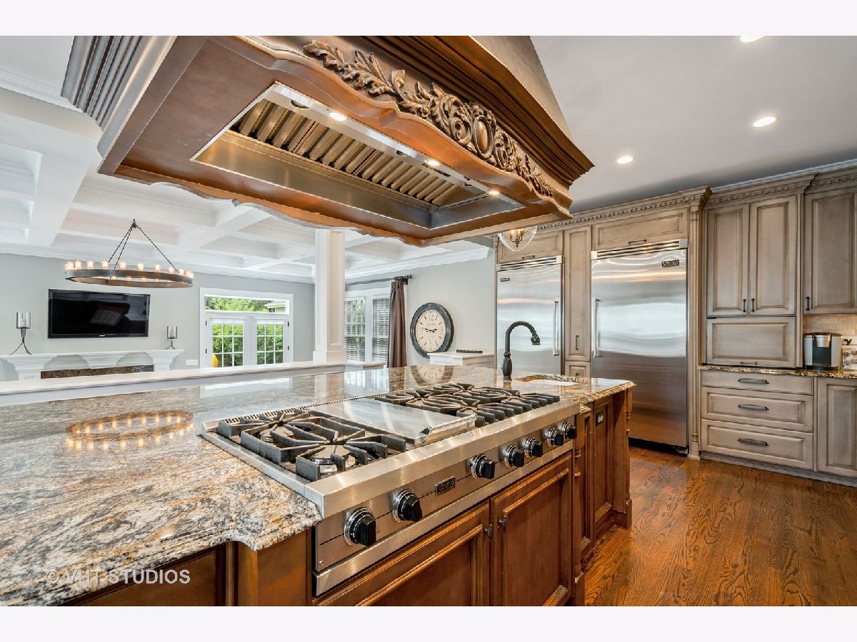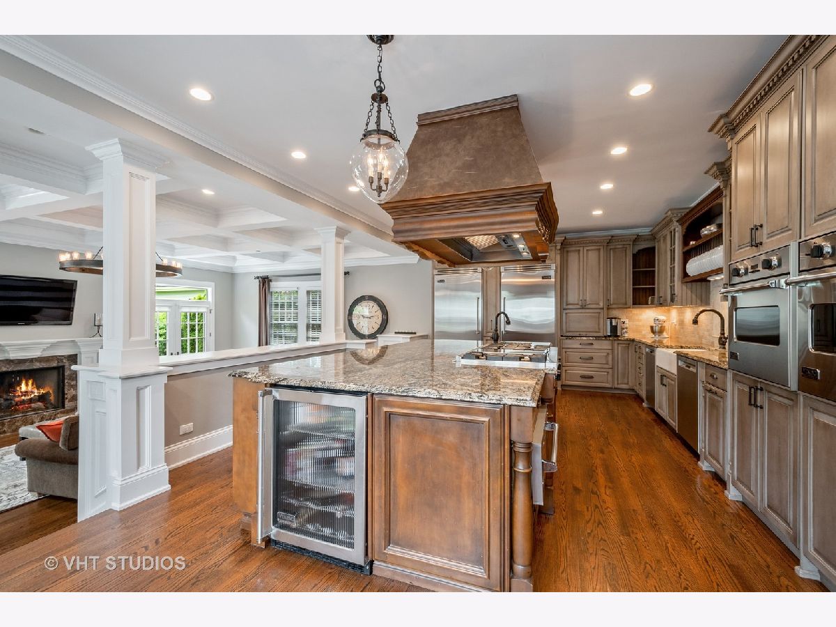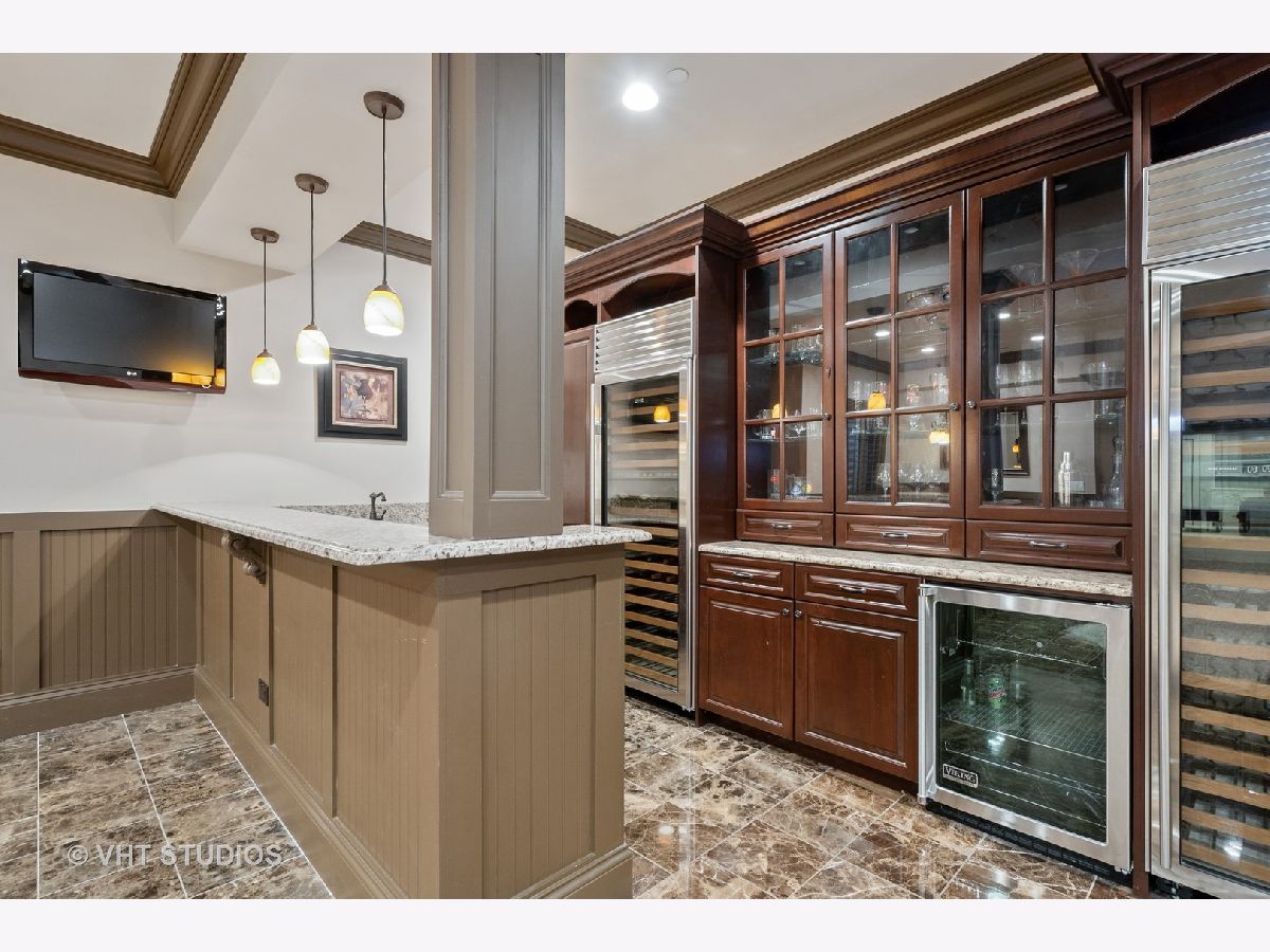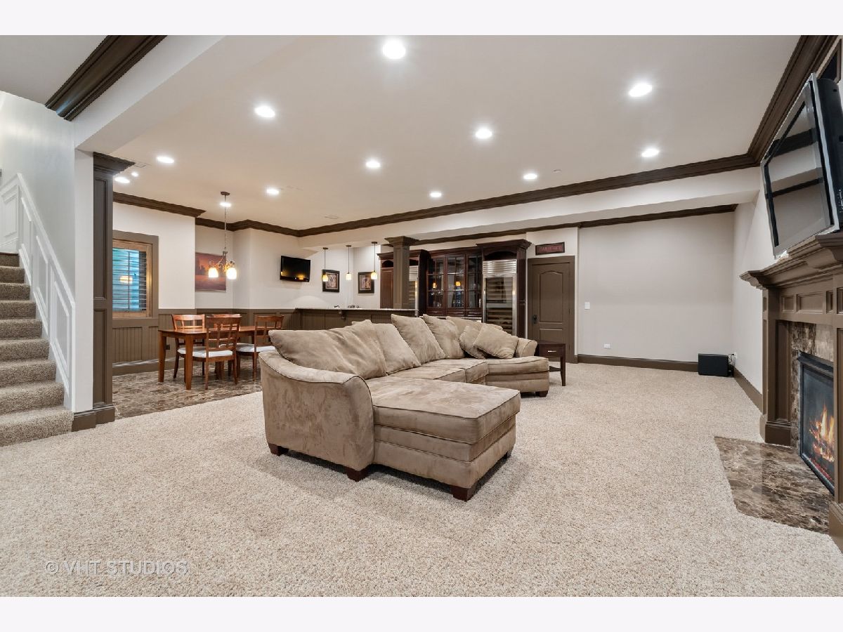 Village living at its finest! This exquisite home is simply perfection. From the beautiful paver walkways that greet you to the stunning crown moldings, coffered ceilings, raised panel wainscoting and five fireplaces, no detail has been overlooked. Offering a remarkable open layout that exudes luxury with beautiful finishes throughout. A charming sun room drenched in sunlight from the walls of windows welcomes you to this home, leading to the entry flanked by a large study and dining room. The spectacular kitchen is a dream with a huge island, top of the line Viking appliances, two dishwashers, two beverage centers, 36" column refrigerator & freezer, farmhouse sink, granite counters and sweet breakfast nook. The family room is a perfect gathering place with fireplace, built-ins and French doors leading to stone patio. The second level features an amazing master suite. The luxury bath is a retreat with jetted tub with fireplace, rain shower with his & her jets and custom walk-in closet. Three additional spacious secondary bedrooms with en-suite baths and laundry room complete the second floor. Prepare to be amazed by the finished lower level! Enormous recreation area with fireplace and custom wet bar is ideal for entertaining! Wet bar with dishwasher, two column Sub-Zero wine refrigerators as well as a beverage fridge! Play room, fifth bedroom and full bath round out this extraordinary living space. Professionally landscaped with stone & brick patio, play area and brick drive leading to heated garage. Walk to town, train, shopping & restaurants! Don't miss out on the opportunity to own this incredible gem!