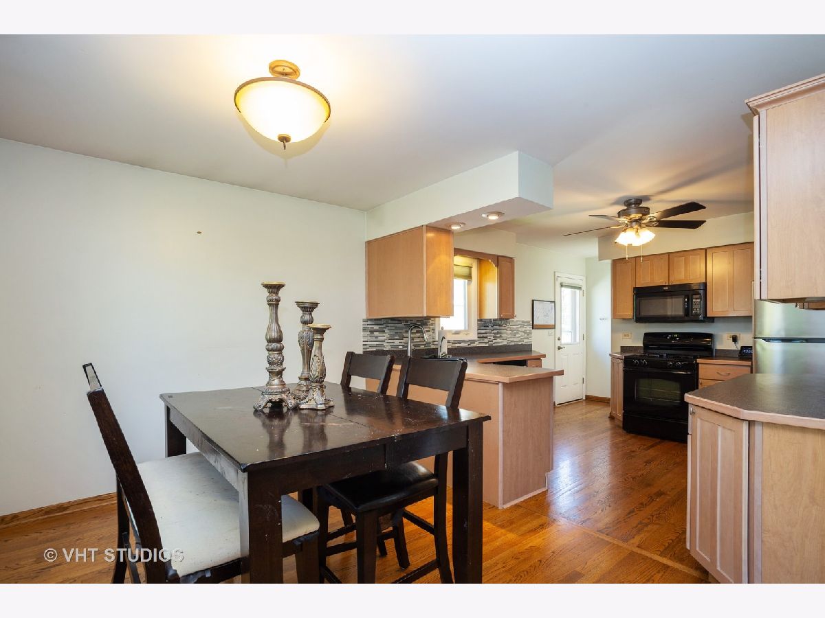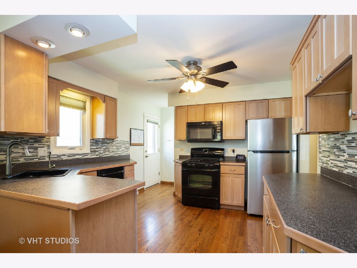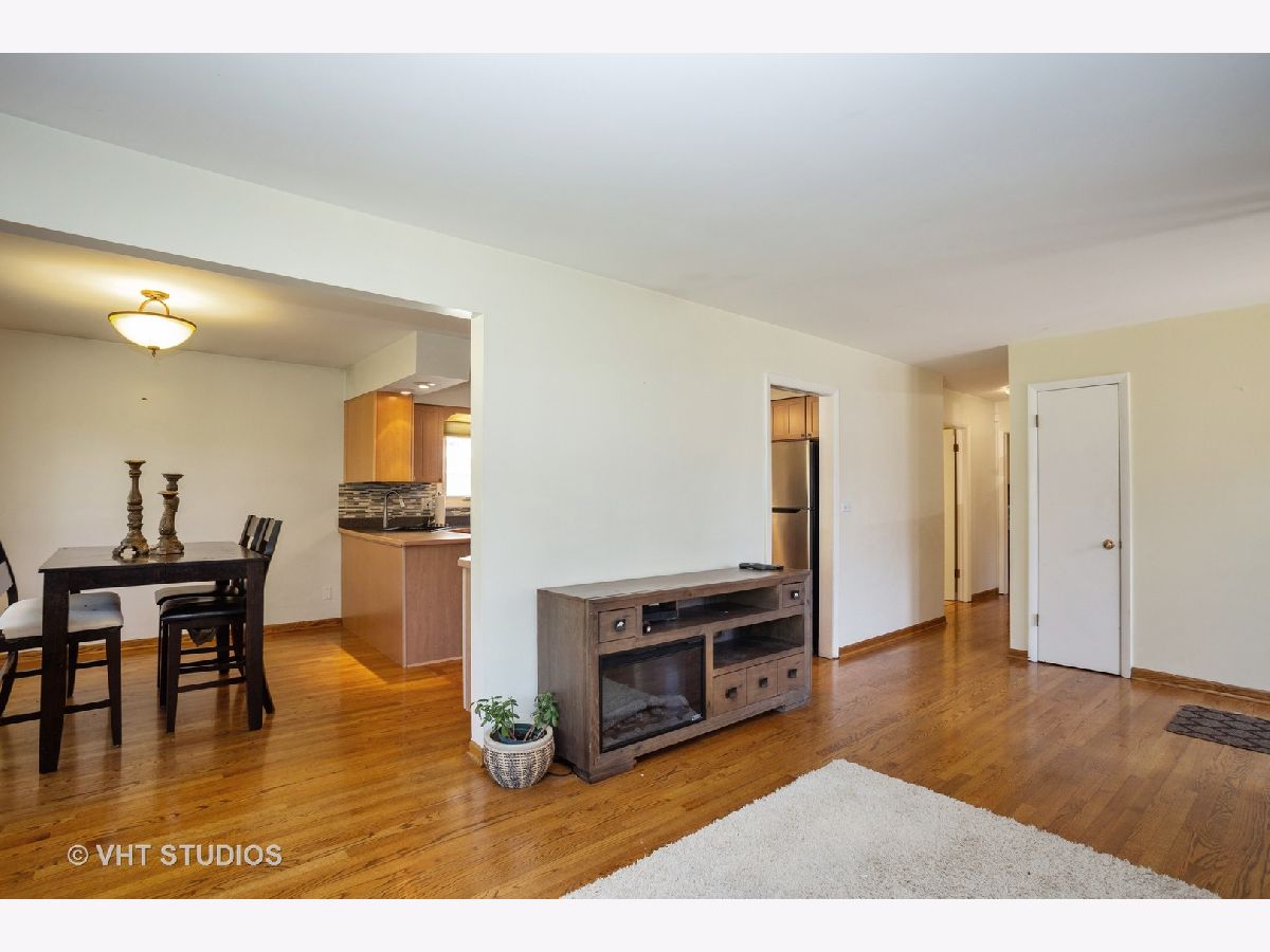 Attractive ranch style home, features newer, fully applianced kitchen w brkfst bar, sep dining rm, 3 good sized bdrms, 2 full baths, hdwd floors throughout 1st level, full finished bsmt w/bath, laundry & extra storage space. Newer windows. 2 car garage. Deep lot w fully fenced yard & patio for outdoor entertaining. Exclude Gray Front Load Washer. White Washer & Dryer remain. Short distance to Metra, Highways, Shopping & Schools.