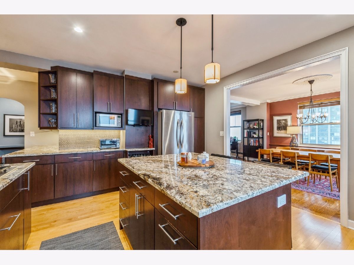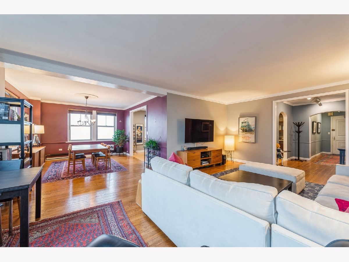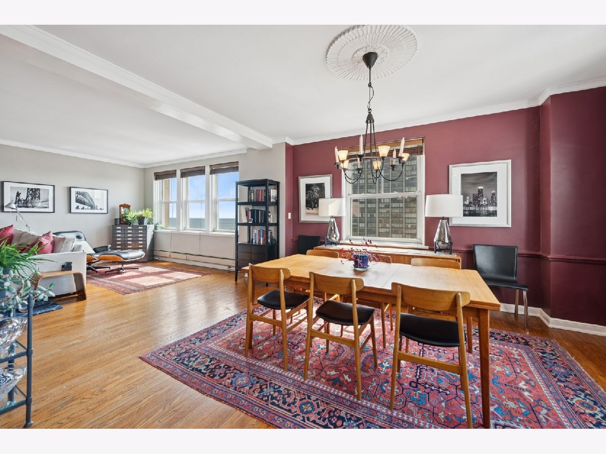 This lovely corner 3 bedroom | 2 -bathroom apartment at the Benj. Marshall designed Edgewater Beach Apartments is move-in ready and features views of the lake, park and city. The apartment offers generous rooms with a modern flow and conveniences like in-unit laundry and a dream kitchen. The wall between the dining room and kitchen has been opened so that the graciously sized living and dining rooms flow into the large renovated kitchen. The kitchen features a center island with seating, double ovens, a Bosch dishwasher and a beverage fridge. The kitchen was expanded into what would have been the pantry and back hall to create even more storage and counter space. If you like to cook or entertain, the thoughtful design is perfect. You find the in-unit laundry just off of the kitchen. The primary bedroom accommodates a king bed, has an en suite bathroom and a southeast exposure. The second bedroom has a custom closet and a shared bathroom with the third bedroom, which is used as an office. The second bathroom has a walk-in shower. There is an oversized, professionally organized walk-in storage space in the third bedroom/office. Enjoy the lakefront bike path & beaches, Bryn Mawr Historic District and Andersonville. Monthly assessments include property taxes, heat, cable, Internet, cooking gas, use of all amenities and a reserve fund contribution. The EBA is a co-op and requires a minimum of 10% down. Parking is $115/month. Sorry, dogs are not allowed. 214 shares.