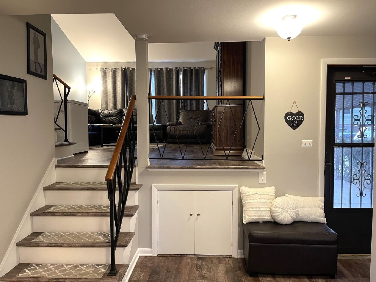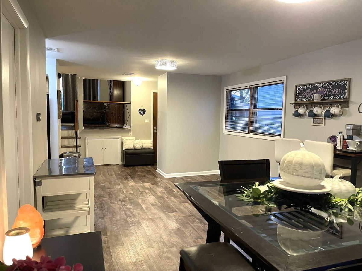 Gorgeous Duplex with open & bright floor plan. Updates of this home include 2022 new roof, siding and 2021 luxury vinyl flooring thru-out 90% of the home & freshly painted. Kitchen has ss appliances & opens to the large dining room/living room combo with sliding doors overlooking a covered concrete patio & spacious fenced yard with large custom dog kennel & a huge 12"X8"storage shed/workroom. 1st floor laundry room w/full size washer & dryer & built in cabinets & counter. Guest bathroom on main floor. Huge family room just a few steps up with vaulted ceilings & large windows for a bright & open atmosphere. The upper level of the home has three good-sized bedrooms and a full bathroom with shower/tub. Partial finished basement/crawl with 3 separate areas, great for storage and or a playroom for small children. also included Nest Thermostat with two temperature sensors which lets you choose where your thermostat measures the temperature in your home to help keep you comfortable.End unit w/private entrance and long concrete driveway with carport. Well maintained home with a fantastic location near public trans, shopping, restaurants. Great place to call home!