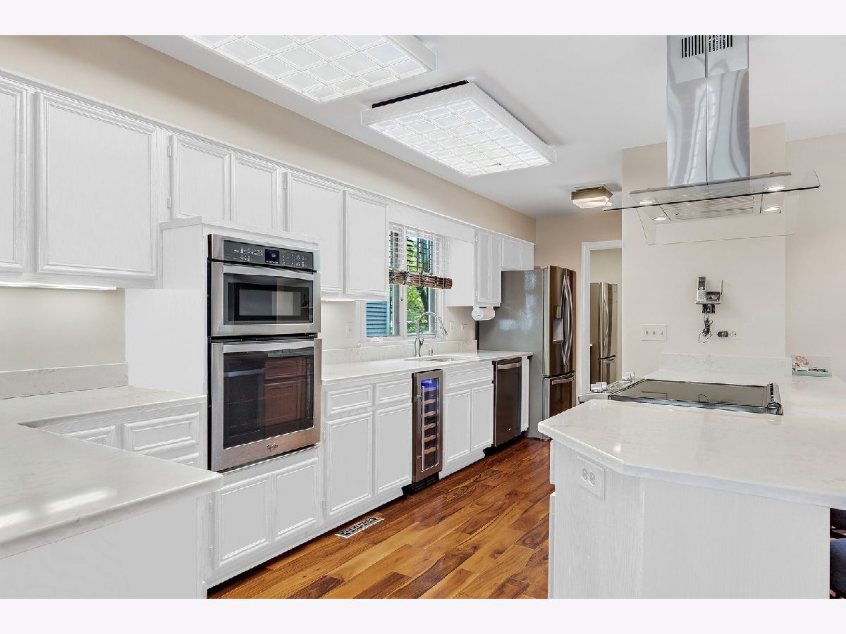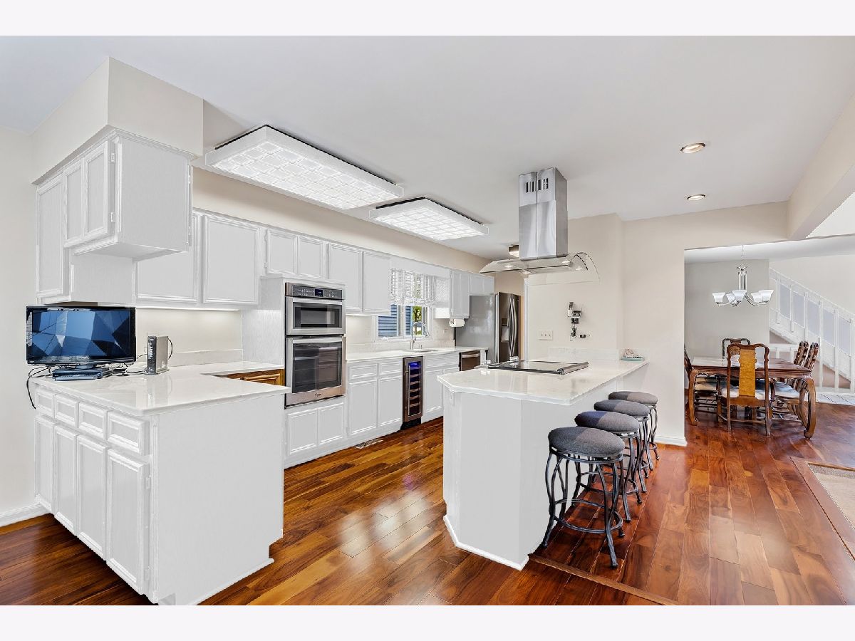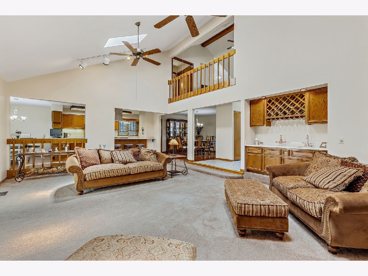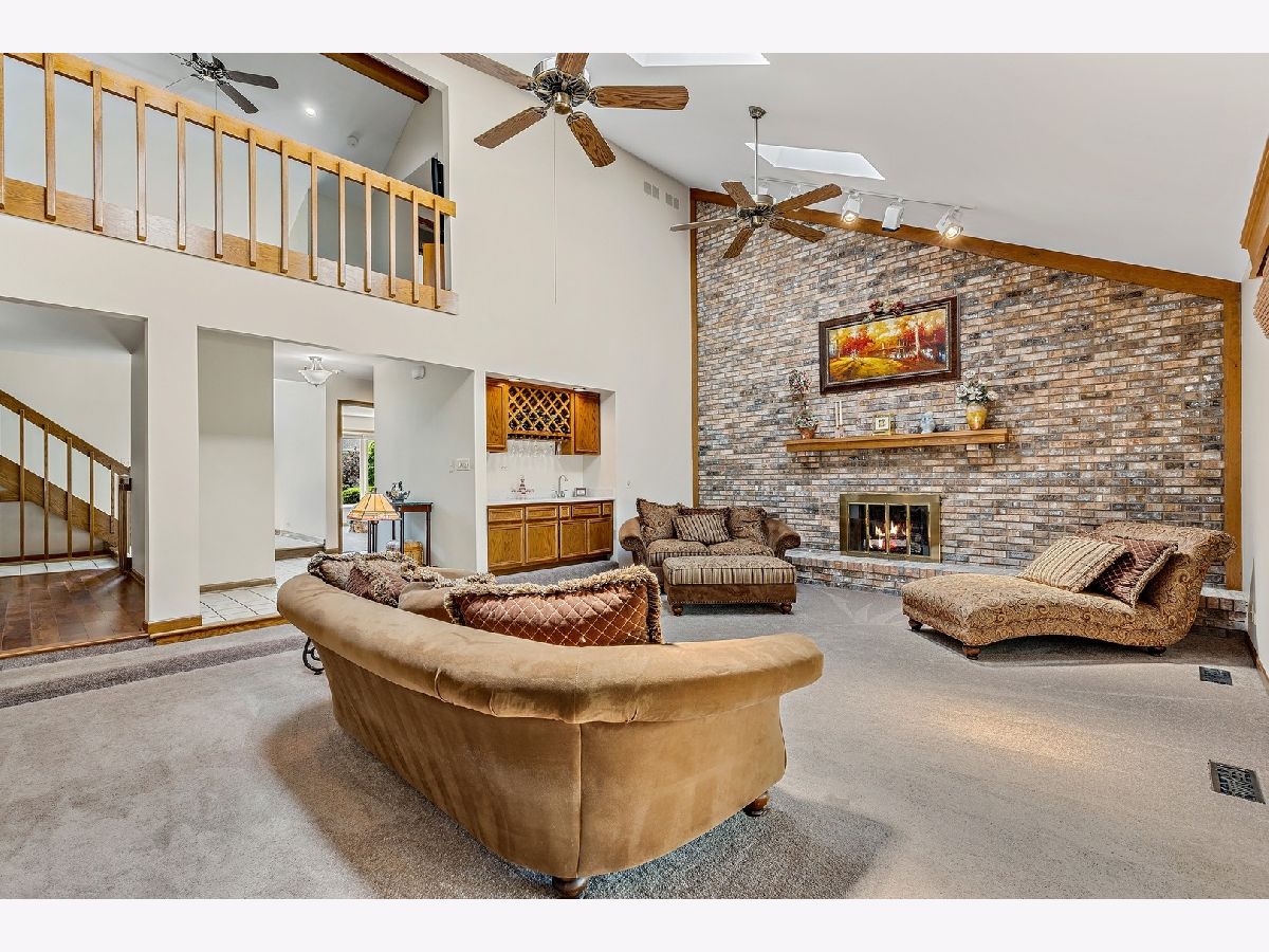 LOTS of new updates just completed! This beautiful 5 bedroom/3 bath home will WOW you with it's dramatic space. Nearly 3,400 square feet plus an additional 1,100+ in the partially finished basement. From the moment you enter through the wide and bright foyer, you will enjoy sight lines that run the full depth of the home and soaring, 2 story ceilings. This wide-open floor plan is perfect for entertaining with the expansive kitchen and separate dining room both overlooking the colossal sunken living room which enjoys a fireplace and glass doors that open to the large deck and back yard equipped with sprinkler system. 1st level has gorgeous new wood floors, and the kitchen has been upgraded with new quartz countertops and SS appliances, including a wine cooler, and boasts not only an extra long breakfast bar but separate eating area as well. The rest of the 1st floor is rounded out with a covert butler's pantry, one bedroom with a gorgeous bay window, full bath and laundry room with a unique laundry chute from the bedrooms above. Large Master bedroom features vaulted ceilings with WIC and an enormous Master Bath that includes a double sink, separate shower, and an extra-long whirlpool tub. Open loft divides the bedrooms as it peers over the Living Room below. Finished basement has an enormous open Rec Room and plenty of storage space. Also included is exceptionally large 5th Bedroom/Office with a built-in desk and WIC. Located across the street from Arrowhead Park with ball fields, courts, playground, and a sledding hill. Convenient access to I-88, commuter train, downtown Naperville, Bike Trails, Herrick Lake, Danada, and Blackwell Forest Preserves, Freedom Drive Restaurants, and shopping including a Costco! (Coming Soon) Award winning school District 203. This home is a must see.