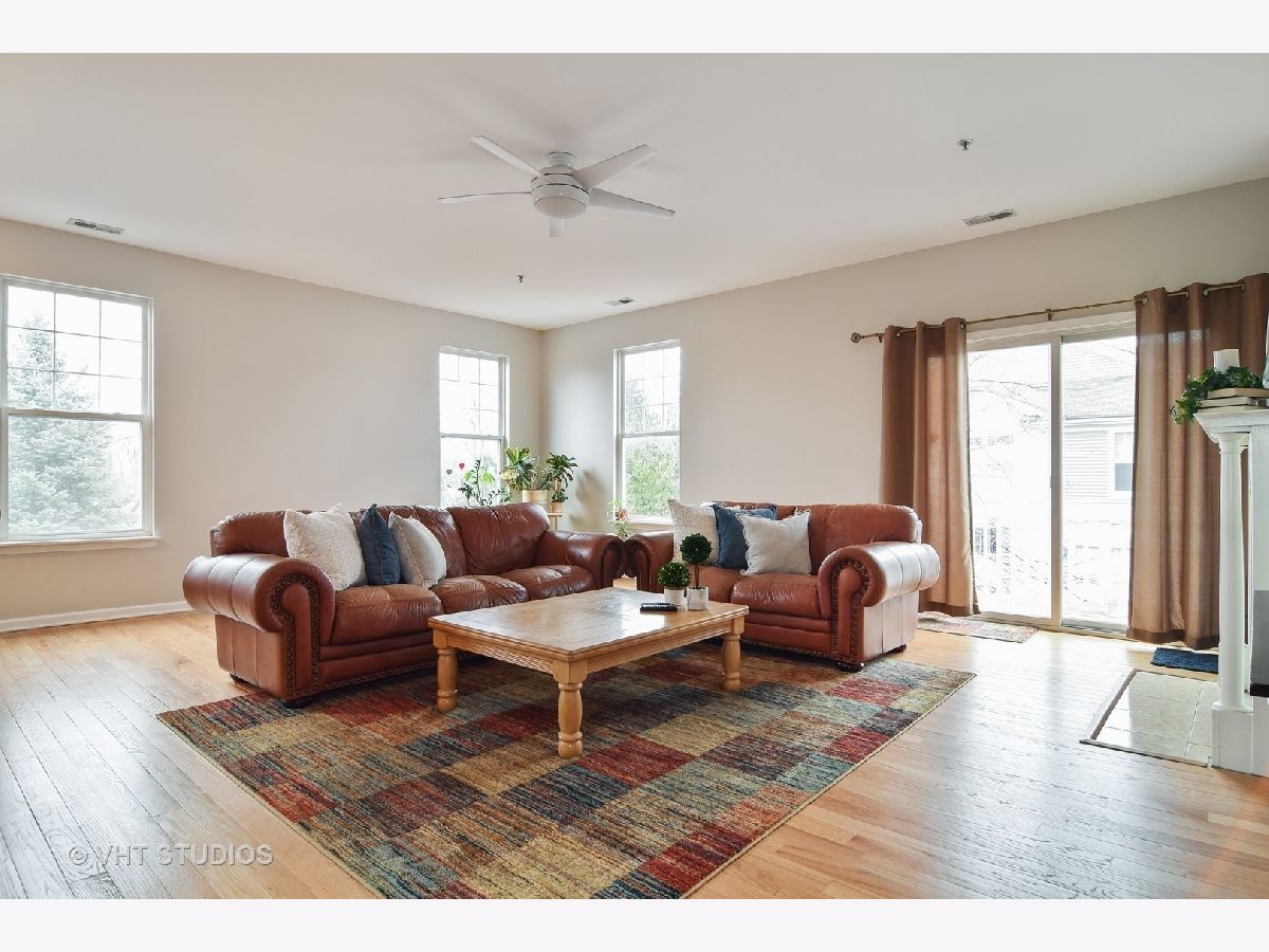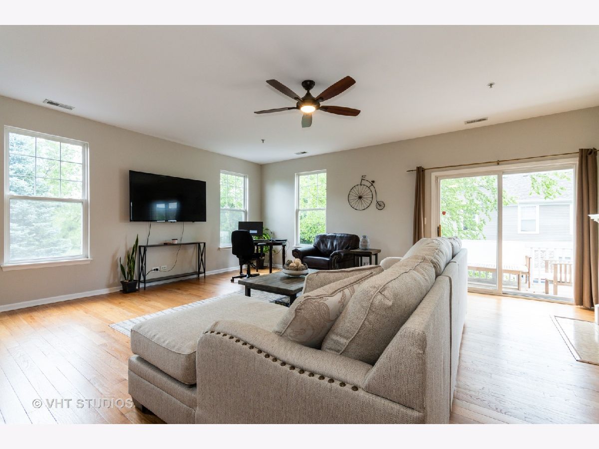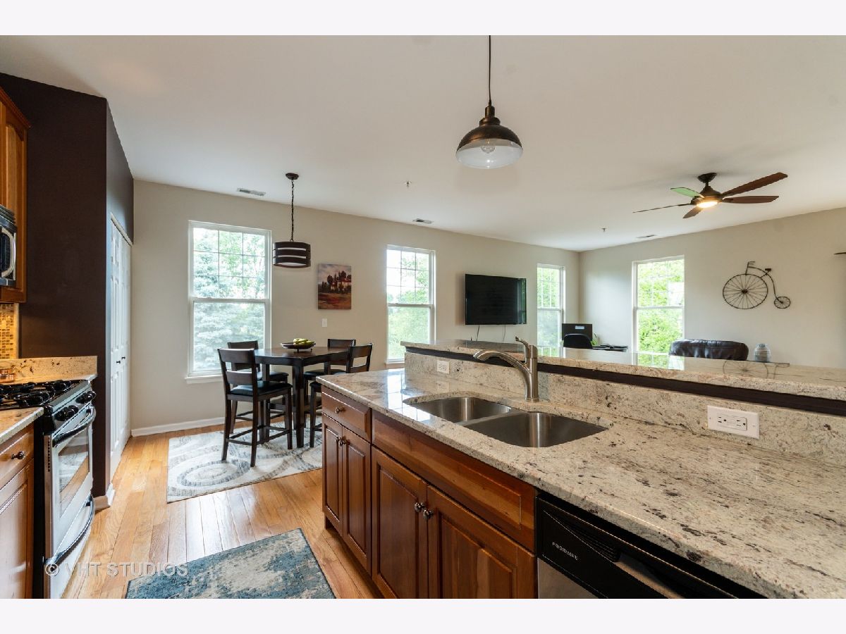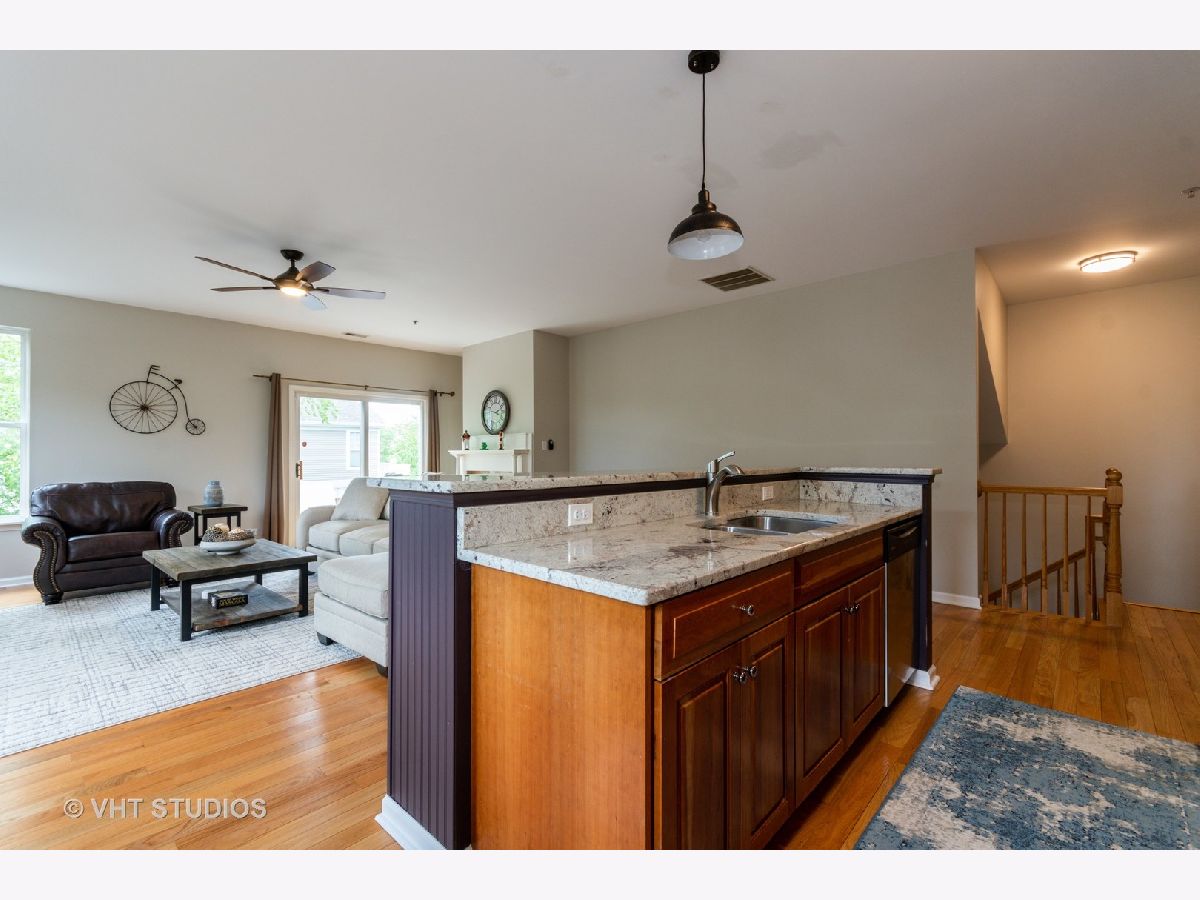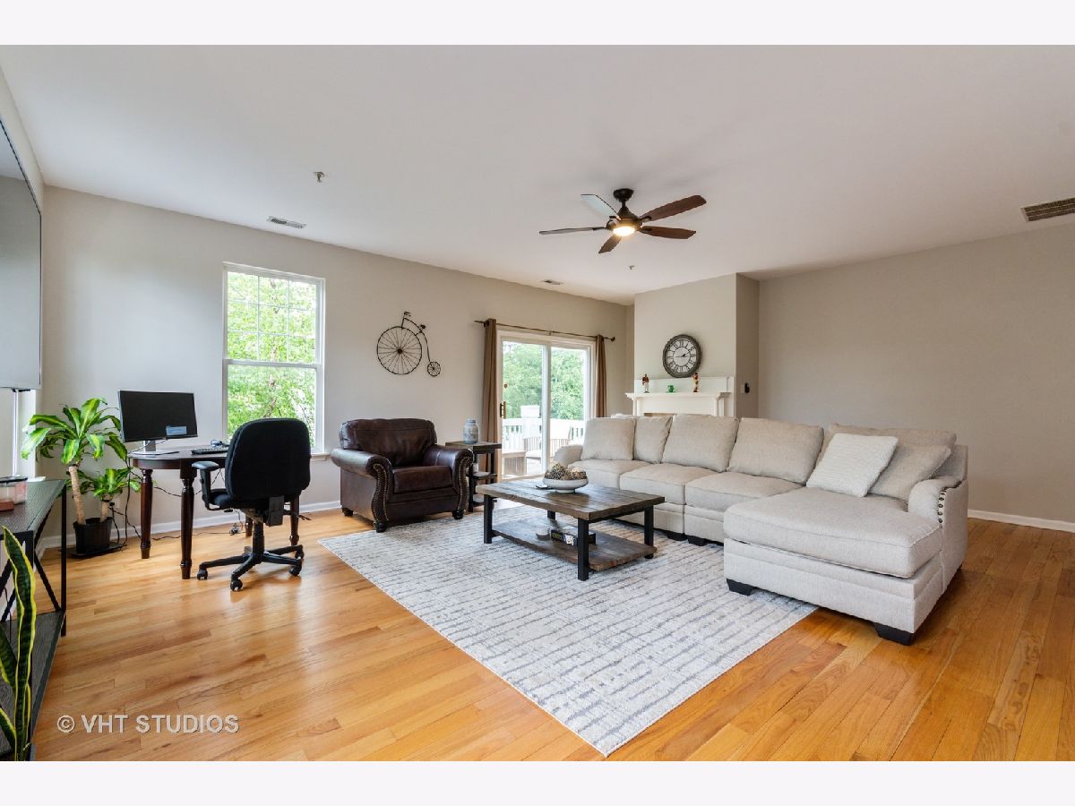 Fantastic location with a stunning view! End unit overlooking the nature preserve with contemporary & chic ranch model has a city loft feel! The beautiful, open floor plan is one of the most popular models in the subdivision. Crisp white molding & newly painted soft grey color scheme enhance this. The sizable living area includes a cozy fireplace, dining area, & versatile workspace. Kitchen boasts 42" cherry cabinetry with new granite tops, ss appliances, island with bar stool seating, & pantry closet. Hardwood floors & newer carpet! Master suite with private bath & walk-in closet. The laundry room includes a washer/dryer. Great deck to relax, plus a walking path just steps away. Two car garage and plenty of storage. Convenient to i88 expressway, outlet mall, and restaurants.