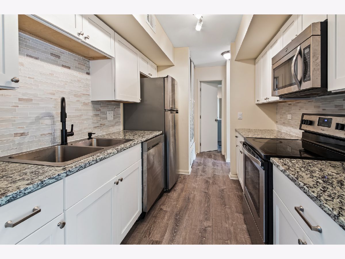 Lives like new in this updated main level 2 bedroom / 2 bath condo. New wood laminate flooring and fresh paint throughout. New patio sliding door. Updated Kitchen with granite countertops and new stainless appliances, newly tiled baths, new fixtures, new water heater and newer HVAC. The sun filled living room walks out to your patio to enjoy during the warmer months. Primary bedroom has a private bath. Convenient to Rt 14 and Hough Rd for shopping, dining, and more. 1 garage and 1 parking space included. Close to downtown Barrington, the Metra, schools, parks, and the library. Nothing to do but move-in!