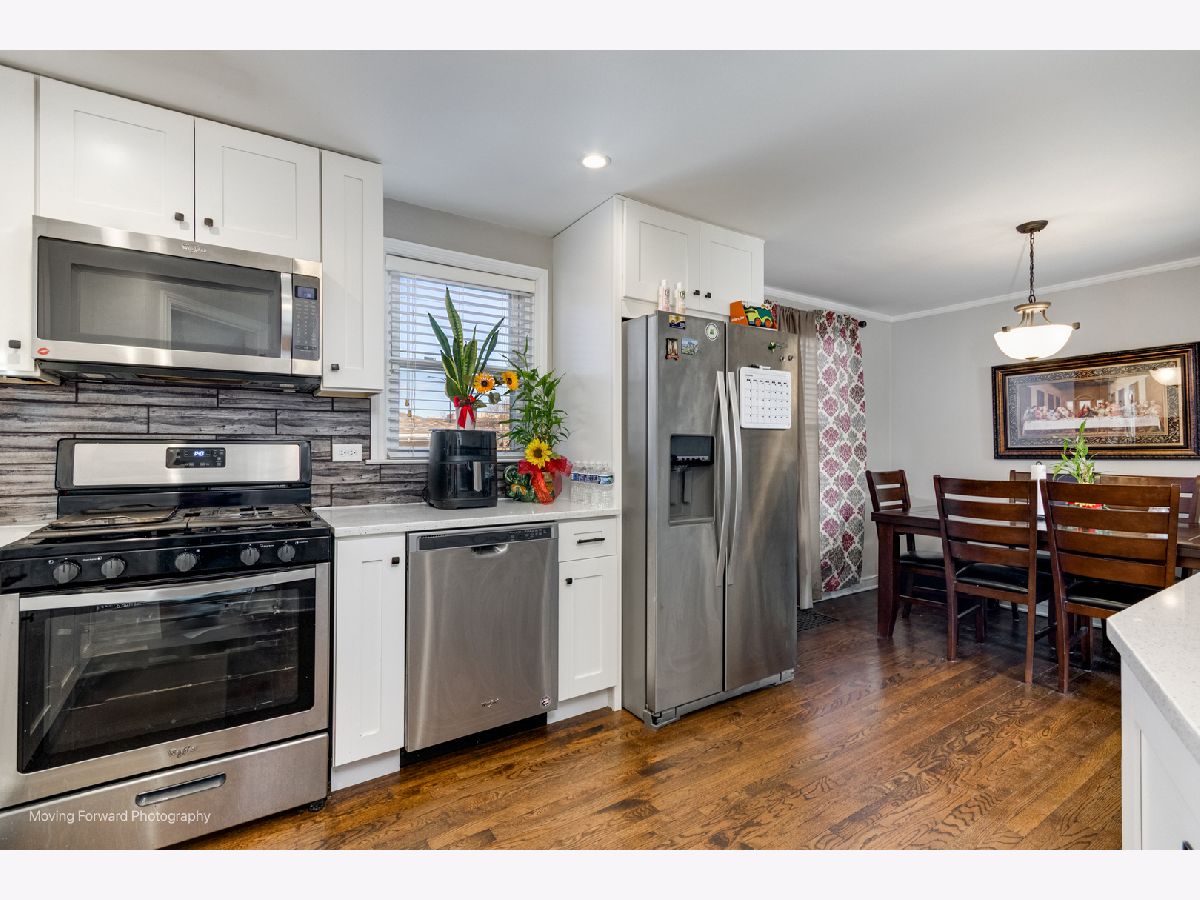 A MUST SEE, BRICK GEORGIAN! Great Cicero location Across from Morton Collage. 6 yrs. ago was fully remodeled with brand new full height white shaker custom cabinetry, quartz countertops with glass black splash, can lighting throughout. Large Master Bedroom. Custom lighting with dimmers and under cabinet lighting. Custom Blinds throughout that stay with the house! Redesigned wide open kitchen and dining room with hardwood floors throughout entire first floor and second floor. Stainless steel appliances in the kitchen will stay with the house. New Roof installed 2022 on House and Garage. Custom tile on bathroom. Vinyl Windows throughout home. Custombuilt Privacy Fence. Finished basement with additional living space. High efficiency furnace with Central Air. All Brick 2 1/2 car garage and a concrete side driveway.