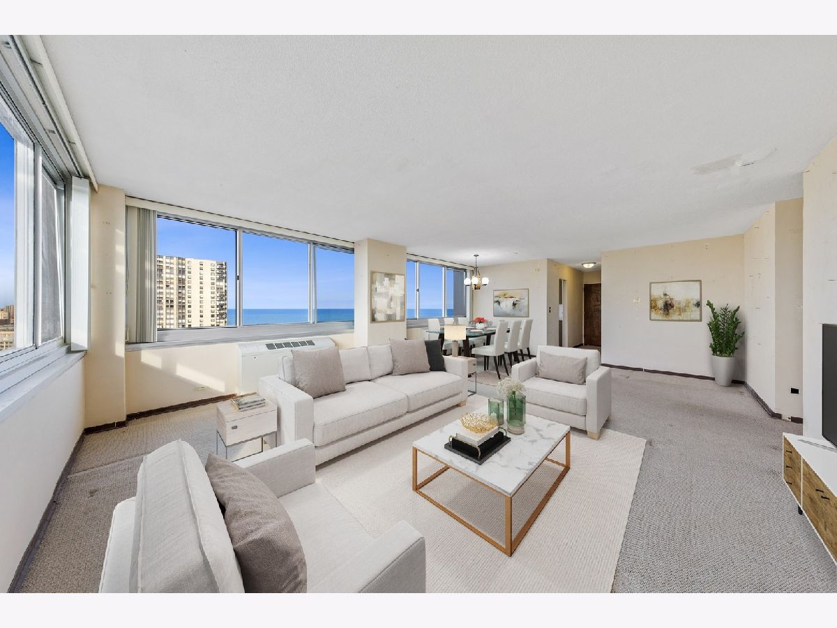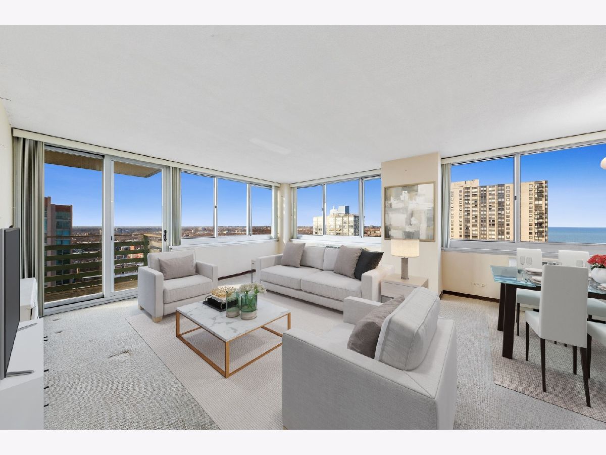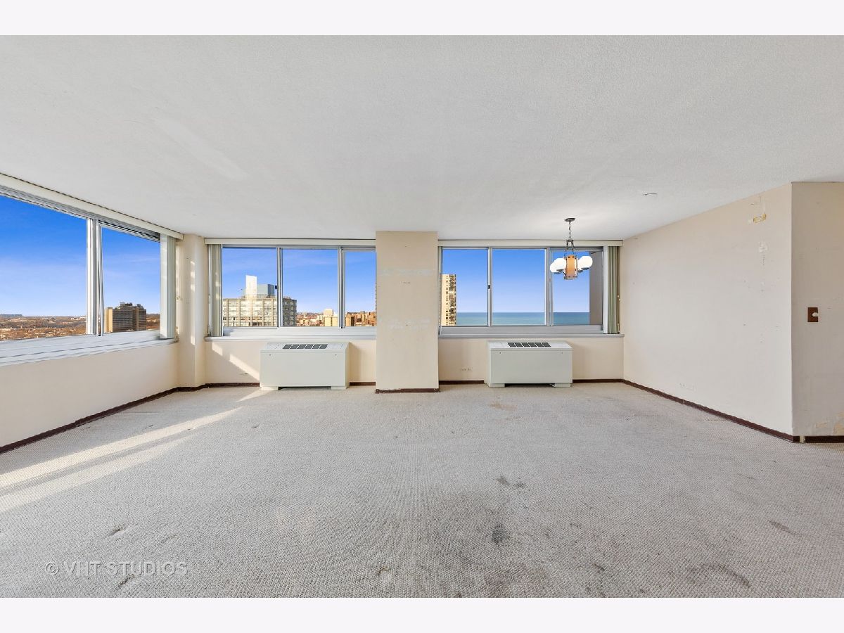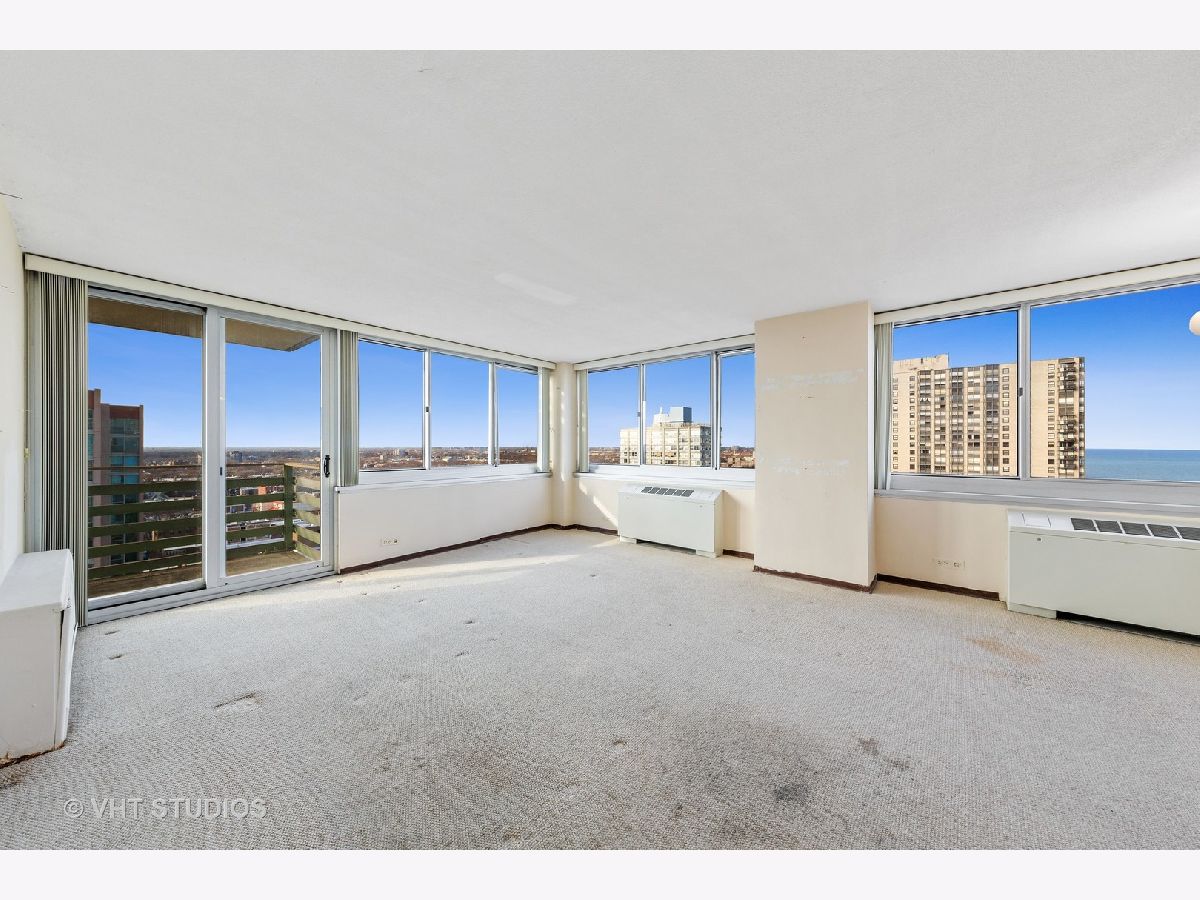 Contractor's special - the home needs cosmetic work! This is a great opportunity to buy a 1,200 sq. ft., corner 2 Bed/2 Bath home in a mid-century, modern high-rise and remodel to your taste. Filled with natural sunlight, you'll have views of the lake and city from every room. The previous owner has lived here for almost two decades, but didn't made any updates. The home has three exposures: east, north, and west. An extra-large 20 ft. balcony provides outdoor access and good place to grill. Contractor bids to renovate with Pergo floors, new kitchen, new baths, and painting. Live next to the lake and park with this corner unit in the Bryn Mawr historic district. Intimate pet friendly building with only 5 units per floor, on-site engineer, 24/7 surveillance cameras, and newly renovated sundeck + elevators. Just a short walk to the Red Line, 147/151 buses, Lake Michigan, Foster Beach, Margate Fieldhouse, Mariano's and Starbucks. Access all that Andersonville and Edgewater have to offer. Onsite parking is available for monthly lease ($145 outside/$165 garage) through the building.