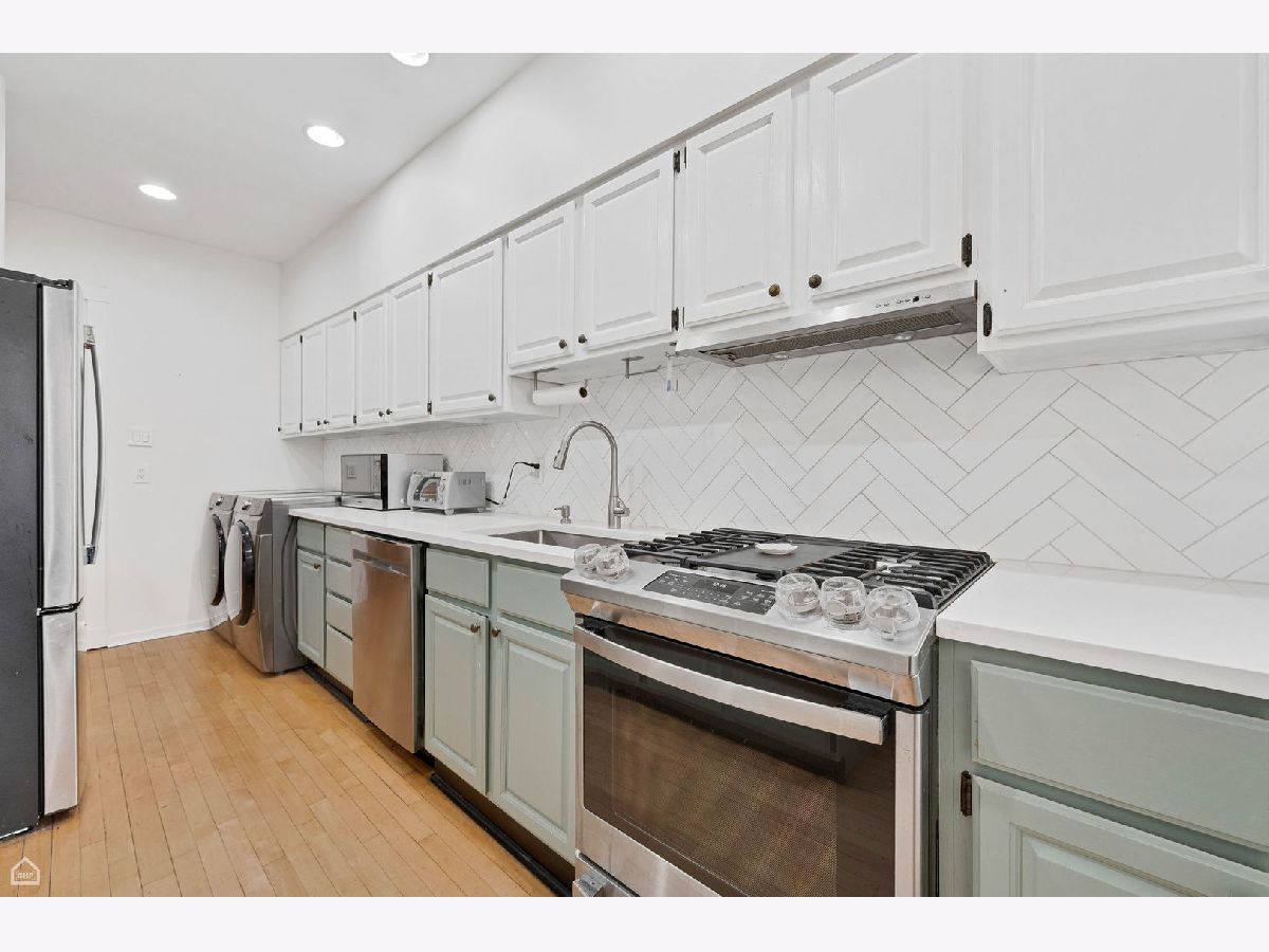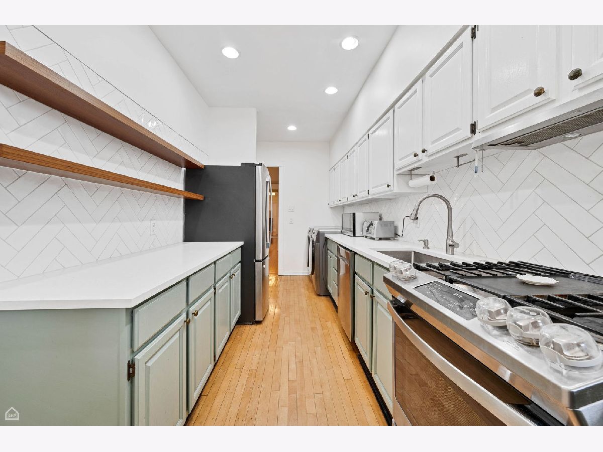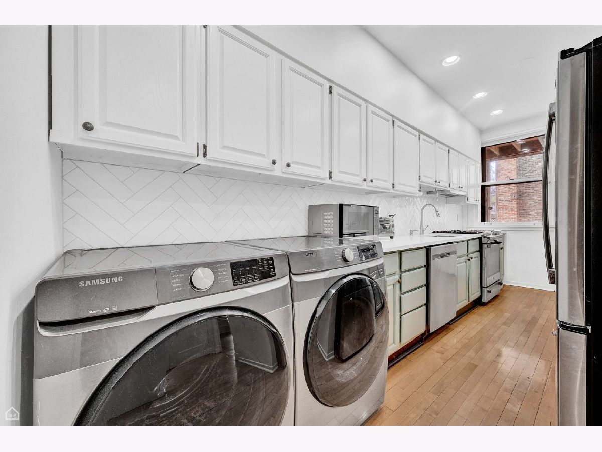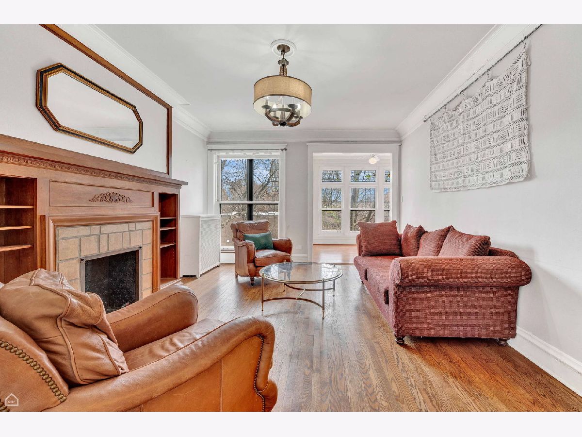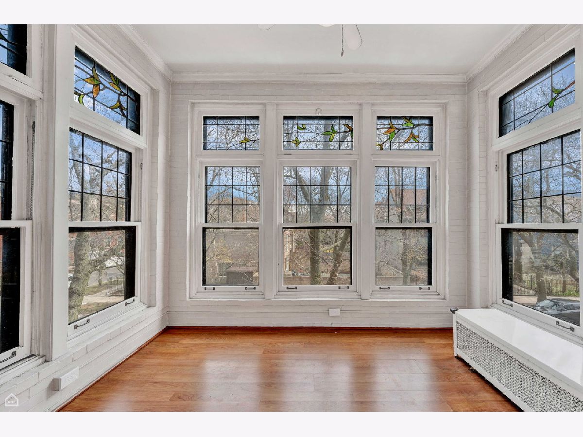 Walk into this beautiful home and you are greeted by sunlight pouring into the sunroom and living room. Beautiful oak wood floors, high ceilings, decorative fireplace, and unique stained glass windows. The kitchen has been recently updated with new appliances, including full size washer and dryer, corian counter tops and open shelving. Both baths have been updated. The 2nd one totally redone with all new piping. A walk in pantry is great for all that "Costco" shopping. Off of the kitchen is a shared porch and there is a common area for neighbors to sit and enjoy the yard. A driveway pulls into the back of the building for dropping off large items or groceries. Large windows are in every room letting in plenty of light. Many storm windows have been replaced. Located in one of the best places in Hyde Park, just steps to the University of Chicago schools and hospitals, shopping and restaurants, Easy access to public transportation and DuSable Lake Shore Drive.