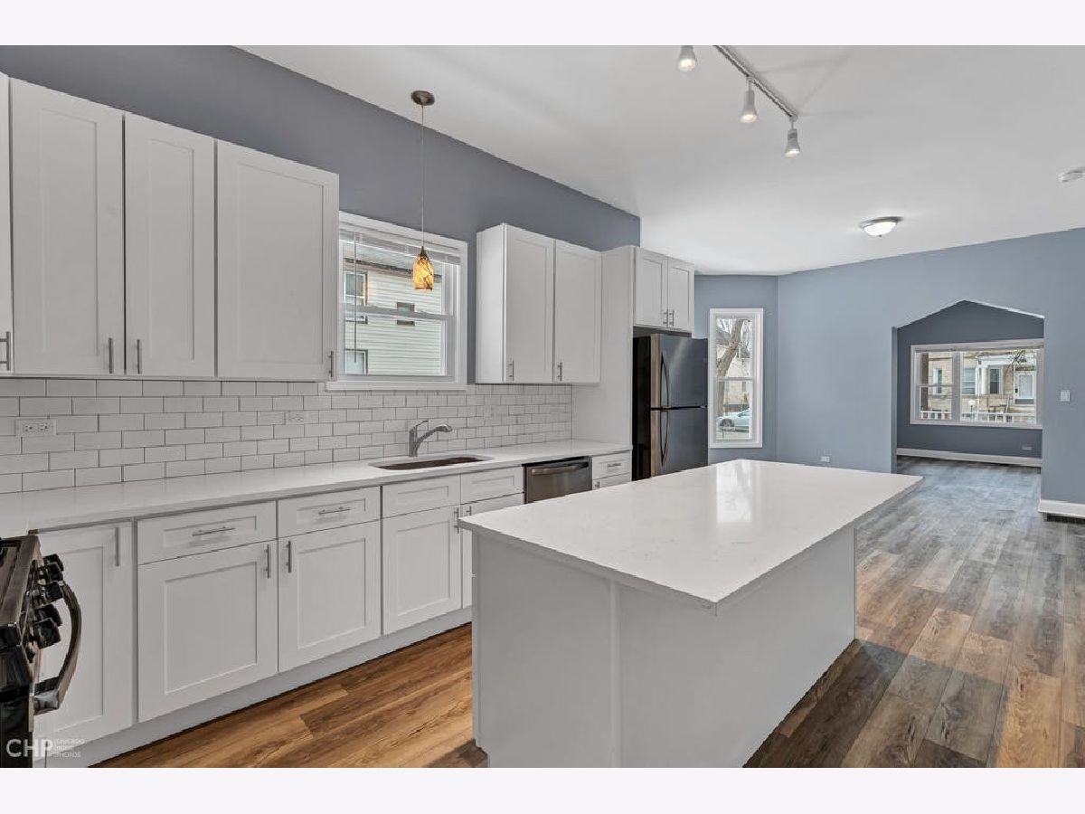 Beautifully Renovated Englewood Single Family Home on Double Lot! 5 Bedroom/2 Bath with great curb appeal, inviting front porch and fully gut renovated interior. New electrical, plumbing, floors, fixtures, mechanicals, cabinets and appliances. The house lives very big with formal living room, dining room with bay windows looking out on the southern side lot, open kitchen with quartz countertops, white shaker cabinets, oversized island, and stainless appliances. Large bedroom on main floor with large walk-in closet and full bathroom. Four sizable bedrooms upstairs with full bath, tons of windows and space to grow! Massive rear yard and full side yard with 2 car detached garage! Full unfinished basement with utility sink and hook ups for washer/dryer. Seller providing one year third party home warranty.