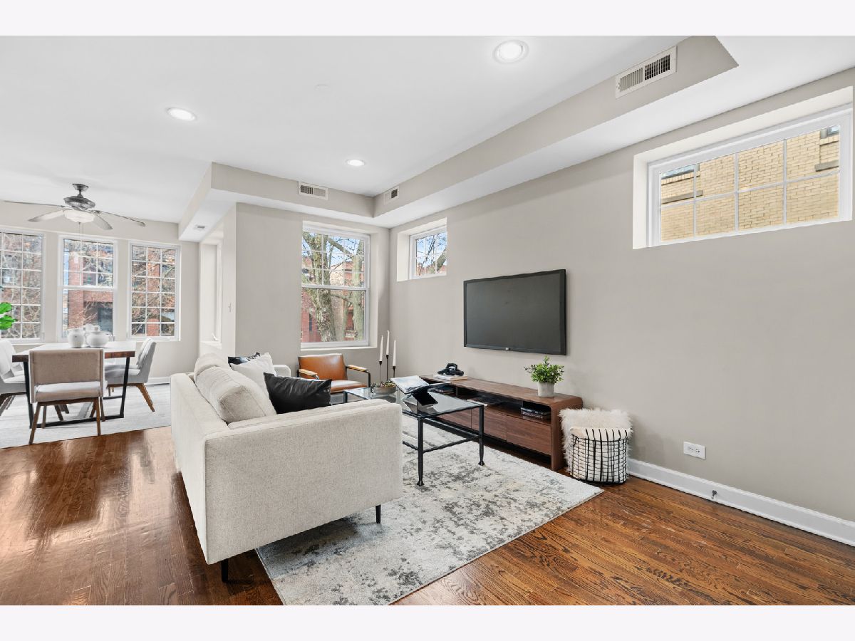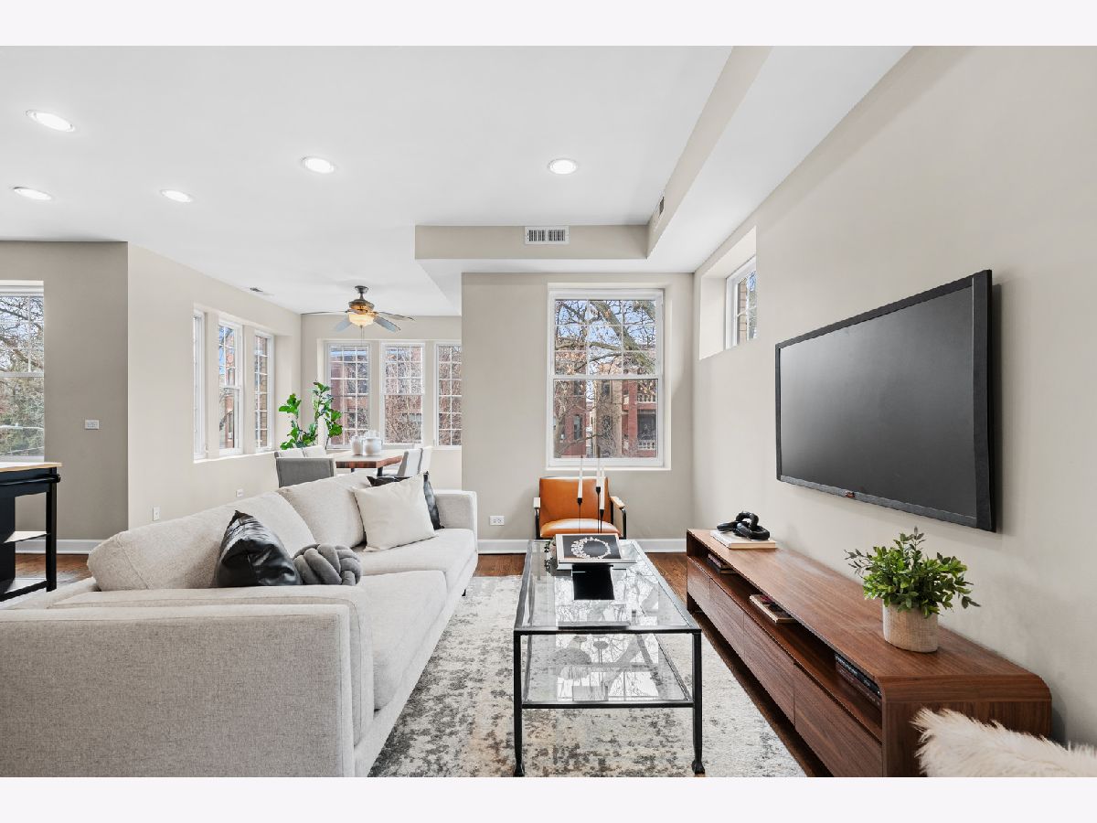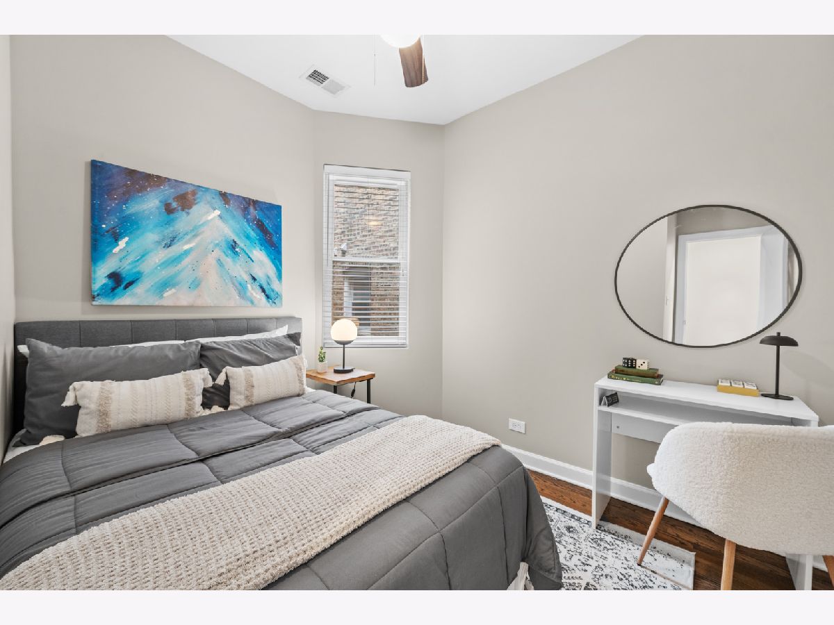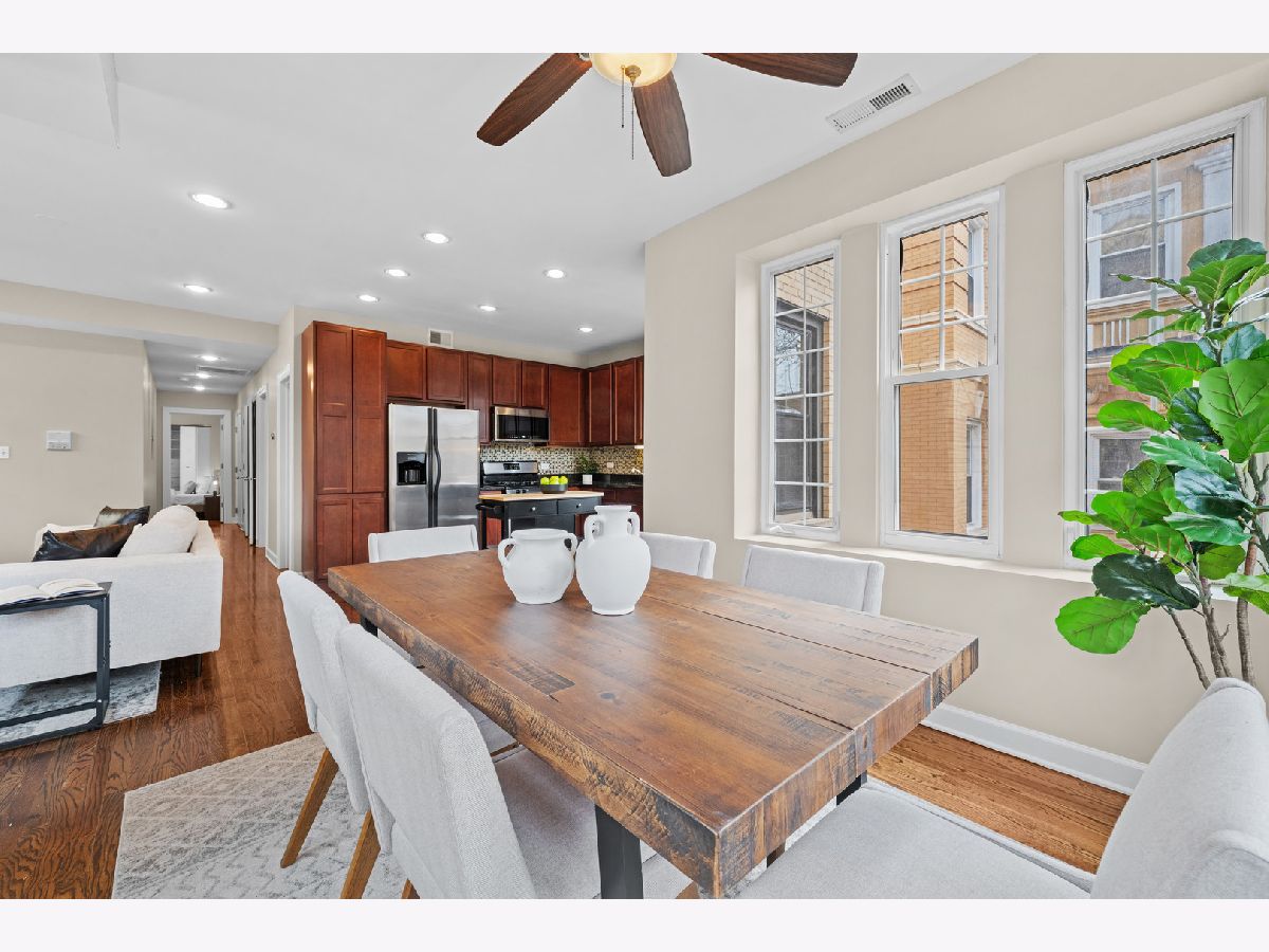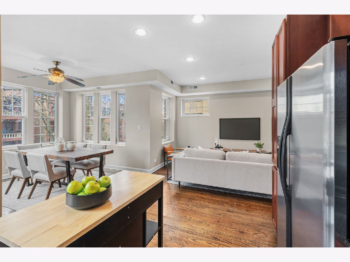 Filled with light and move-in ready, this high 2nd floor Andersonville 2 bedroom 2 bath is located on a quiet, one-way, tree-lined street - a short walk to the Bryn Mawr train or hot spots on Clark Street. Wrap around windows face the summer/fall lush green treetops in this front end-unit position in the beautiful vintage courtyard building. The spacious sunroom with windows on 3 sides is perfect as dining room or large home office and is open to the living room and kitchen. Stainless steel appliances, granite counters, shaker cabinets including a floor-to-ceiling pantry cabinet complete the chef's kitchen. The primary bedroom has two organized closets, hardwood floors, and attached marble bathroom with glass shower. The second bedroom also fits a full bed with space for desk to work from home. Outdoor space for a grill and bistro table & chairs. Walnut stained hardwood floors & brand new paint throughout (2026). Brand new furnace (2026), microwave (2024), central air (2012), in-unit W/D, extra storage and bike room in basement, common hot water heater (new 2024) and professionally managed. Desirable prime Andersonville location near many Clark Street charming local shops and restaurants, train and bus transit, the lakefront, Hollywood Beach, parks, Gethsemane, Andersonville Farmer's Market & street festivals, and historic Lakewood-Balmoral & Bryn Mawr Districts. Strong reserves, investor/renter friendly, and pet friendly.