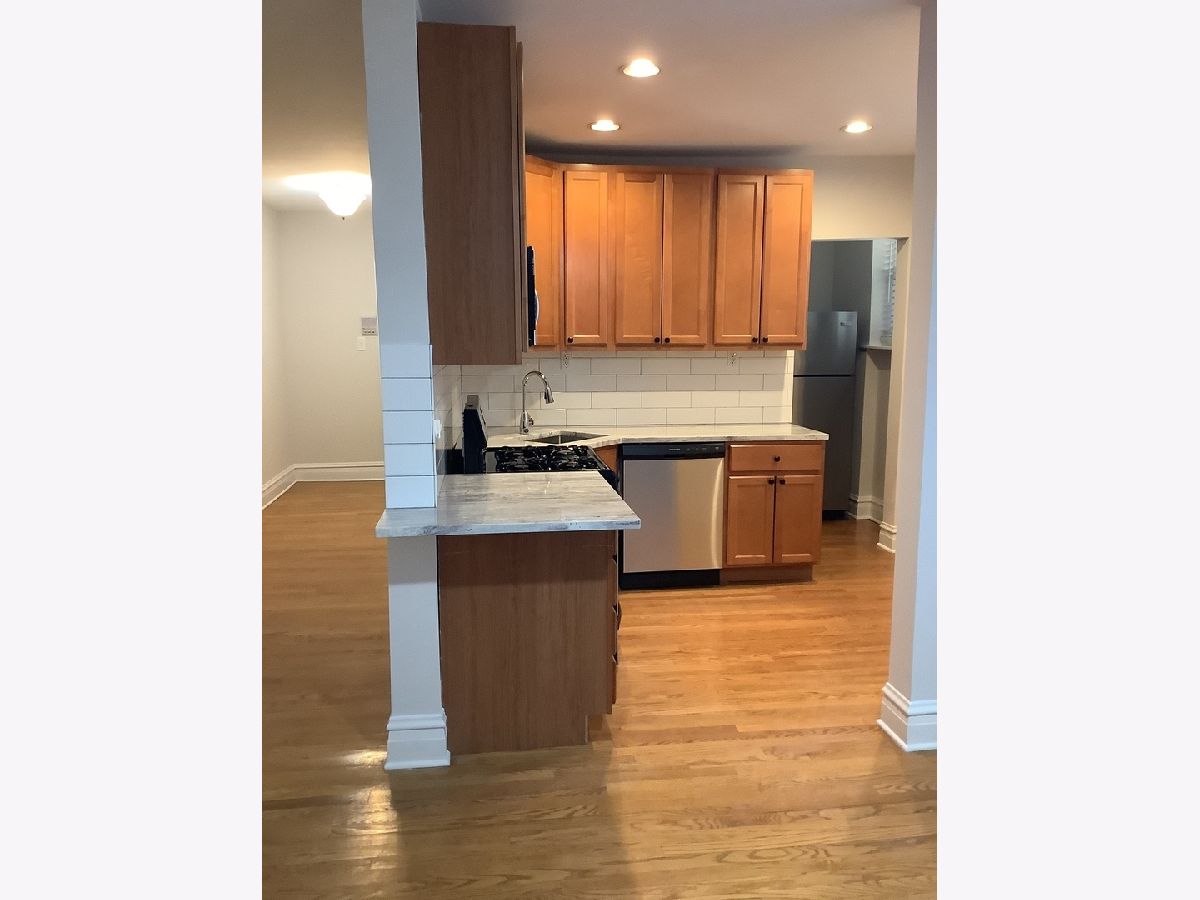 Charming Two-bedroom, 1 bathroom condo in Budlong Woods. Unit features hardwood flooring throughout. Kitchen with White River Granite Counters, Stainless kitchen appliances and 4x12 white Subway backsplash tile. Freshly Painted in neutral colors. Recent 2" White blinds. Both bedrooms are huge. Living room features a ceiling fan. Lighting has been updated. Updated bath has an attractive tub surround and large Linen closet. Storage and laundry room in basement. Agent Owned and Professionally Managed. Seller has paid balance of small special Assessment. Rentals allowed. vacant and easy to show.