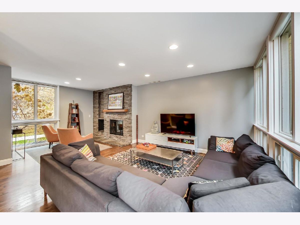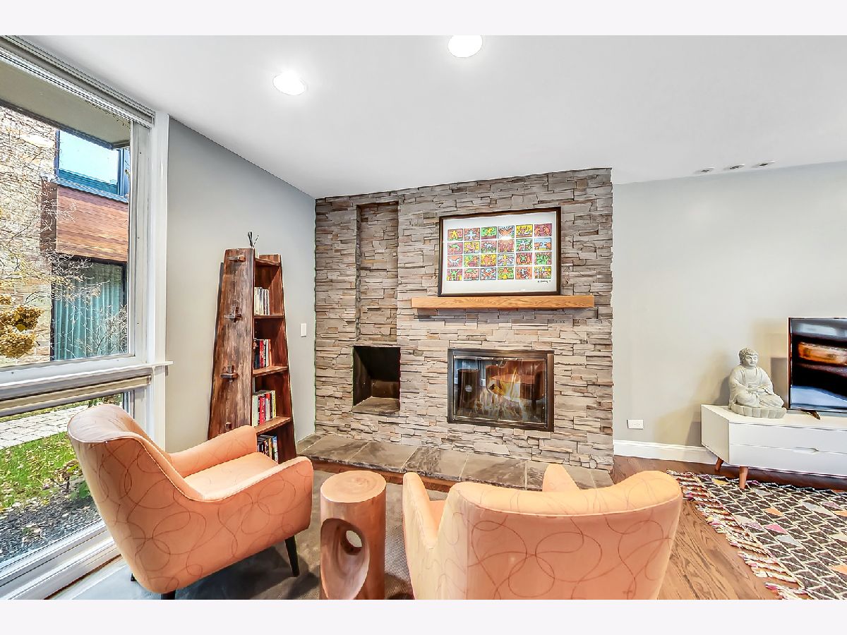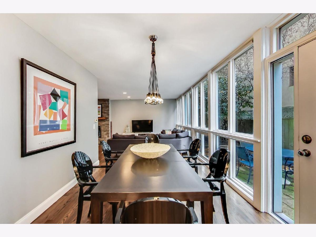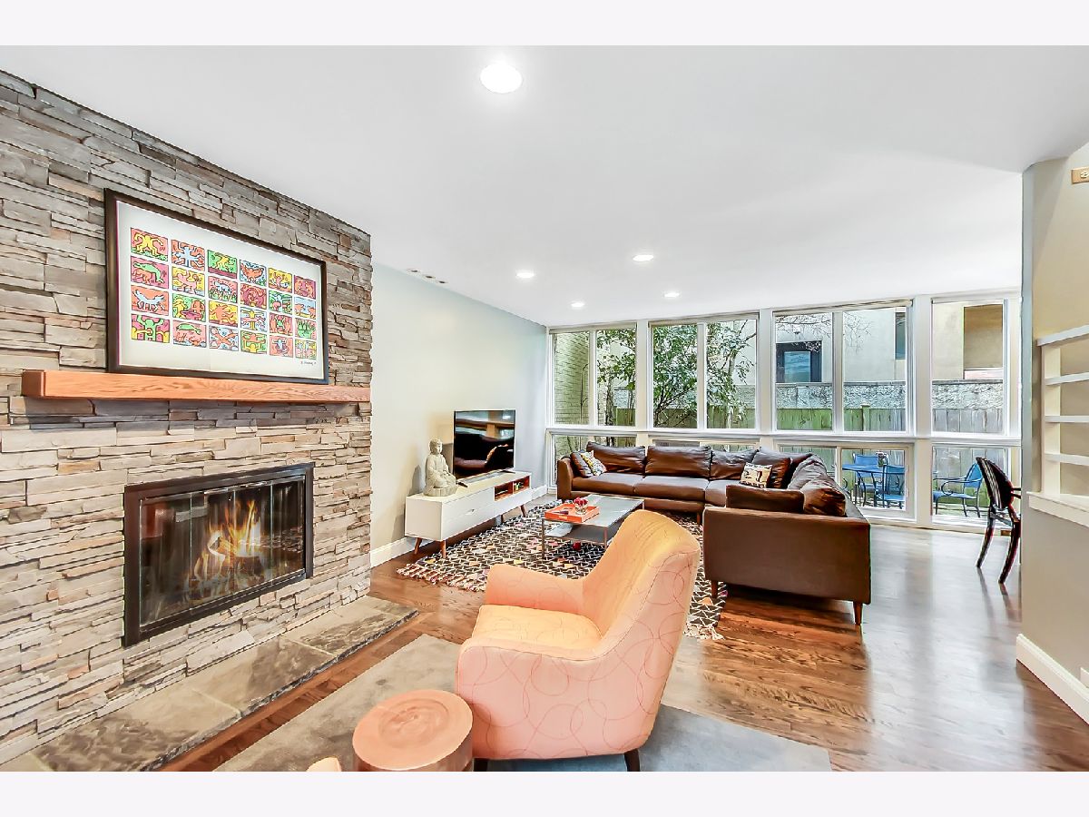 A contemporary and timeless 4 bed / 2.1 bath townhome nestled in a private courtyard in idyllic East Lake View. All four beds on one level are complemented by a finished basement that easily converts to a 5th bed or existing recreation room with large storage area and separate laundry room. Location. Location. Location in Nettelhorst Elementary School district, one block to the lakefront trail, and everything nightlife and shopping one block in the other direction to Roscoe/Broadway/Halsted. This warm and inviting home lives like a single family with generous and wide room sizes totaling 2,628 SF, abundant light with floor-to-ceiling windows on the main and upstairs levels, as well as a private rear courtyard patio. The first floor welcomes you with beautiful oak hardwood floors in a classic stain and finish, a beautiful Frank Lloyd Wright'esque brick built-in wood-burning fireplace and sitting area, combined with a cozy and spacious living room that wraps around to a spacious dining room off the rear patio. The main level is rounded off with a private breakfast room and 1/2 bath off the completely updated kitchen with ample and modern cabinetry, quartz countertops, designer fixtures, custom backsplash, and high-end stainless appliances with double convection oven. The second floor features plush designer carpeting, a large primary en-suite with walk-in closet and designer bath, three more beds and one more full bath. The fully-finished lower level currently serves as an additional living room and large playroom with additional fireplace, separate laundry room with ample storage and work area. This home also features the added benefits of efficient SpacePak central air conditioning with the serenity and efficiency of radiant heat that runs underneath the floors as an added touch and no visible space-robbing radiators. Street parking and rental parking options in the area. Sellers currently rent directly across the street for $180/month. Low assessments, low maintenance, low operating costs, reasonable taxes, and a well-ran HOA. A completely updated, smart single family alternative at a fraction of the price in a highly-desirable area.