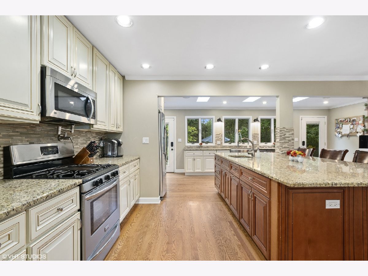 Over half an acre of property! Large circular driveway and private backyard. The open kitchen is the heart of this home with plenty of space and beautiful views of the yard. You'll find 3 bedrooms on the second floor along with a full bath with double sink. The 4th bedroom suite is in the lower level, with it's own attached bath and walk-in closet. This is a large versatile space, it could be used for as the master bedroom, or for guests, related living or nanny suite, gym, playroom, home office or home school! The living room boasts beautiful hardwood floors and a cozy fireplace. The family room has plenty of hangout space with the perfect spot for a large tv on the wall surrounded by bulit-ins, this level also has the 3rd bath and the laundry room. If you're entertaining outside, the kitchen and family room both lead out to the back. The yard has a large patio with built-in grill plus tons of green space and is fully fenced. 3-car, tandem garage and storage shed have plenty of space for all your toys. Updates in the home since 2016 include, new HVAC, 6ft fence, interior and exterior painting, new shutters, alarm system, sump pumps with back-up and a new washer & dryer. Location is everything and this address is convenient for commuting with quick highway access, as well as only 1.3 miles to the Metra station for trains to downtown Chicago. Walk-able to excellent schools and the gorgeous grounds of Katherine Legge Memorial Park. Don't miss this one of a kind property.