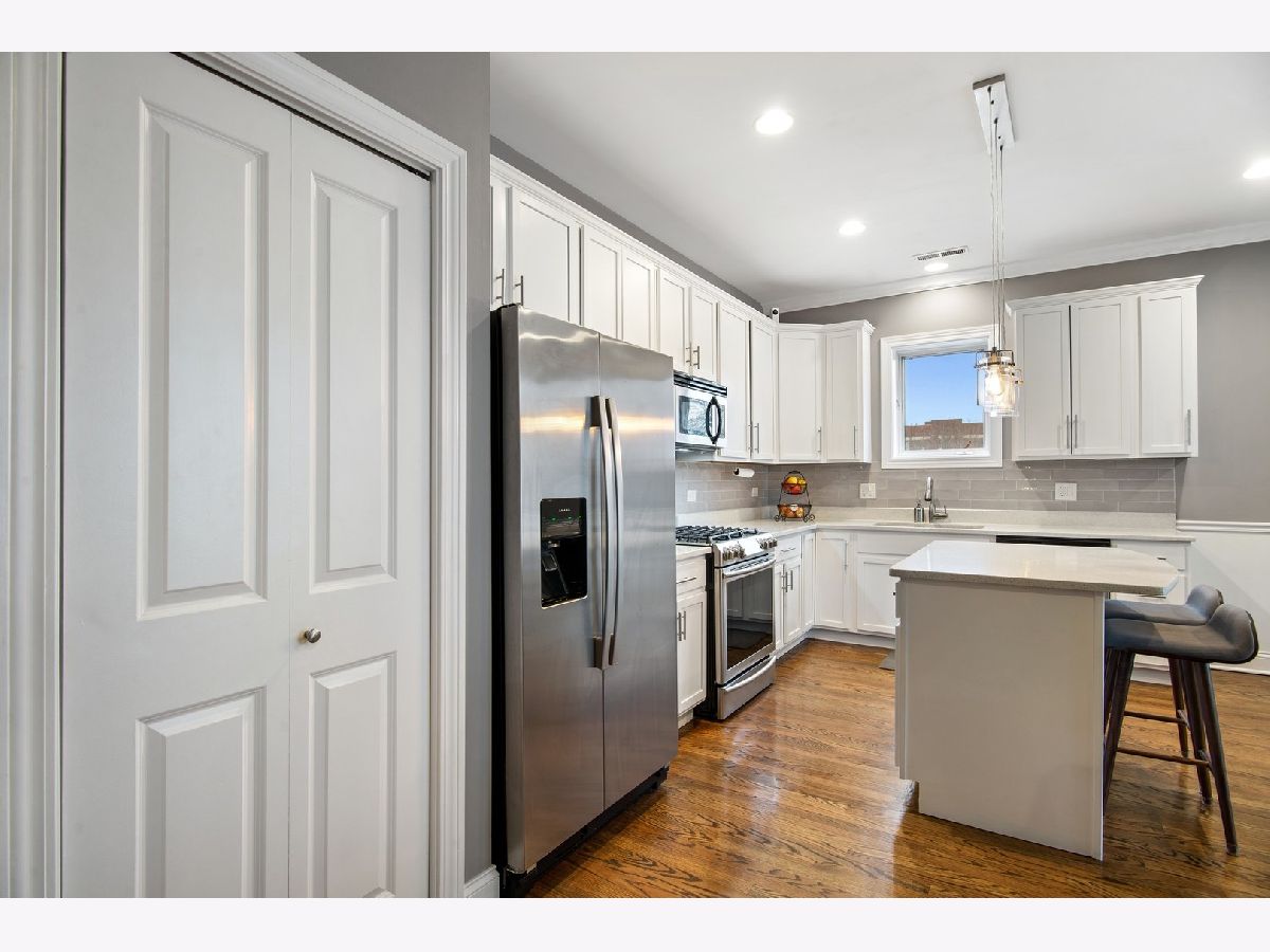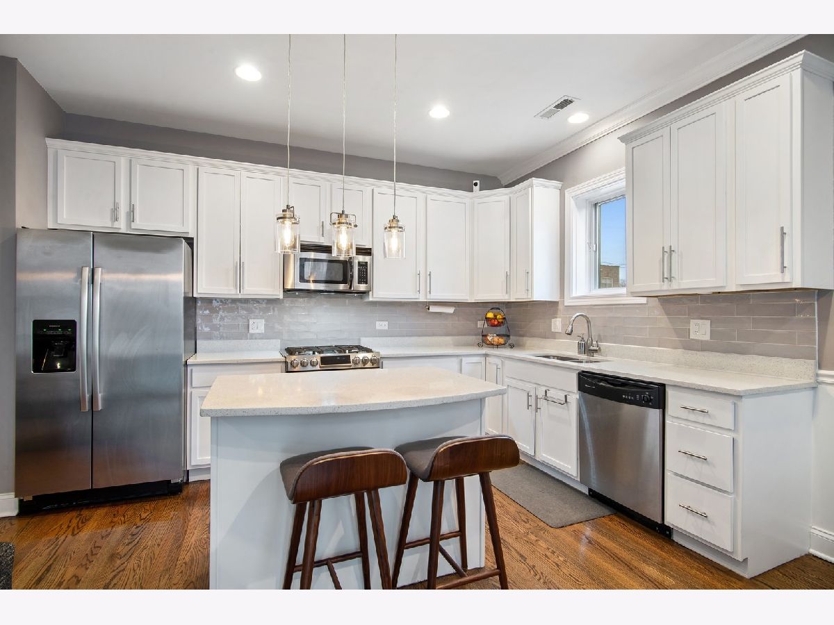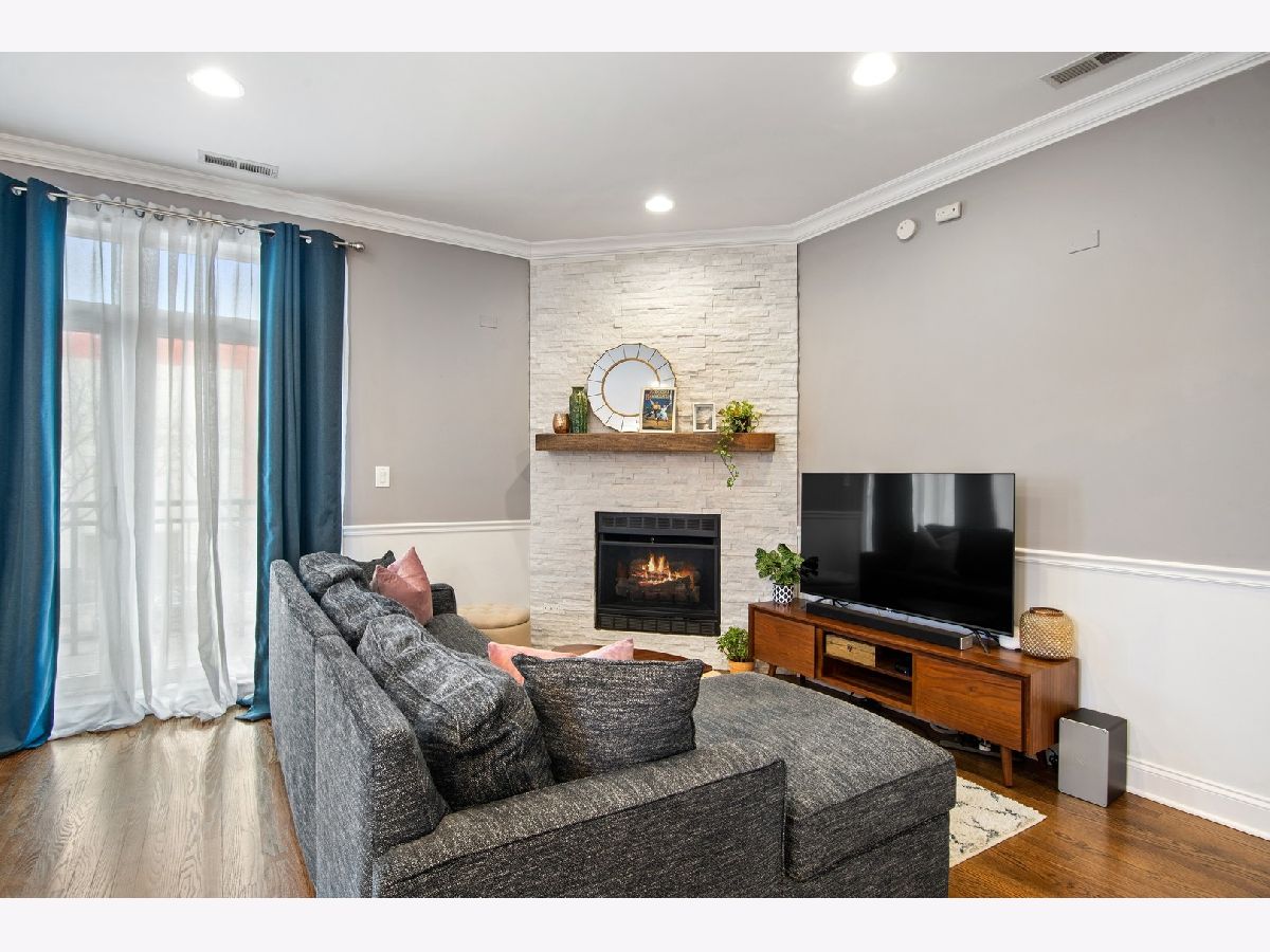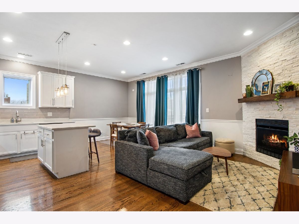 Beautifully appointed two bed, two bath East Edgewater condo. The open layout includes living room with crown molding, gas fireplace, dining room and upgraded kitchen with stainless steel appliances, white quartz counters, island & 42" white cabinets. Sliding doors leads to a private balcony facing east. In-unit laundry, central air conditioning and a large primary bedroom with en suite bath. Parking included. Steps to grocery stores, new Bryn Mawr red line el stop, the heart of Andersonville, the lake and everything else Edgewater/Andersonville has to offer.