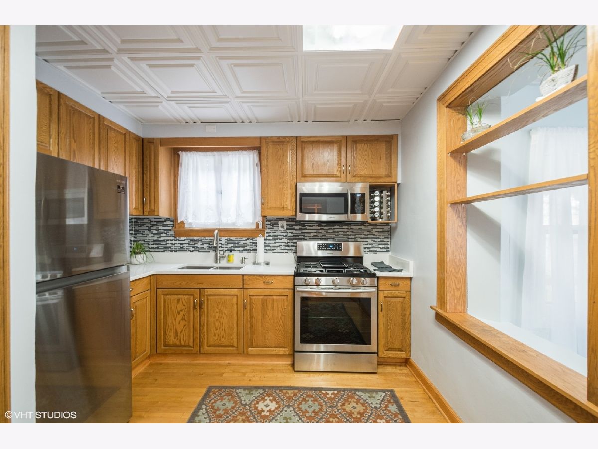 Classic Chicago Bungalow with refinished oak hardwood floors throughout. 1st floor has large formal living and dining rooms, full bathroom, 2 bedrooms, kitchen with huge pantry off enclosed porch. 2nd floor has full bathroom, 2 bedrooms including a Master Bedroom with 2 attached tandem rooms, one could be nursery or study and other would be perfect walk-in closet to go with 2 sets of sliding door closets. Basement has large recreation room, bar room, powder room and laundry room. Roof 2012. Great closet space in bedrooms and ample storage throughout. newer water heater, furnace, a/c, pipes, electric, kitchen samsung appliances, kitchen quartz counter top, back splash, freshly painted,
