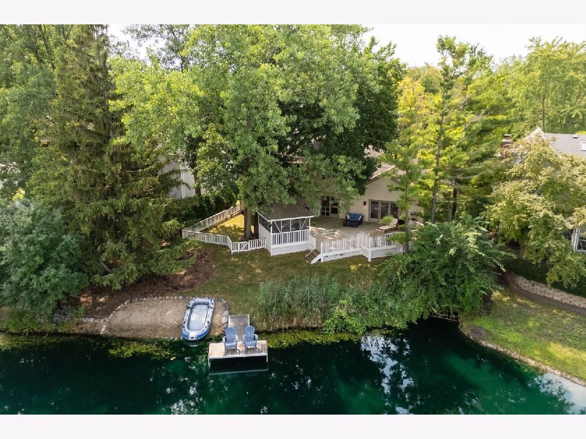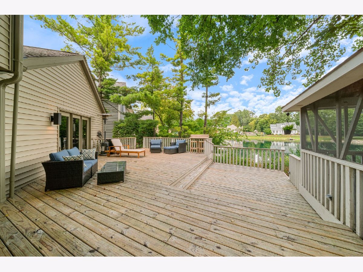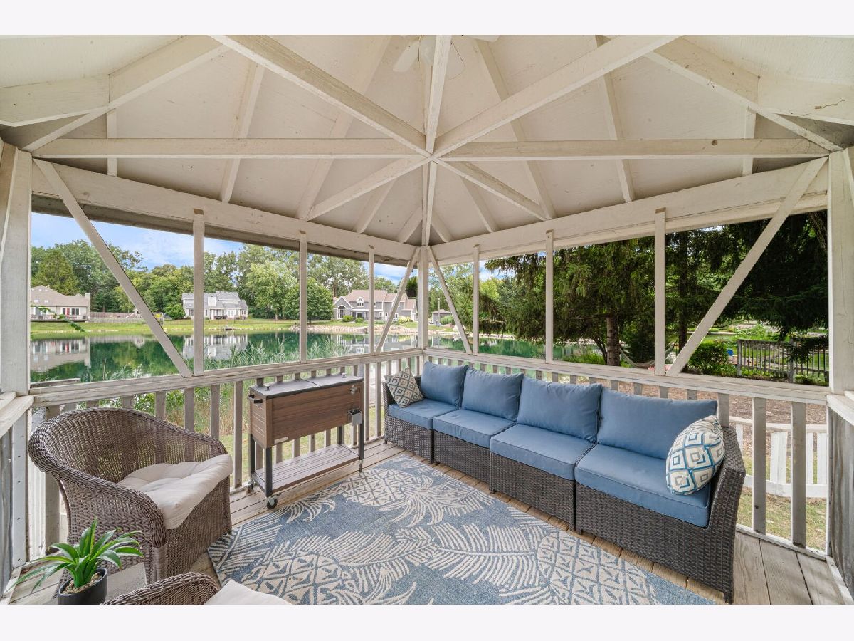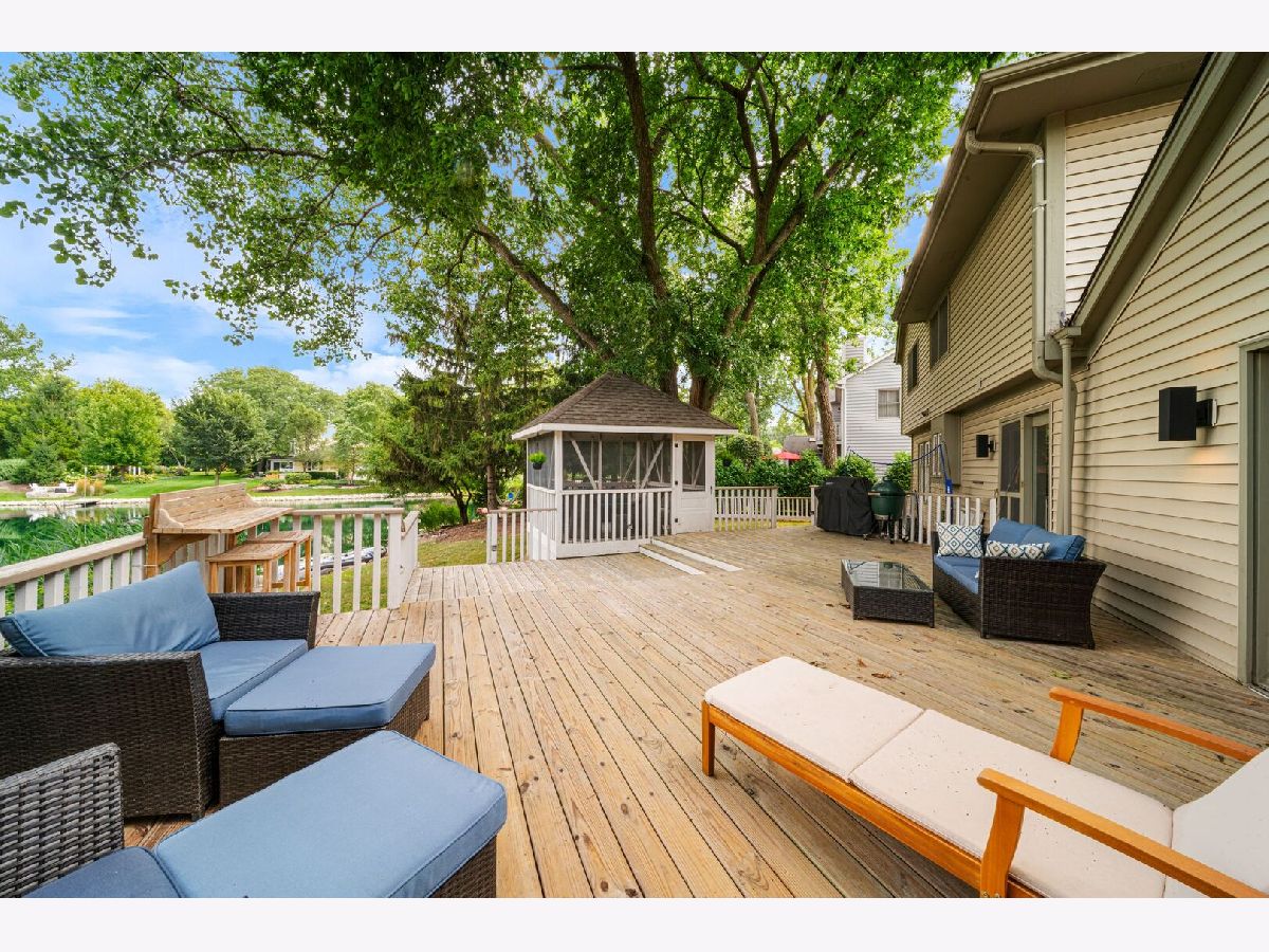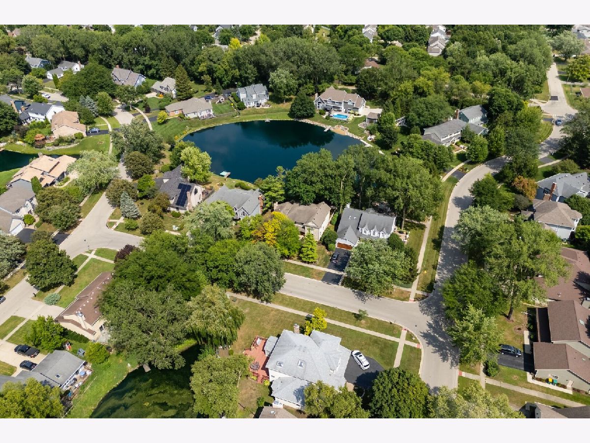 This one-of-a-kind waterfront custom home has stunning views, a new pier-offering, private sand beach, and over 4,000 square feet across three beautilfully finished levels. Set in the heart of desirable West Trail, this home blends timeless character with thoughtful updates. Step inside to a grand two-story foyer with an open staircase and hardwood flooring throughout most of the main level. The newly remodeled kitchen is the heart of the home, featuring sleek cabinetry, new quartz counters, new Viking stainless steel appliances, new custom island, and two closet pantries. Enjoy your morning coffee from the new coffee bar station with beverage and wine cooler. The sunlit breakfast area opens to a spacious deck-perfect for entertaining or quiet mornings with a view. The floorplan flows beautifully: a generous living room, an oversized formal dining room for gatherings, and a private home office with built-in bookshelves. The family room is a showstopper with beamed ceilings, a brick fireplace, and serene pond views through custom triple doors. Upstairs, a new hardwood hallway leads to four bedrooms, including a luxe primary suite with dual walk-in closets and a spa-inspired remodelled bath, complete with a freestanding soaking tub, double vanities, and a custom tiled shower. The finished basement offers space for everyone: a large rec area, home theater nook, full bath, extra storage, and workshop. Fresh landscaping in front and back enhances the curb appeal with a custom gazebo overlooking the water for the ultimate backyard retreat. Close to downtown, the Metra, parks, and award-winning schools, this gorgeous home is a rare blend of location, space, and style. NEW Since 2021: Hardwood Floors Second Floor Hall, Kitchen, Family, Laundry Rooms; Refinished all Hardwood Floors. Renovated Kitchen- Professionally Refurbished Kitchen Cabinets; Quartz Counters; Custom Island with Storage, Coffee/Beverage Station; Viking Stainless Steel Appliances; Sink/Disposal; Backsplash; Recessed Lighting; Outlets/Light Switches. New LG Washer/Dryer and Quartz Counter. Updated Half Bath; Full Bath; Refreshed Master Bath. Interior Painted; New Lighting Throughout; New Ceiling Fans Throughout; New Garage Door Opener; Outdoor Lighting; New down to the Mailbox! Sellers offering credit for replacement of basement carpet.