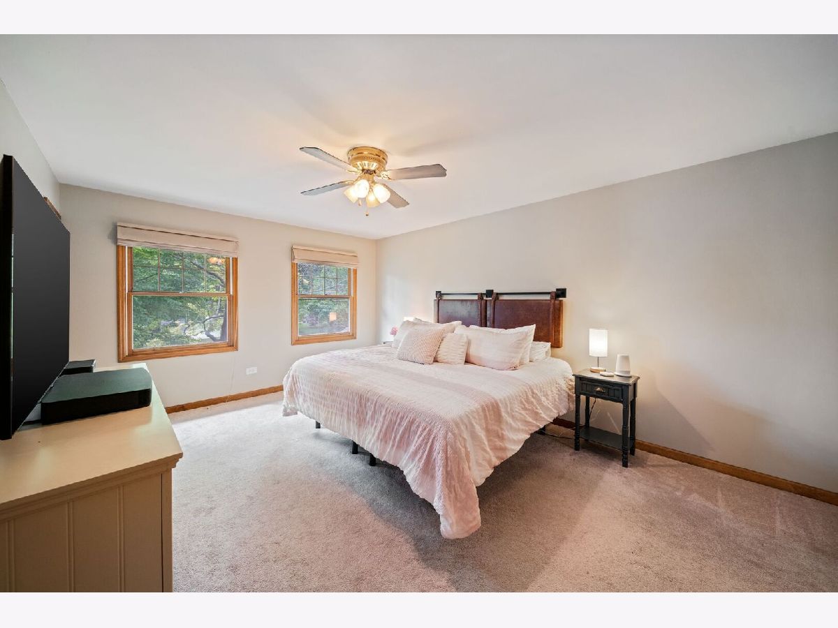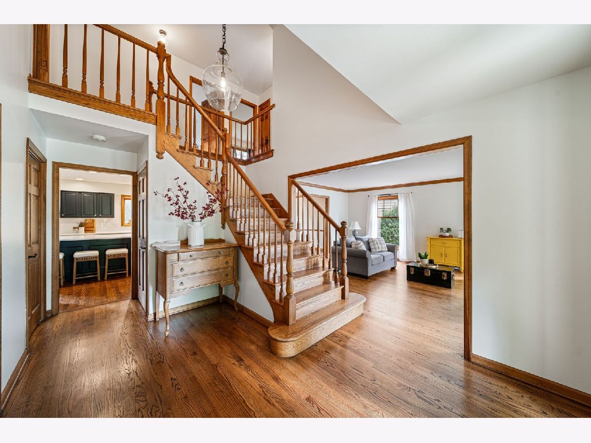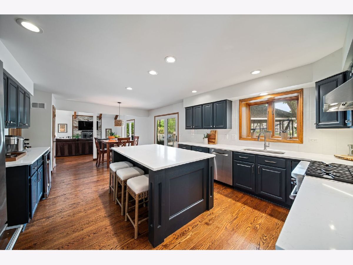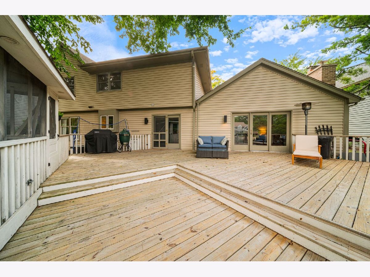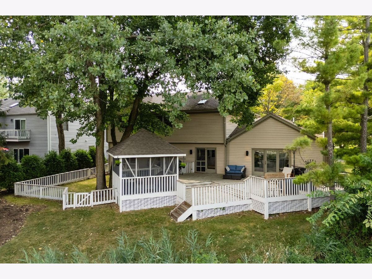 This one-of-a-kind waterfront custom home has stunning views, a new pier-offering, private sand beach, and over 4,000 square feet across three beautilfully finished levels. Set in the heart of desirable West Trail, this home blends timeless character with thoughtful updates. Step inside to a grand two-story foyer with an open staircase and hardwood flooring throughout most of the main level. The newly remodeled kitchen is the heart of the home, featuring sleek cabinetry, new quartz counters, new Viking stainless steel appliances, new custom island, and two closet pantries. Enjoy your morning coffee from the new coffee bar station with beverage and wine cooler. The sunlit breakfast area opens to a spacious deck-perfect for entertaining or quiet mornings with a view. The floorplan flows beautifully: a generous living room, an oversized formal dining room for gatherings, and a private home office with built-in bookshelves. The family room is a showstopper with beamed ceilings, a brick fireplace, and serene pond views through custom triple doors. Upstairs, a new hardwood hallway leads to four bedrooms, including a luxe primary suite with dual walk-in closets and a spa-inspired remodelled bath, complete with a freestanding soaking tub, double vanities, and a custom tiled shower. The finished basement offers space for everyone: a large rec area, home theater nook, full bath, extra storage, and workshop. Fresh landscaping in front and back enhances the curb appeal with a custom gazebo overlooking the water for the ultimate backyard retreat. Close to downtown, the Metra, parks, and award-winning schools, this gorgeous home is a rare blend of location, space, and style. NEW Since 2021: Hardwood Floors Second Floor Hall, Kitchen, Family, Laundry Rooms; Refinished all Hardwood Floors. Renovated Kitchen- Professionally Refurbished Kitchen Cabinets; Quartz Counters; Custom Island with Storage, Coffee/Beverage Station; Viking Stainless Steel Appliances; Sink/Disposal; Backsplash; Recessed Lighting; Outlets/Light Switches. New LG Washer/Dryer and Quartz Counter. Updated Half Bath; Full Bath; Refreshed Master Bath. Interior Painted; New Lighting Throughout; New Ceiling Fans Throughout; New Garage Door Opener; Outdoor Lighting; New down to the Mailbox! Sellers offering credit for replacement of basement carpet.