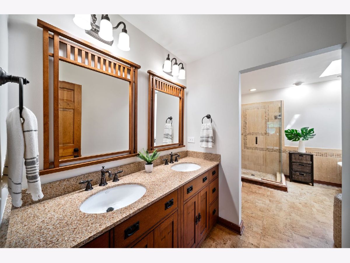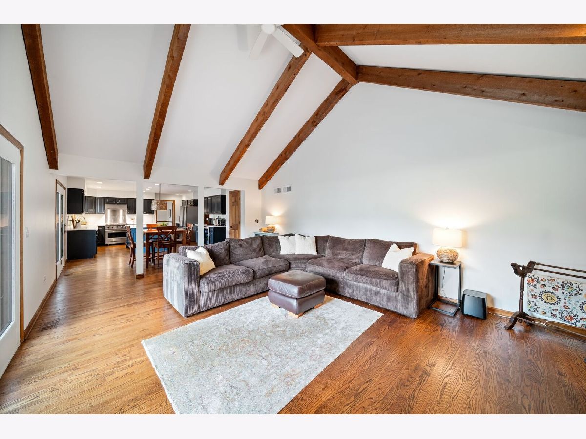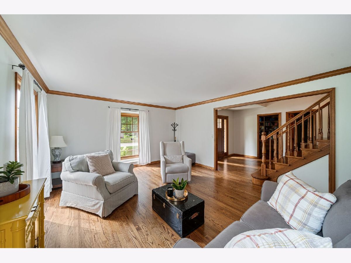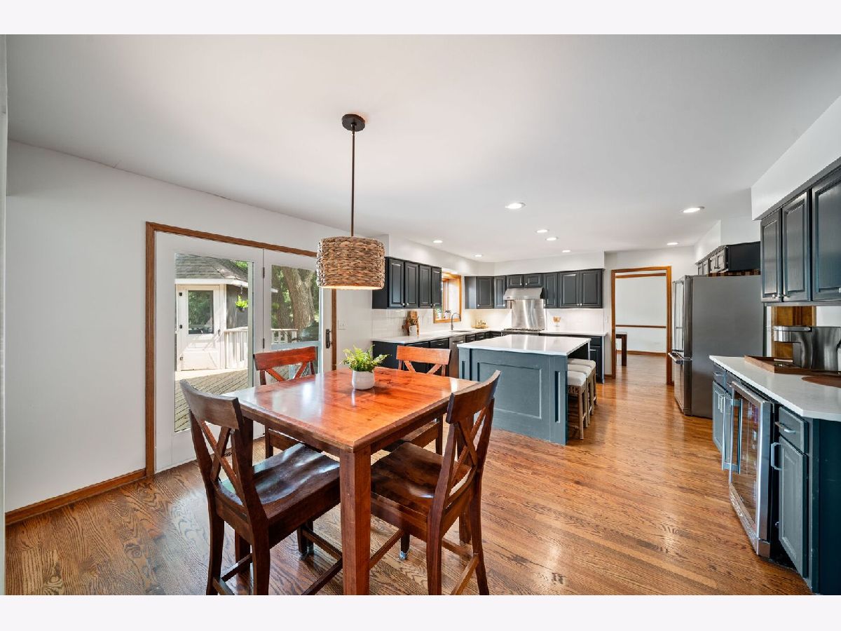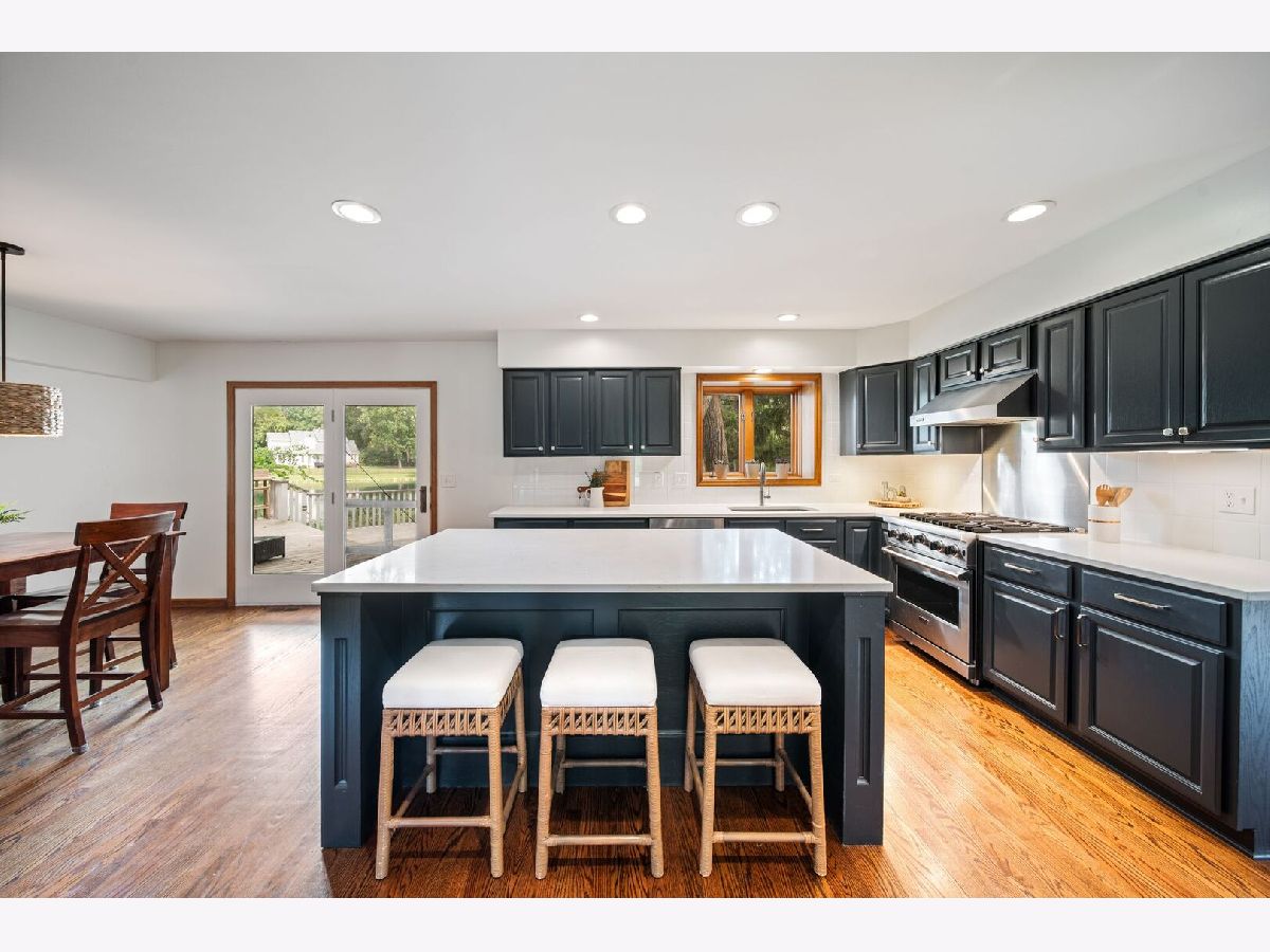 This one-of-a-kind waterfront custom home has stunning views, a new pier-offering, private sand beach, and over 4,000 square feet across three beautilfully finished levels. Set in the heart of desirable West Trail, this home blends timeless character with thoughtful updates. Step inside to a grand two-story foyer with an open staircase and hardwood flooring throughout most of the main level. The newly remodeled kitchen is the heart of the home, featuring sleek cabinetry, new quartz counters, new Viking stainless steel appliances, new custom island, and two closet pantries. Enjoy your morning coffee from the new coffee bar station with beverage and wine cooler. The sunlit breakfast area opens to a spacious deck-perfect for entertaining or quiet mornings with a view. The floorplan flows beautifully: a generous living room, an oversized formal dining room for gatherings, and a private home office with built-in bookshelves. The family room is a showstopper with beamed ceilings, a brick fireplace, and serene pond views through custom triple doors. Upstairs, a new hardwood hallway leads to four bedrooms, including a luxe primary suite with dual walk-in closets and a spa-inspired remodelled bath, complete with a freestanding soaking tub, double vanities, and a custom tiled shower. The finished basement offers space for everyone: a large rec area, home theater nook, full bath, extra storage, and workshop. Fresh landscaping in front and back enhances the curb appeal with a custom gazebo overlooking the water for the ultimate backyard retreat. Close to downtown, the Metra, parks, and award-winning schools, this gorgeous home is a rare blend of location, space, and style. NEW Since 2021: Hardwood Floors Second Floor Hall, Kitchen, Family, Laundry Rooms; Refinished all Hardwood Floors. Renovated Kitchen- Professionally Refurbished Kitchen Cabinets; Quartz Counters; Custom Island with Storage, Coffee/Beverage Station; Viking Stainless Steel Appliances; Sink/Disposal; Backsplash; Recessed Lighting; Outlets/Light Switches. New LG Washer/Dryer and Quartz Counter. Updated Half Bath; Full Bath; Refreshed Master Bath. Interior Painted; New Lighting Throughout; New Ceiling Fans Throughout; New Garage Door Opener; Outdoor Lighting; New down to the Mailbox! Sellers offering credit for replacement of basement carpet.