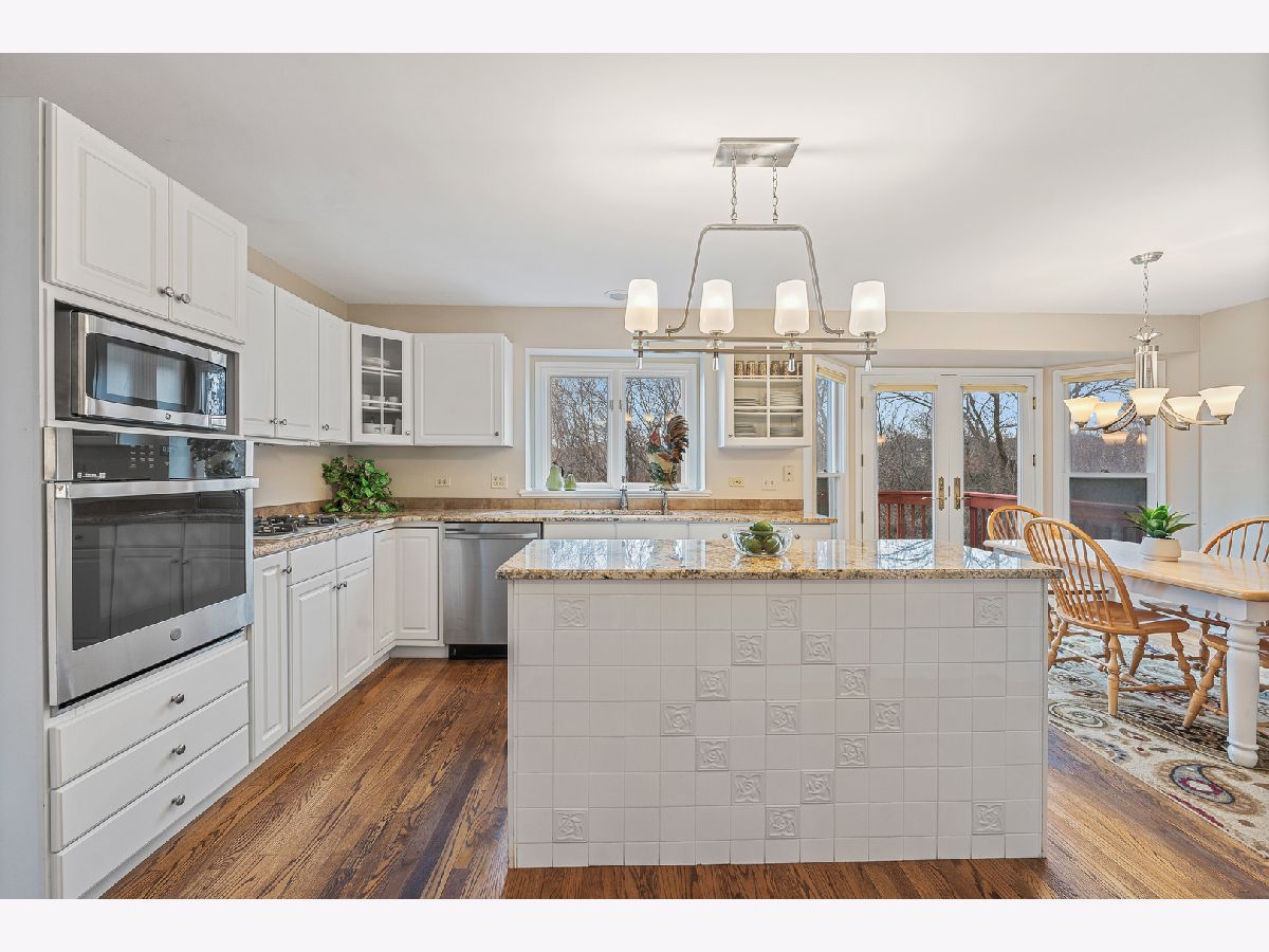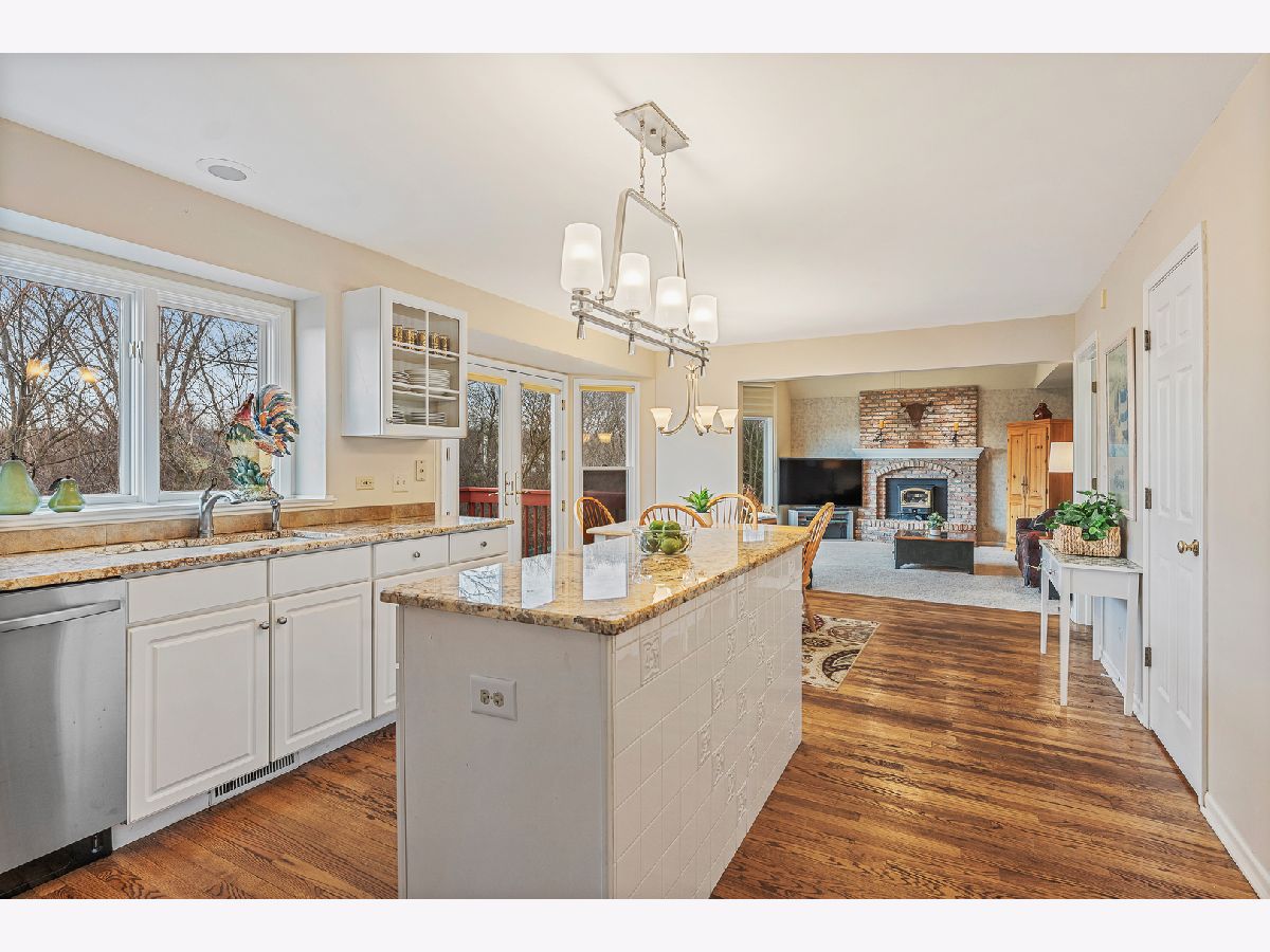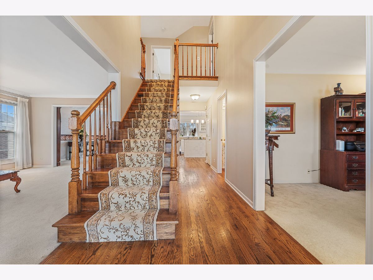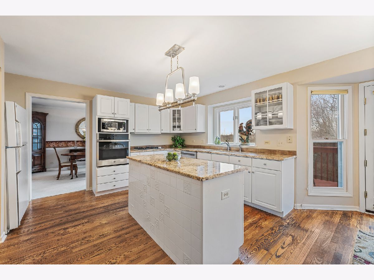 Start your days and end your evenings sitting in your backyard overlooking tranquil views of forest preserves. This lovely 2story home has so many special features such as a large formal Living Room and Dining Room, Spacious Eat-in kitchen with granite counter tops, new stainless steel dishwasher and oven, island, pantry, and hardwood floors all open to stunning family room with dramatic vaulted ceilings, Brick wood burning fireplace, bright bay window with amazing view of forest preserve. Huge full finished walk-out basement with Rec room, exercise room, game room, full bath, workroom, storage and sliding glass doors leading to fenced in yard with brick paver patio, deck, and great views of Forest Preserve. 4 spacious bedrooms, Primary bedroom with tray ceilings, walk-in closet with bonus large storage area, and full private bathroom. Other great features include a 1st floor den, 3 1/2 baths, convenient 1st floor laundry room, New Roof 2022, new siding 2017, new fence and A/C 2013, attached 2 1/2 car garage, covered front porch, professionally landscaped and so much more.