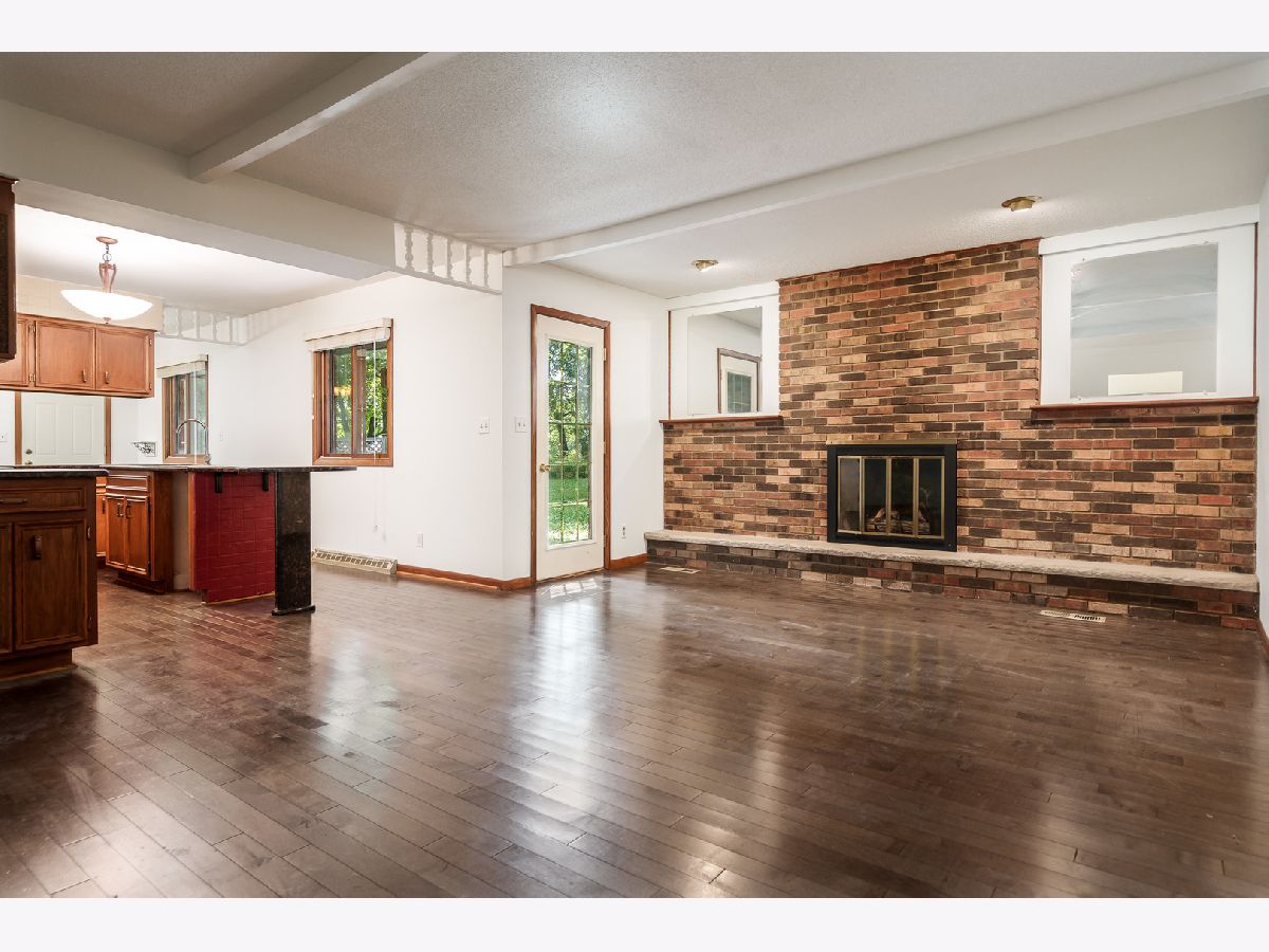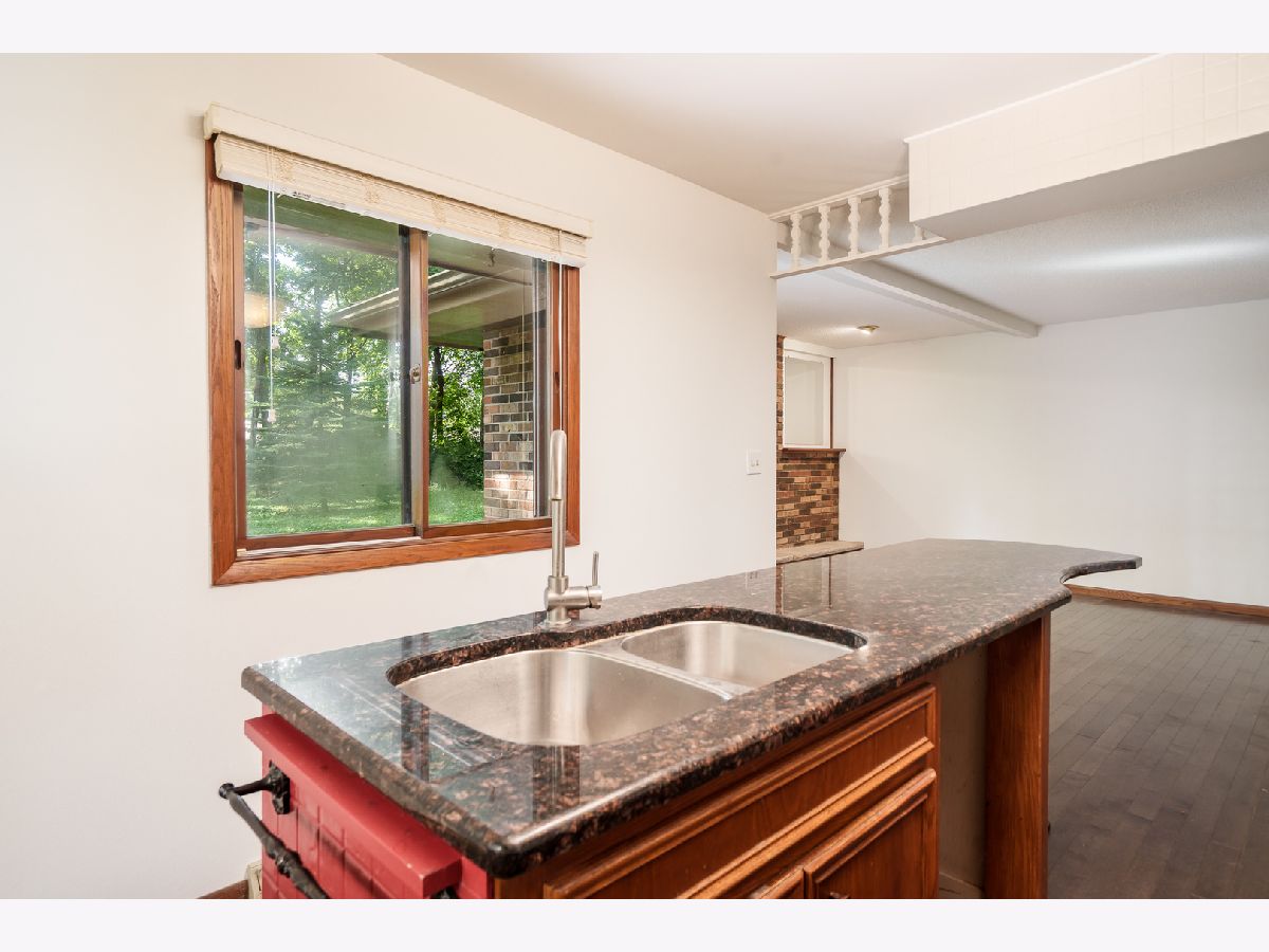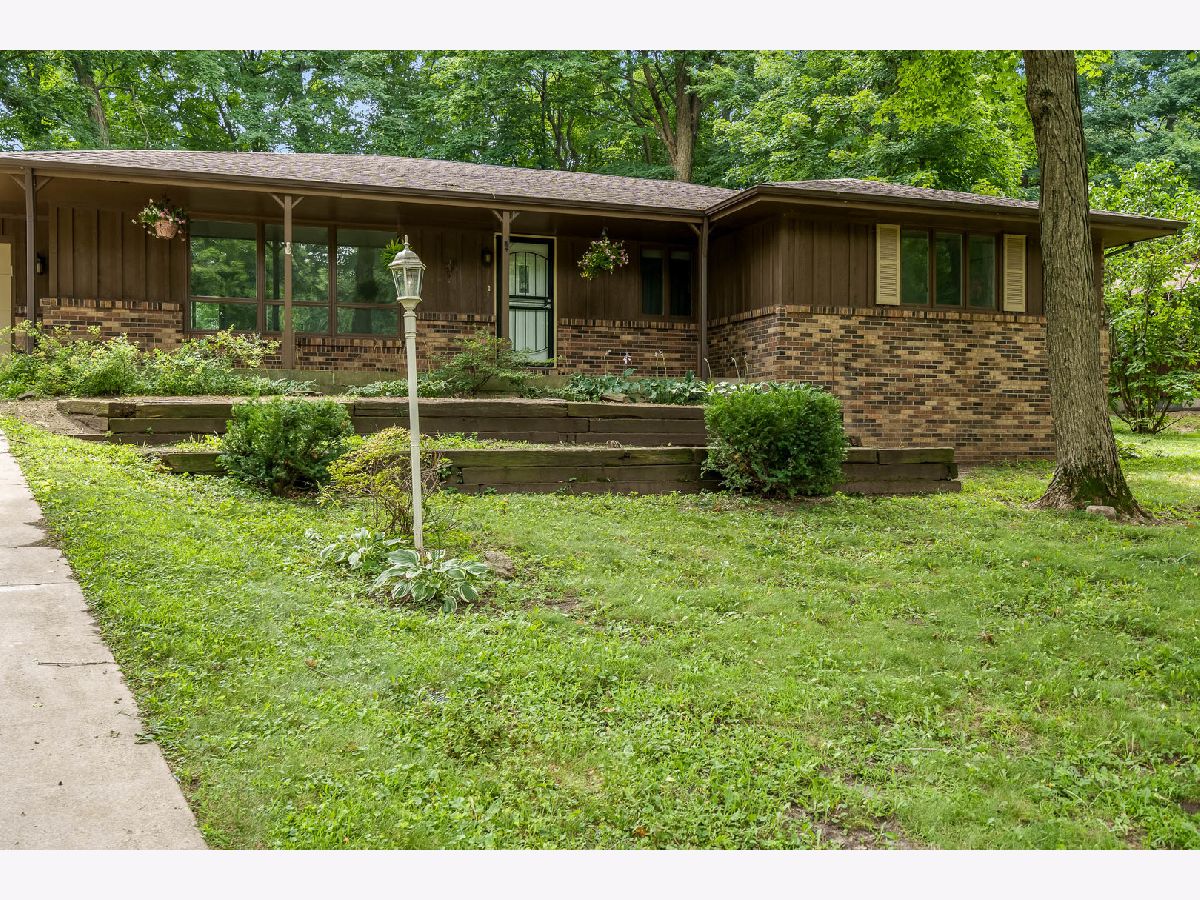 Discover timeless style and modern updates in this beautifully maintained mid-century home, set on nearly a half-acre wooded lot in the desirable Maplewood subdivision. The spacious covered veranda across the front of the home provides the perfect spot to relax and take in the sights and sounds of nature. Inside, you'll find 1,891 sq. ft. of thoughtfully designed living space, freshly painted throughout. The slate-tile entry leads to a sunken living room with brand-new carpet and a dramatic triple-panel window that fills the space with natural light. The formal dining room showcases a built-in china cabinet with a modern light fixture and opens to the updated kitchen, featuring granite countertops, a center island, and ample cabinetry. The adjoining family room offers warmth and charm with a brick wood-burning fireplace, while newer 3/4-inch charcoal-stained hardwood floors extend through the dining, kitchen, and family room areas. The primary suite offers privacy with 190 sq. ft. of comfortable space and a full private bath. Two additional bedrooms are generously sized, complemented by a spacious hall bath. The lower level is a blank canvas, ready to be finished to your taste, with extra hardwood flooring available to extend into the hallways. Outdoors, a brick and concrete patio overlooks mature trees, creating a serene and private retreat. Perfectly located, this home is just minutes from shopping, dining, parks, and convenient access to I-90, Bypass 20, and I-39. An ideal blend of character, space, and updates. This is a home you'll be proud to call your own