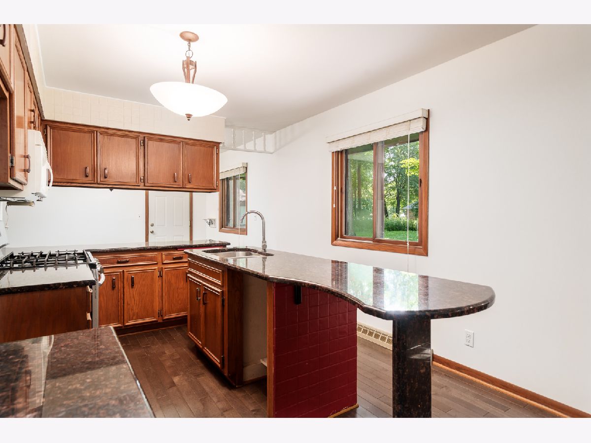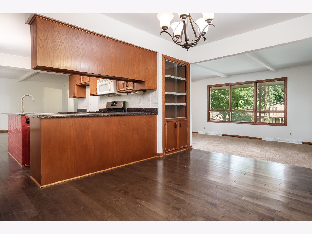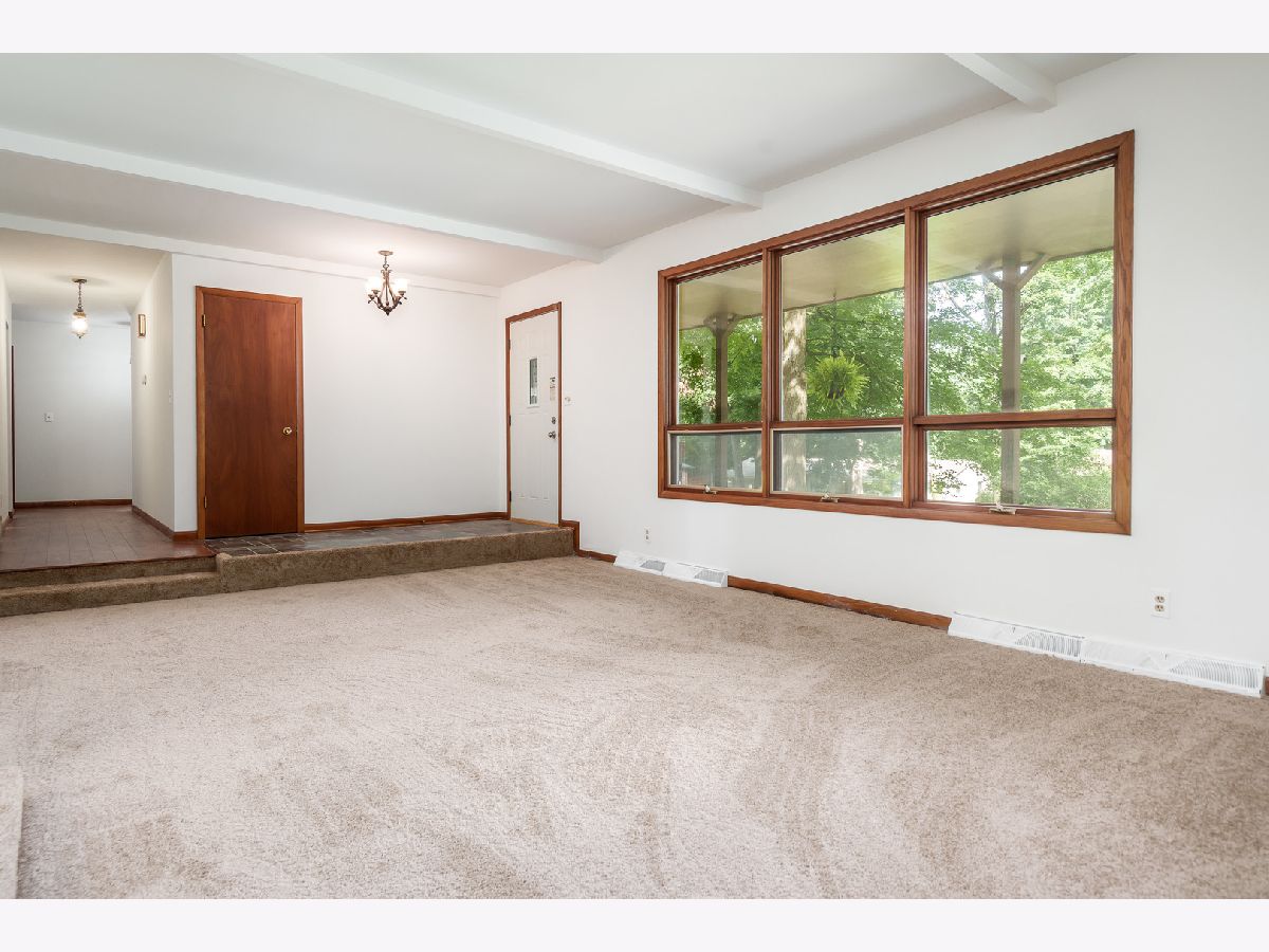 Discover timeless style and modern updates in this beautifully maintained mid-century home, set on nearly a half-acre wooded lot in the desirable Maplewood subdivision. The spacious covered veranda across the front of the home provides the perfect spot to relax and take in the sights and sounds of nature. Inside, you'll find 1,891 sq. ft. of thoughtfully designed living space, freshly painted throughout. The slate-tile entry leads to a sunken living room with brand-new carpet and a dramatic triple-panel window that fills the space with natural light. The formal dining room showcases a built-in china cabinet with a modern light fixture and opens to the updated kitchen, featuring granite countertops, a center island, and ample cabinetry. The adjoining family room offers warmth and charm with a brick wood-burning fireplace, while newer 3/4-inch charcoal-stained hardwood floors extend through the dining, kitchen, and family room areas. The primary suite offers privacy with 190 sq. ft. of comfortable space and a full private bath. Two additional bedrooms are generously sized, complemented by a spacious hall bath. The lower level is a blank canvas, ready to be finished to your taste, with extra hardwood flooring available to extend into the hallways. Outdoors, a brick and concrete patio overlooks mature trees, creating a serene and private retreat. Perfectly located, this home is just minutes from shopping, dining, parks, and convenient access to I-90, Bypass 20, and I-39. An ideal blend of character, space, and updates. This is a home you'll be proud to call your own