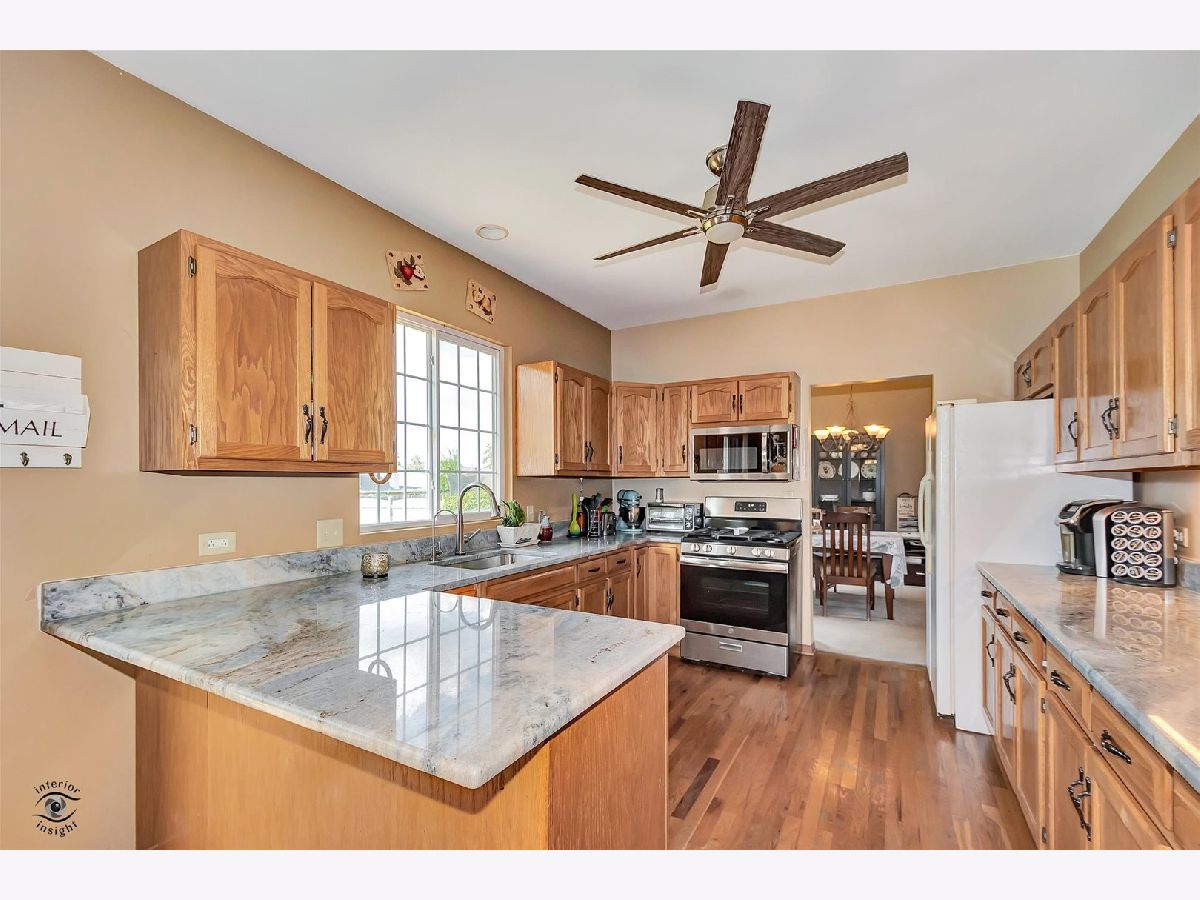 Welcome to this spacious and beautifully maintained 3 bedroom, 2.5 bath home offering the perfect blend of comfort, style, and convenience. From the moment you step inside, you'll appreciate the inviting formal living and formal dining rooms featuring vaulted, beamed ceilings that add warmth and character to the home. The updated kitchen is a true highlight, complete with granite countertops, oak cabinets offering plenty of storage, a breakfast bar, and an eat-in dining area. Newer appliances include a low-profile microwave, dishwasher, oven/stove, and disposal, and new ceiling fan adds modern comfort. The main floor also features a cozy family room, separate dedicated office for those who work from home, and a spacious laundry and mudroom for added practicality. Upstairs, the generous master suite includes a full attached bath, while two additional extra-large bedrooms share a well-appointed second full bath. Additional features include a 2.5-car garage, a full privacy-fenced yard with a shed, and a full partially finished basement offering flexible space for recreation, storage, or hobbies. Newer Sump pump with Battery backup, Water Softener, Reverse Osmosis, Water filtration System, AC 2 yrs & Roof 10 yrs. This home offers easy interstate access, close park in subdivision, community events and activities nearby, and best of all-there's no HOA. An annual property tax refund makes this home an even smarter investment. Village Inspection Complete, Occupancy permit issued, Appraisal & home inspection completed - Truly MOVE IN READY! Don't miss your chance to make this wonderful home your own-schedule your private tour today!