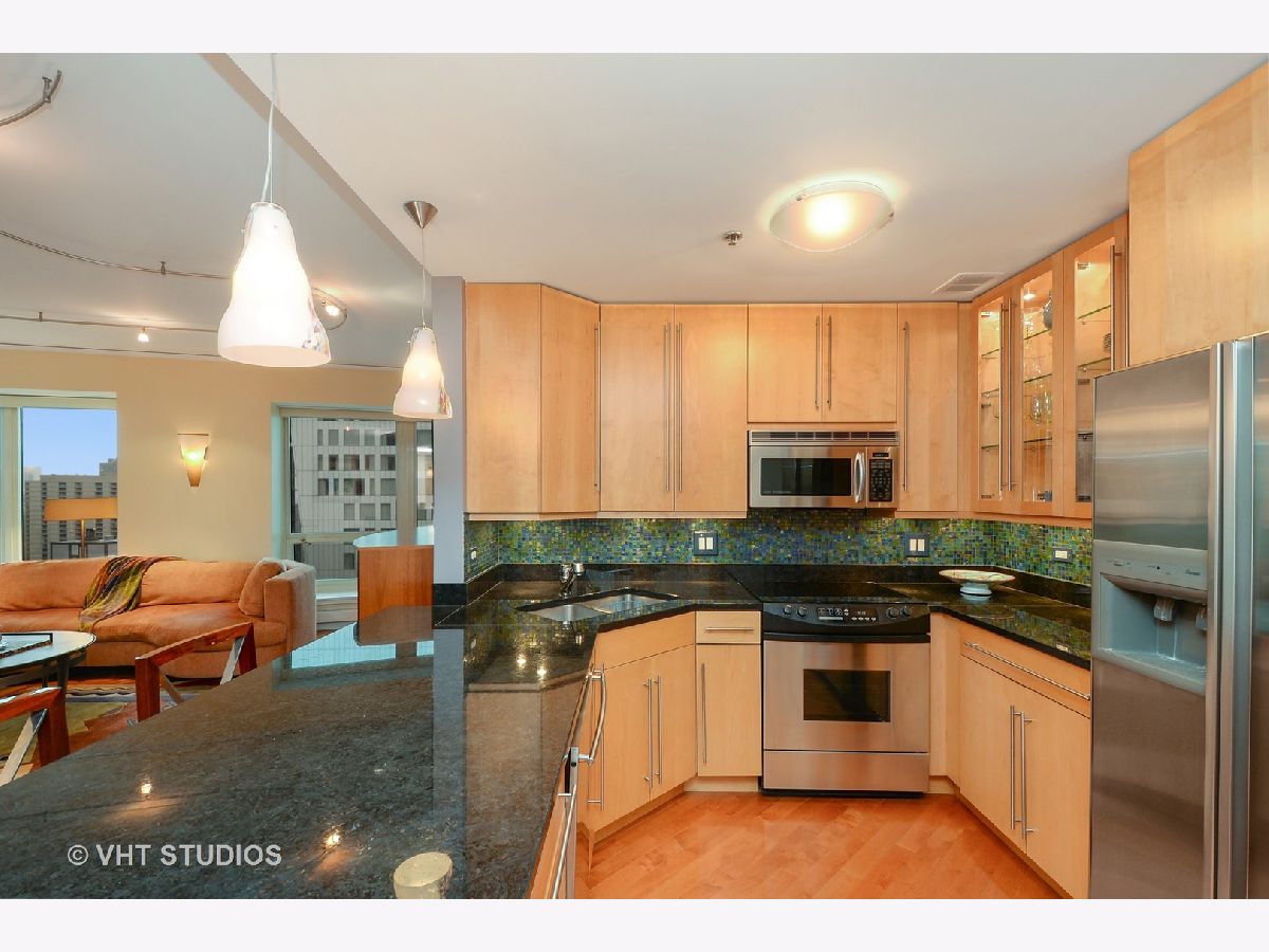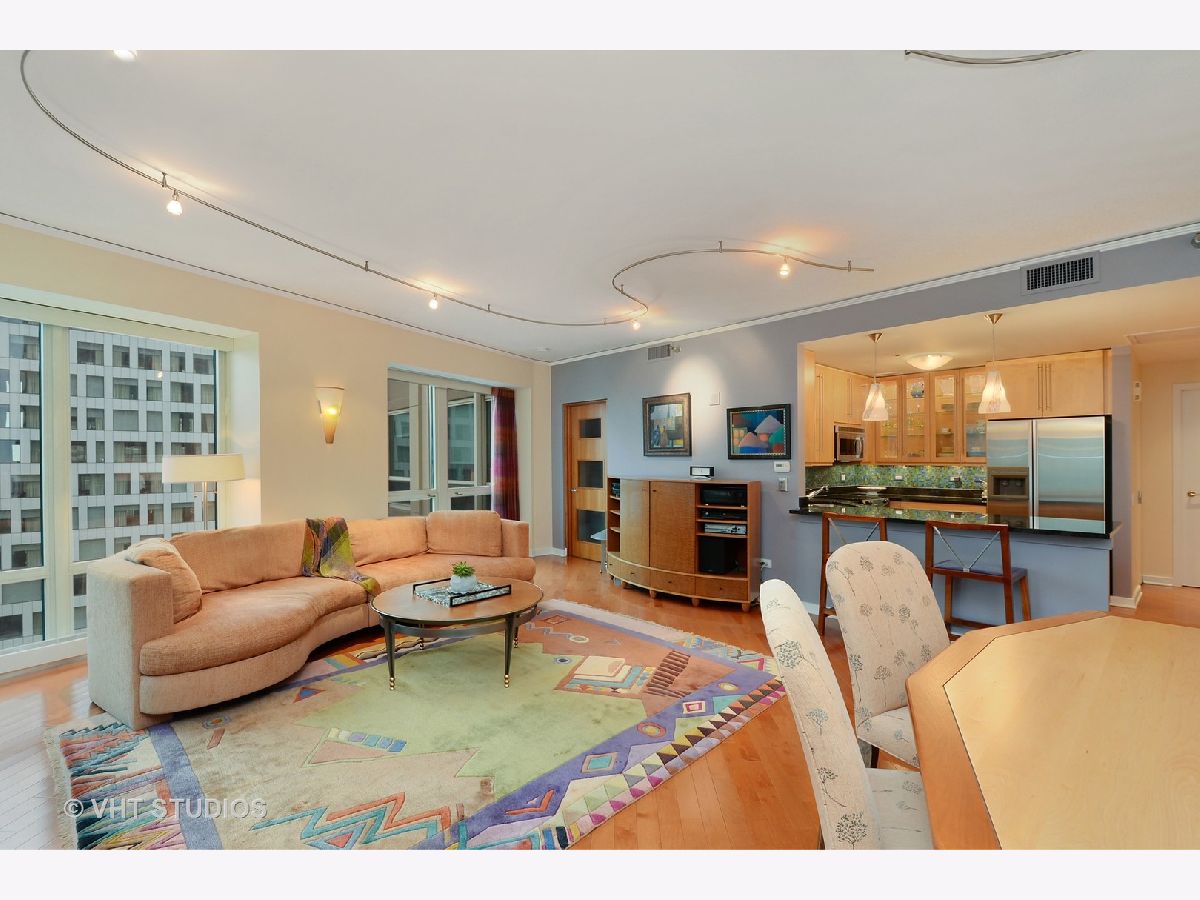Exquisite, Upgraded, and Exceptionally Spacious. This thoughtfully designed floorplan offers an impressive blend of flow and functionality. Diagonal maple hardwood floors run throughout the expansive living and dining areas, which are bathed in natural light and framed by floor-to-ceiling windows. The kitchen is standout, featuring a large island with seating, illuminated maple cabinetry with glass fronts, under-cabinet lighting, a mosaic tile backsplash, and premium stainless steel appliances. *(NEW quartzite countertops not seen in photo). The generously sized primary suite easily accommodates a king bed and boasts a custom-fitted closet. And the luxurious en-suite bath is appointed with Caesarstone countertops, an over sized Whirlpool soaking tub, separate shower, abundant storage and a laundry closet. There is a beautifully finished powder room adding convenience and style for guests. Additional highlights include built-in sound system in the living room and primary bath, with no exclusions. The Bristol - LUXURY SMOKE-FREE BUILDING, offers premier full-service living with impressive amenities including: a full gym with top professional equipment, an indoor pool with Jacuzzi, a beautiful club room with catering kitchen, bar area, library, TV lounge area - all overlooking a spacious outdoor terrace with grills and a fire pit. Pet friendly up to 25lbs. CONVENIENT LOCATION - 1/2 block from Chicago's superb shopping, dining & transportation. Garage parking (#9) is included in the price, which is exceptionally competitive for this size, quality, and location - this is unmatched value in the Gold Coast!