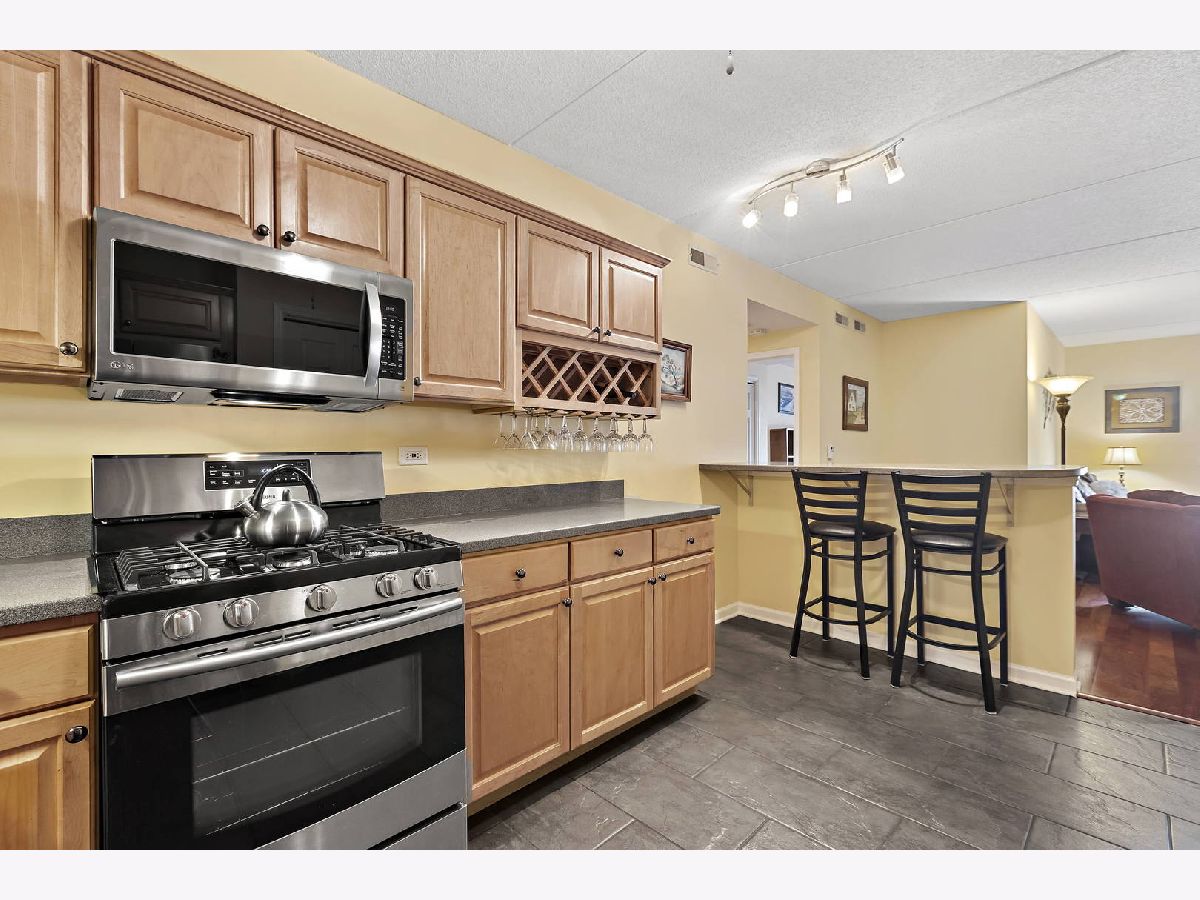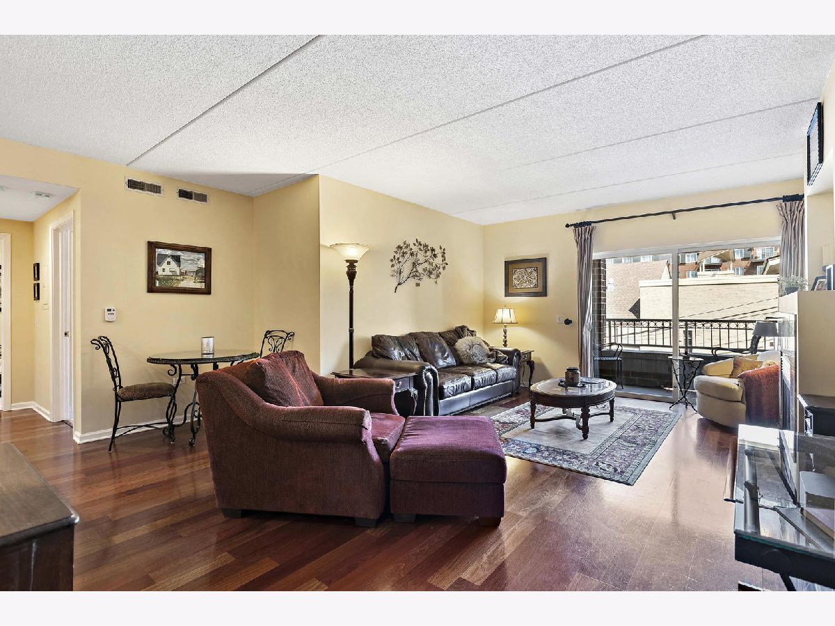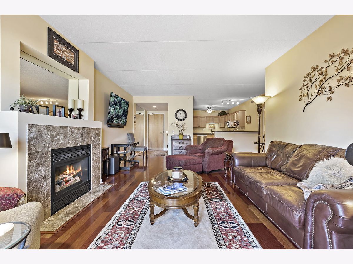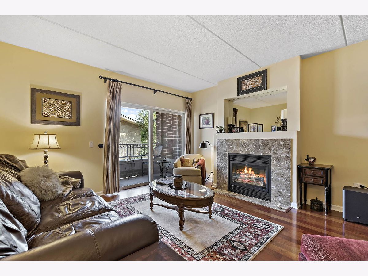 Imagine living in this walk-to -everything condo in the heart of Glen Ellyn! This is a sought-after, secure building with a key fob entry, and features a rare TWO PARKING SPACES- including a garage space! Wow! This building is ideally located across the street from Metra, steps to Starbucks, the renowned Glen theater, fantastic restaurants, enjoyable shopping and all that a vibrant downtown has to offer. This unit is especially nice, with gleaming hardwood floors and a marble surround gas fireplace in the family room. The kitchen has a smart breakfast bar and features solid state counter tops and stainless appliances.There's even an in-unit laundry! The primary bedroom has a walk in closet, plus a roomy bonus room that could be used as an excercise room or office. There is a soaking tub and a walk-in shower in the en-suite bathroom. A deck just off the family room is perfect for morning coffee. Welcome to your new lifestyle!
