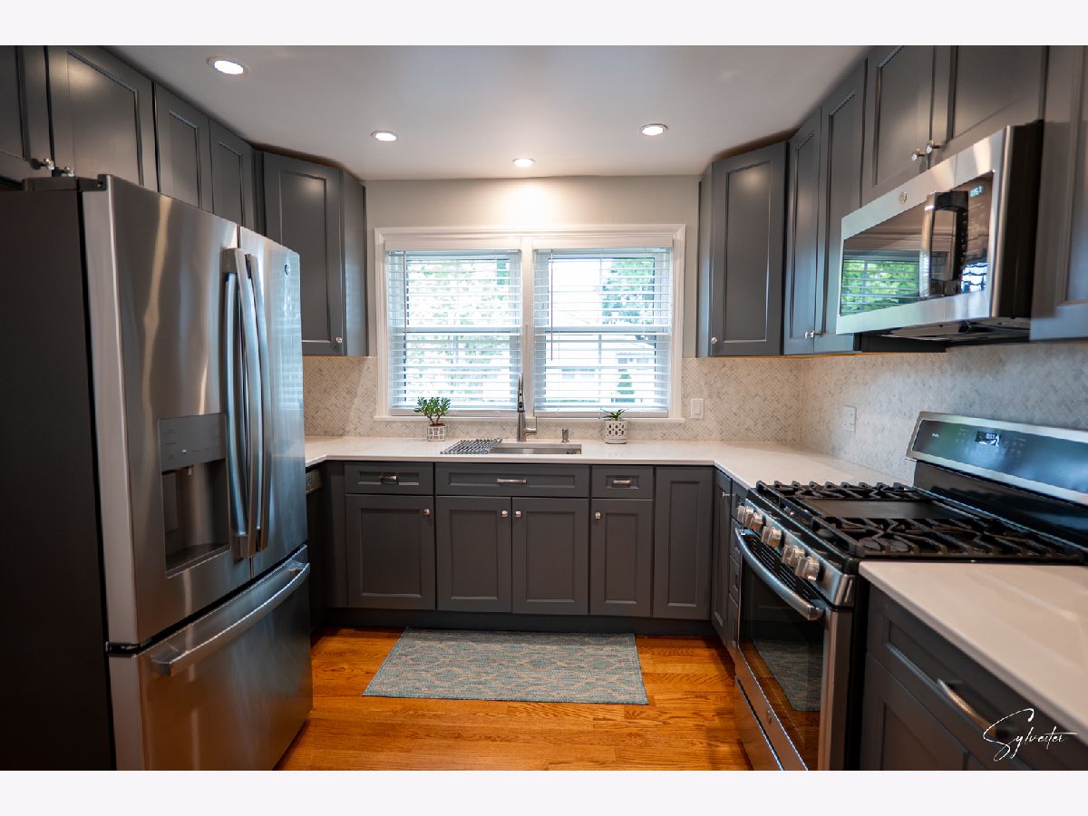 Welcome to this meticulously maintained all-brick bungalow, nestled on a prime corner lot in the heart of Portage Park, Chicago. This charming home perfectly blends timeless appeal with modern amenities, offering a comfortable and stylish living experience. Inside, you'll find three spacious bedrooms and two fully updated bathrooms, all featuring fresh paint and beautiful hardwood floors that add warmth and character to each room. The heart of the home is the fully updated kitchen, designed with both functionality and elegance in mind. It boasts new quiet-close cabinets, sleek quartz countertops, stainless steel appliances, and a custom-built breakfast nook, making it the perfect space for casual dining and culinary creations. The finished basement is a true showstopper, offering a sprawling open-concept space that includes a second full kitchen, a cozy fireplace, and a wine cellar, ideal for entertaining guests or enjoying a quiet evening at home. The basement also features a separate exterior entrance and a dedicated storage and woodshop area, providing ample space for hobbies or projects. Step outside to discover your own private backyard oasis. The expansive double-wide lot is enclosed by a new privacy fence and features a newer pergola, a concrete patio, and meticulously landscaped grounds, creating an inviting space for outdoor gatherings and relaxation. The property also includes a 2-car detached garage with prime corner lot access, ensuring convenience and ample storage. Additionally, the home offers an exciting opportunity to expand with an 800 sq. ft. attic featuring extra tall ceilings. This space is easily accessible from the main level staircase and awaits your finishing touches to transform it into whatever your heart desires. This beautiful bungalow offers a rare combination of modern upgrades, abundant space, and a desirable location in Jefferson Park. Don't miss your chance to make this exceptional property your forever home!