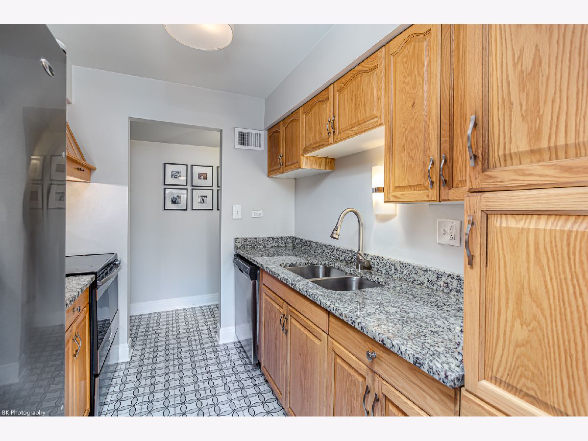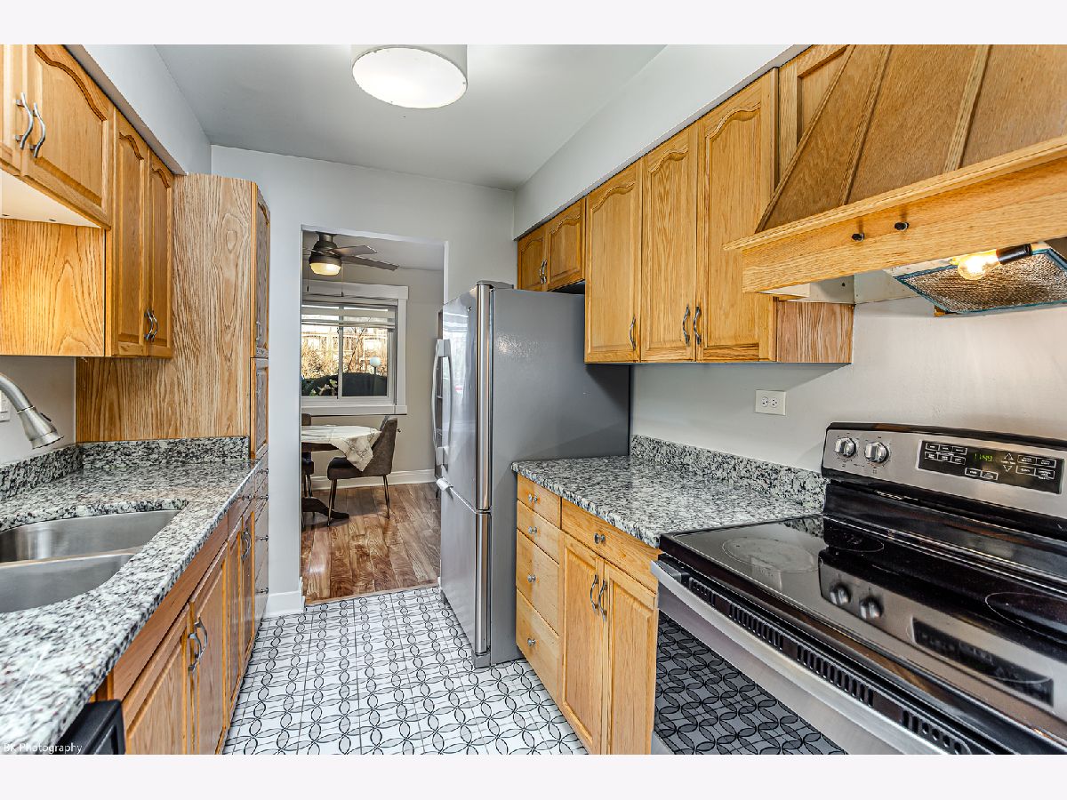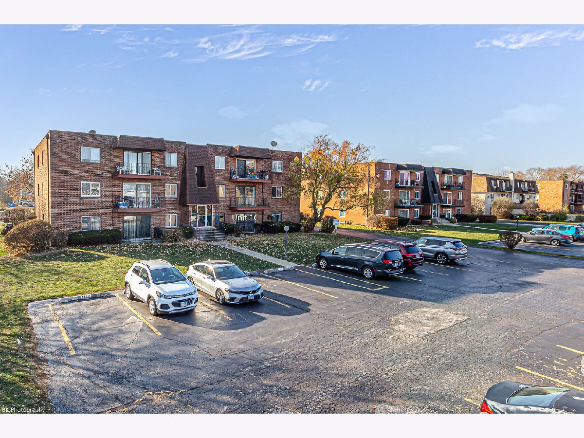 Why Rent when you can Own for less! Gorgeously renovated and freshly painted large 2 Bedroom 1.1 Bath Crestwood first floor condo features stainless steel appliances, granite counter tops, wood plank laminate flooring, white doors/trim, welcoming foyer, a bright living room with custom build-in cabinetry and balcony access, private kitchen, separate dining area, large master bedroom with walk in closet, second good sized bedroom and updated baths with new plumbing and modern tiles. Luxury full size bath has custom Nordic Oak vanity and Kohler faucet. All windows and patio doors are double pane. Custom blinds throughout.Two parking spaces and plenty of guest parking. Nice sized storage room. Highly desirable Palos Heights school district 128. Great location near Lake Katherine Nature Center and Botanic Gardens, shopping, restaurants and quick access to I-294!
