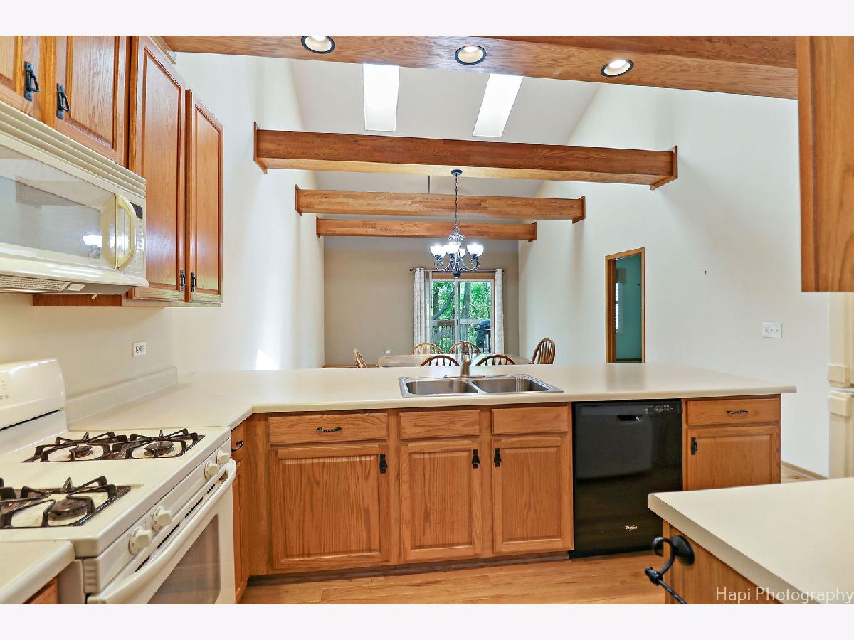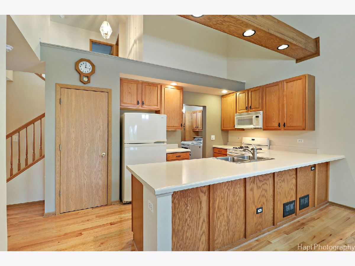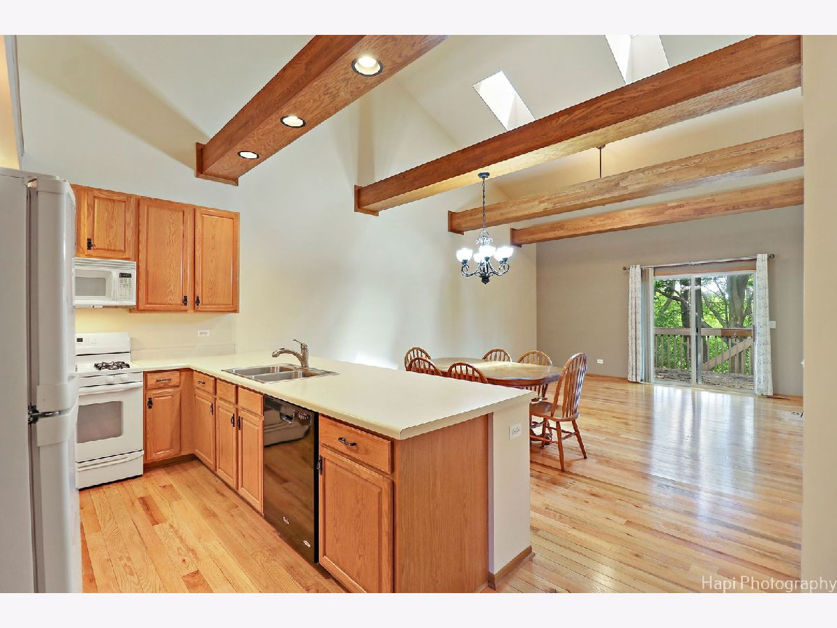 Welcome to this charming 3 bedroom, 2 full bathroom and 2 half bath end unit condo located the heart of McHenry. This home is MOVE IN Ready!! The open floorplan features vaulted ceilings with fantastic wood beams and skylights creating a light and airy atmosphere. The first floor master suite boasts a walk-in closet and en-suite bathroom, providing a peaceful retreat. The convenience of first floor laundry adds to the ease of living in this home. Upstairs, you will find two additional bedrooms and a full bathroom, perfect for guests or family members. The finished basement is a true highlight, with a great room, gas fireplace, wet bar, 1/2 bathroom, and built-in desk space, offering ample opportunities for entertaining and relaxation. Updates include Water heater in 2016. With a 2 car garage and a host of desirable features, this condo is a must-see for those seeking a comfortable and stylish living space. As Is Estate Sale