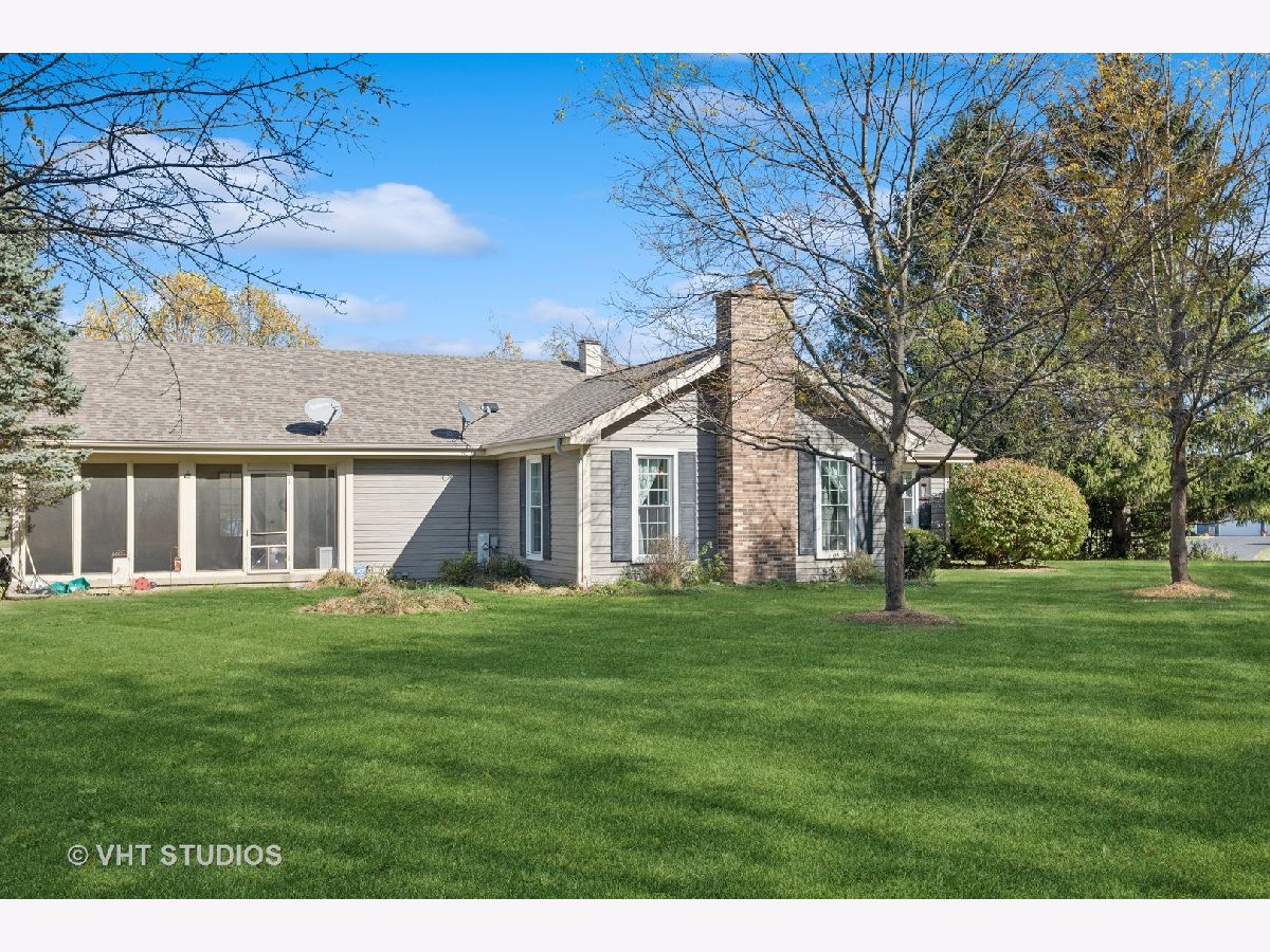 Highest and Best by 1/19 6pm. Multiple offers received. Discover the charm of this custom-built Crystal Lake ranch, perfectly situated on a beautifully landscaped corner lot spanning over an acre and backing up to mature trees. The owner has meticulously maintained and thoughtfully updated this 3-bedroom, 2-bathroom home, which boasts numerous upgrades. New windows were installed in 2019, along with a new roof, gutters, and trim in 2020. The home features stunning Brazilian chestnut flooring and upgraded trim throughout. The living room, with its dramatic ceilings and large windows, opens into a dining room, creating a spacious and inviting atmosphere. The beautifully updated kitchen offers custom cabinets with under-cabinet lighting, solid surface Corian countertops, newer stainless-steel appliances, and ample counter space. The great room, with its cathedral ceiling, wood beam, and brick fireplace, creates a breathtaking centerpiece for the home. The master bedroom includes a walk-in closet and a full private bath with a large vanity, conveniently situated across from two additional bedrooms and a second full bath. Relax in the screened-in porch overlooking the serene yard with mature trees, or enjoy extra entertainment space in the finished basement, complete with a pool table and ample storage. A covered front porch and attached two-car garage enhance the home's curb appeal. Additional updates include a sump pump and ejector pump installed in 2019, new bathroom venting, newer lighting, and a furnace and water heater that are less than ten years old. Part of the highly rated Crystal Lake schools and just minutes from downtown Crystal Lake, the Metra station, and nearby shopping, dining, and recreational opportunities, this exceptional home is not to be missed!