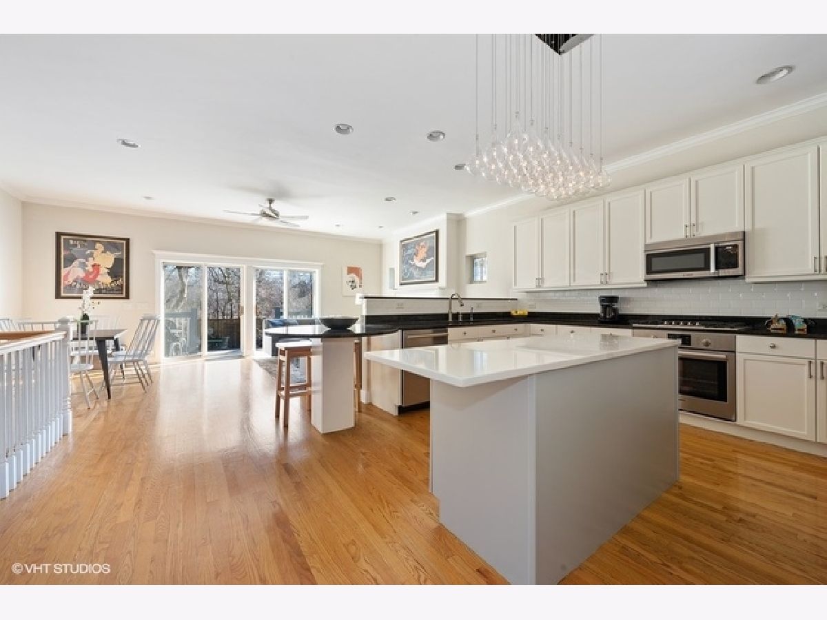 Live on the park and the Chicago River! Designed by renowned award-winning architect Patrick Fitzgerald, this stunning 4,000 SF open-concept home features a quartz and granite chef's dream kitchen with butler's pantry, Bosch 800 Series appliance package, and reverse osmosis water filtration system. Soaring 14' vaulted ceilings, custom stained-glass windows, 2 fireplaces and gleaming natural oak hardwood floors. Sumptuous luxury master bedroom has 2 large walk-in closets, en-suite travertine marble bath with 6-foot oversized Roman soaking tub, separate full-body rain shower, and skylight. A Juliet balcony overlooks the lush park. Terrace off of two of the 2nd floor bedrooms. The lower level features a media room with surround sound, game room with granite wet bar and under-cabinet fridge, 4th bedroom and a full bath. Over-sized lot. Secure 2-car heated attached garage. Radiant heated driveway can accommodate parking for 2 additional cars. Dual zoned HVAC, whole-house intercom/music system, and security system. Rear yard oasis opens to a terrific children's playground, mature trees, bike paths, a river walk, and tennis courts. Typical of many river homes, the architect designed the front of the house to face the water. The residence is within walking distance to Northside College Preparatory High School (ranked #2 in the State of Illinois), Northeastern Illinois University, North Park Theological Seminary, and, the Wonder Montessori School is only 8 short blocks! Also, Starbucks, Bryn Mawr Breakfast Club, shopping, and public transportation. The North Park neighborhood is one of the Chicago's very best kept secrets. One year Home Warranty included. A truly rare find!