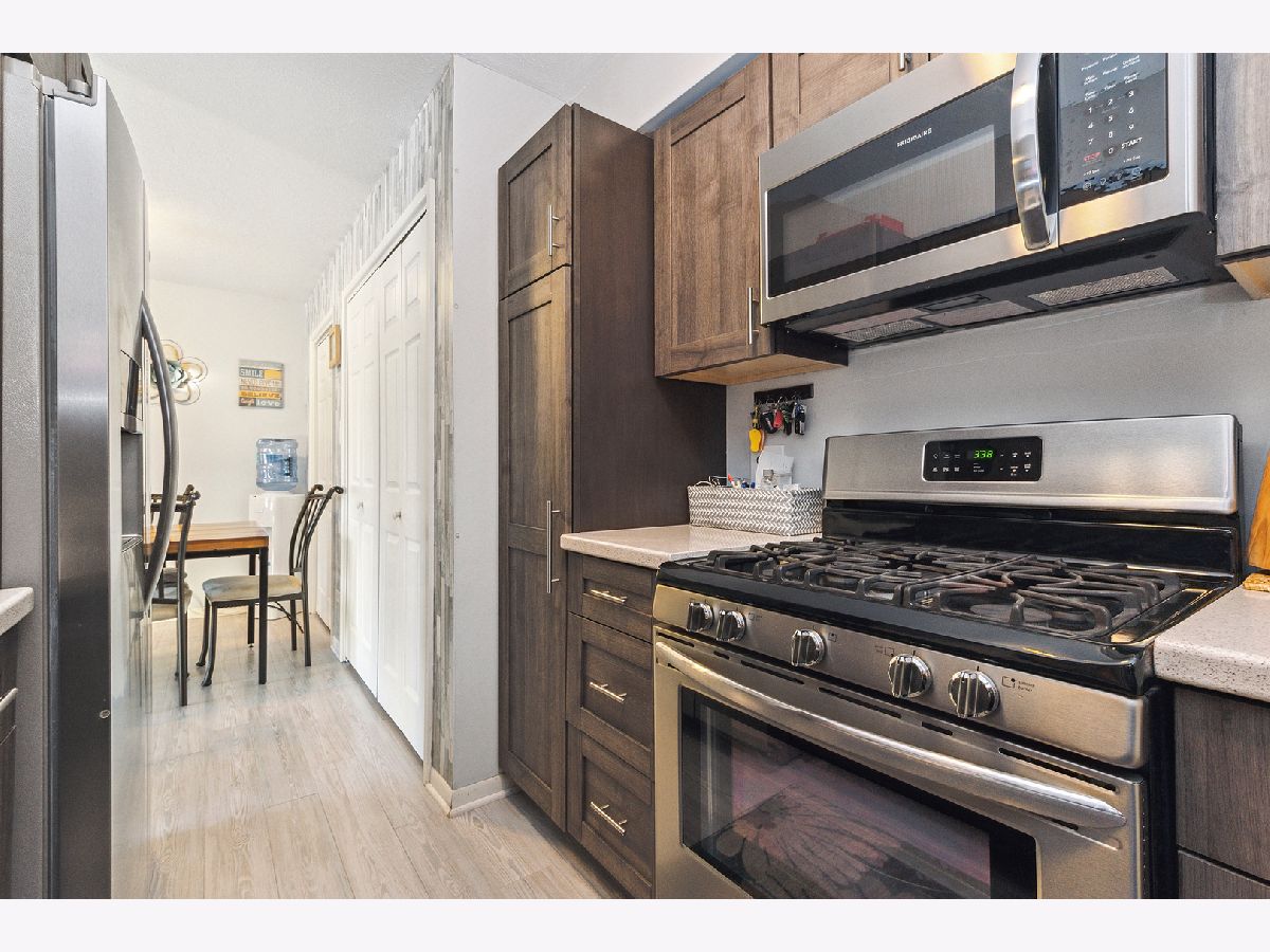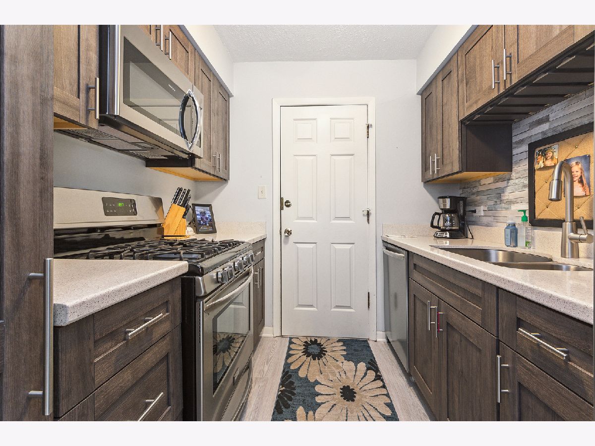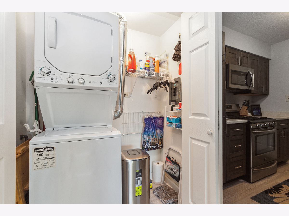 This completely updated first floor unit is ready to move in! So many features! The spacious living room leads to your private patio (with gate leading to yard) and overlooks an open space. Plenty of storage space! The owner has completely renovated the unit including an updated kitchen featuring quartz counters with undermount sink, new cabinets (and plenty of them!), soft close drawers. Appliances and kitchen remodeled approximately 8 years ago. Microwave is about 6 months old. The in-unit stackable washer and dryer were replaced 3 years ago and the air conditioner in the living room was replaced 2/3 years ago. Air conditioner in bedroom also stays! Huge bedroom with walk-in closet. All flooring replaced with laminate flooring approximately 8 years ago. Window and sliding patio door replaced at the same time. The bathroom was also remodeled, and tub surround is quartz. New boiler replaced in 2024 and 2 new hot water heaters. You will be amazed at how updated and cozy this condo is! Close to all shopping, restaurants, and interstates. Storage unit in basement (Condo does not have private basement. Building has basement with storage units for each unit)