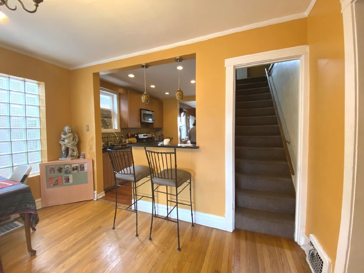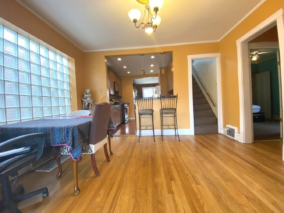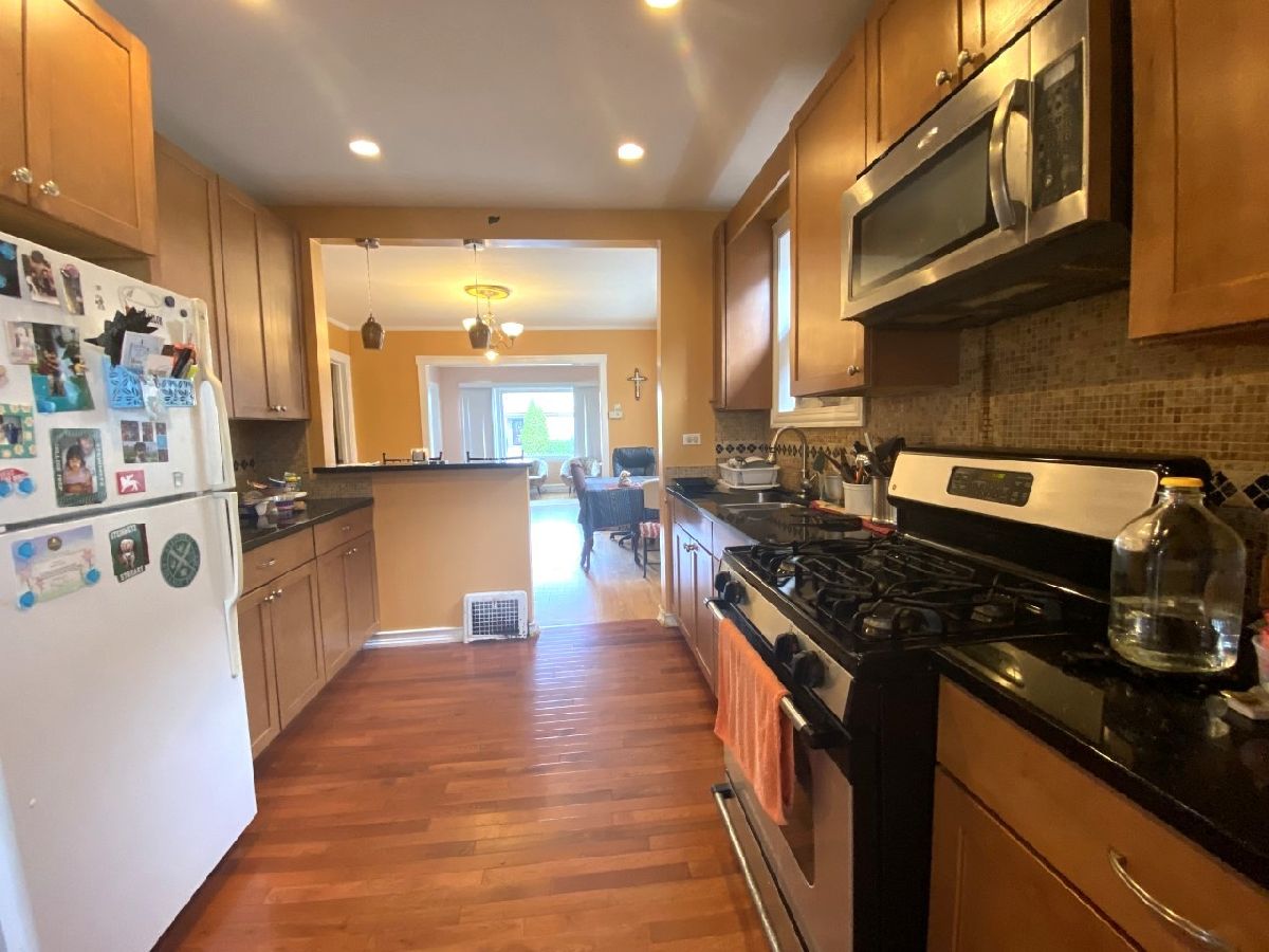 Bungalow in Chicago's desirable Jefferson Park/Portage area. House has a lot of potential. Main level offers Living Room, Dining Room both with Oak flooring, New Kitchen with 42" cabinets, granite counter tops, stone backsplash, built-in stainless steel appliances and recessed lighting, 2 Bedrooms both with closets, full Bath and three season enclosed back porch. Walk up attic is finished with an additional room that may be used as a Bedroom room and a loft area. Walkout Basement partially finished with an open area which may be used as a Family Room, 3/4 Bath with shower and laundry Room area. Fenced yard and 2 car garage. House in is need of minor repairs and is being SOLD AS-IS, WILL NOT PASS FHA. Conventional financing or cash only.