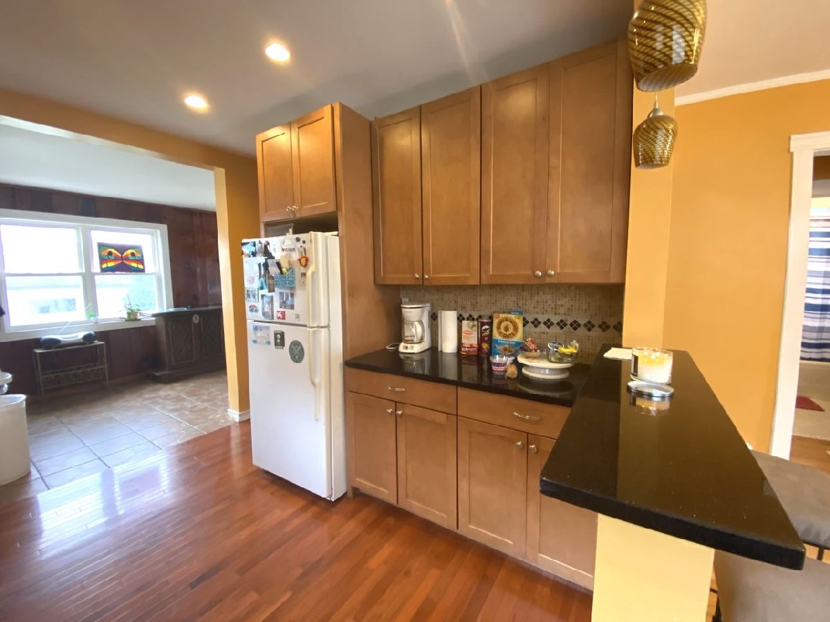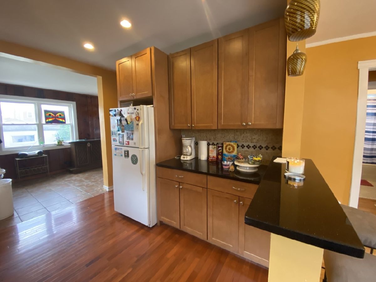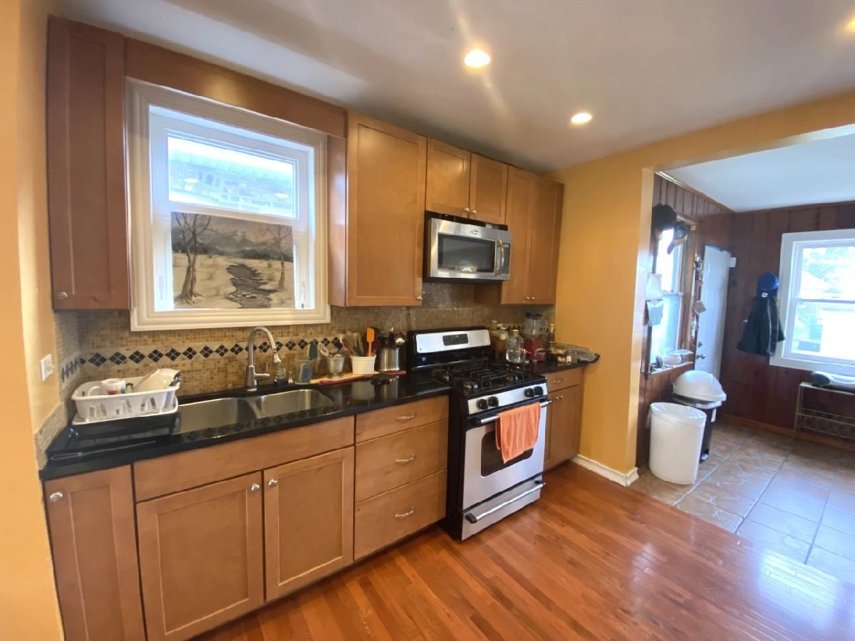Bungalow in Chicago's desirable Jefferson Park/Portage area. House has a lot of potential. Main level offers Living Room, Dining Room both with Oak flooring, New Kitchen with 42" cabinets, granite counter tops, stone backsplash, built-in stainless steel appliances and recessed lighting, 2 Bedrooms both with closets, full Bath and three season enclosed back porch. Walk up attic is finished with an additional room that may be used as a Bedroom room and a loft area. Walkout Basement partially finished with an open area which may be used as a Family Room, 3/4 Bath with shower and laundry Room area. Fenced yard and 2 car garage. House in is need of minor repairs and is being SOLD AS-IS, WILL NOT PASS FHA. Conventional financing or cash only.