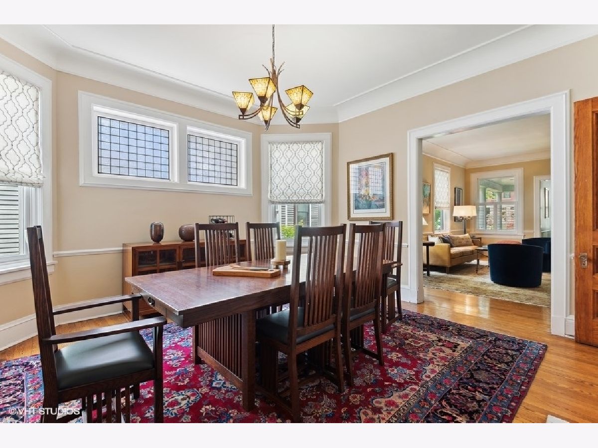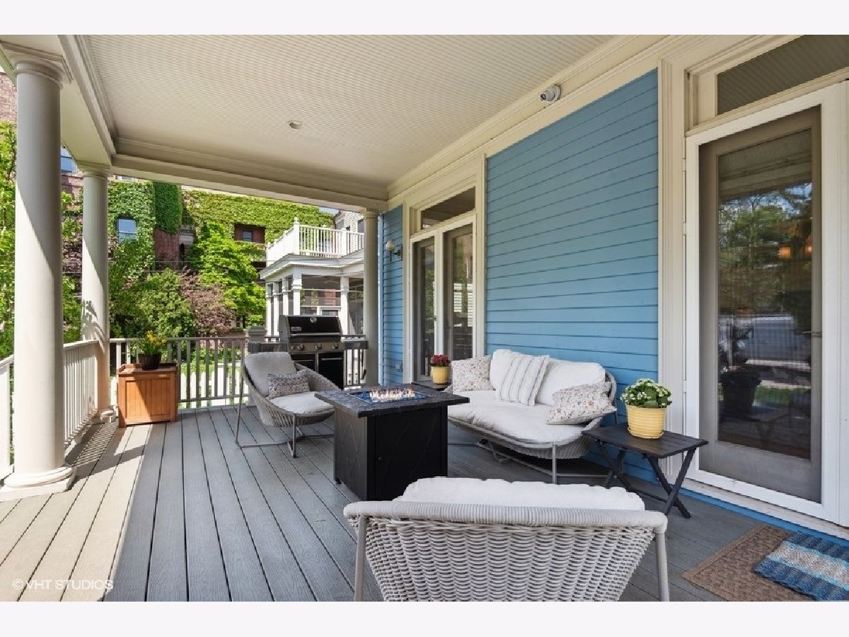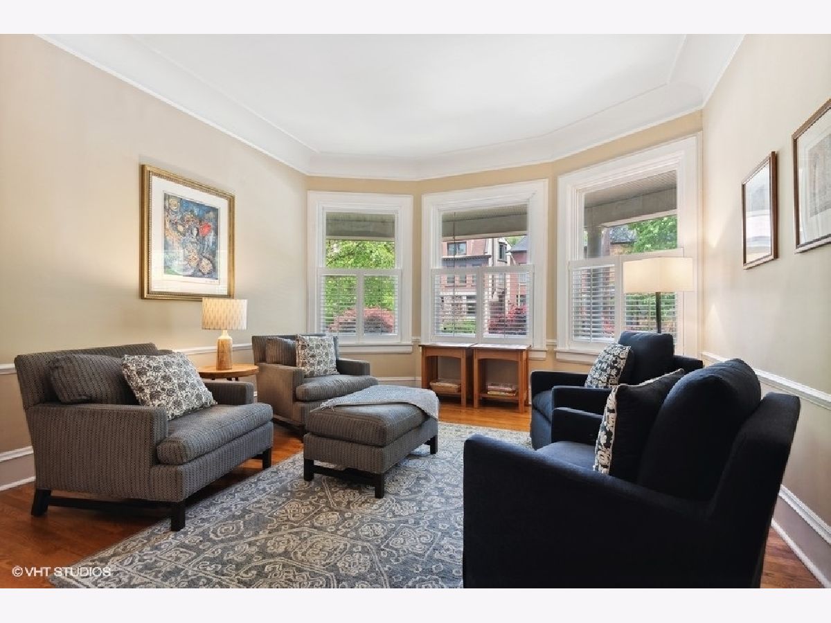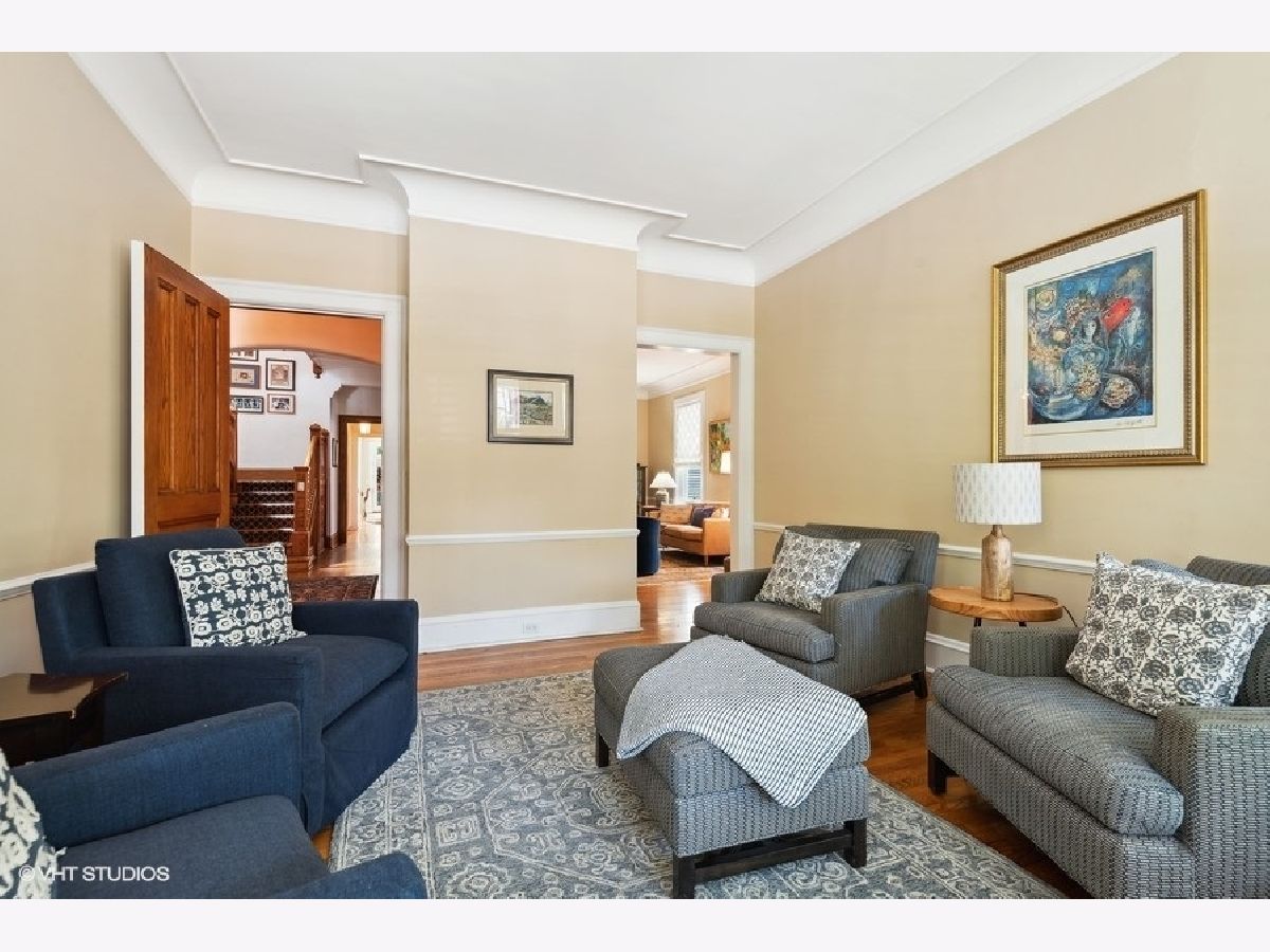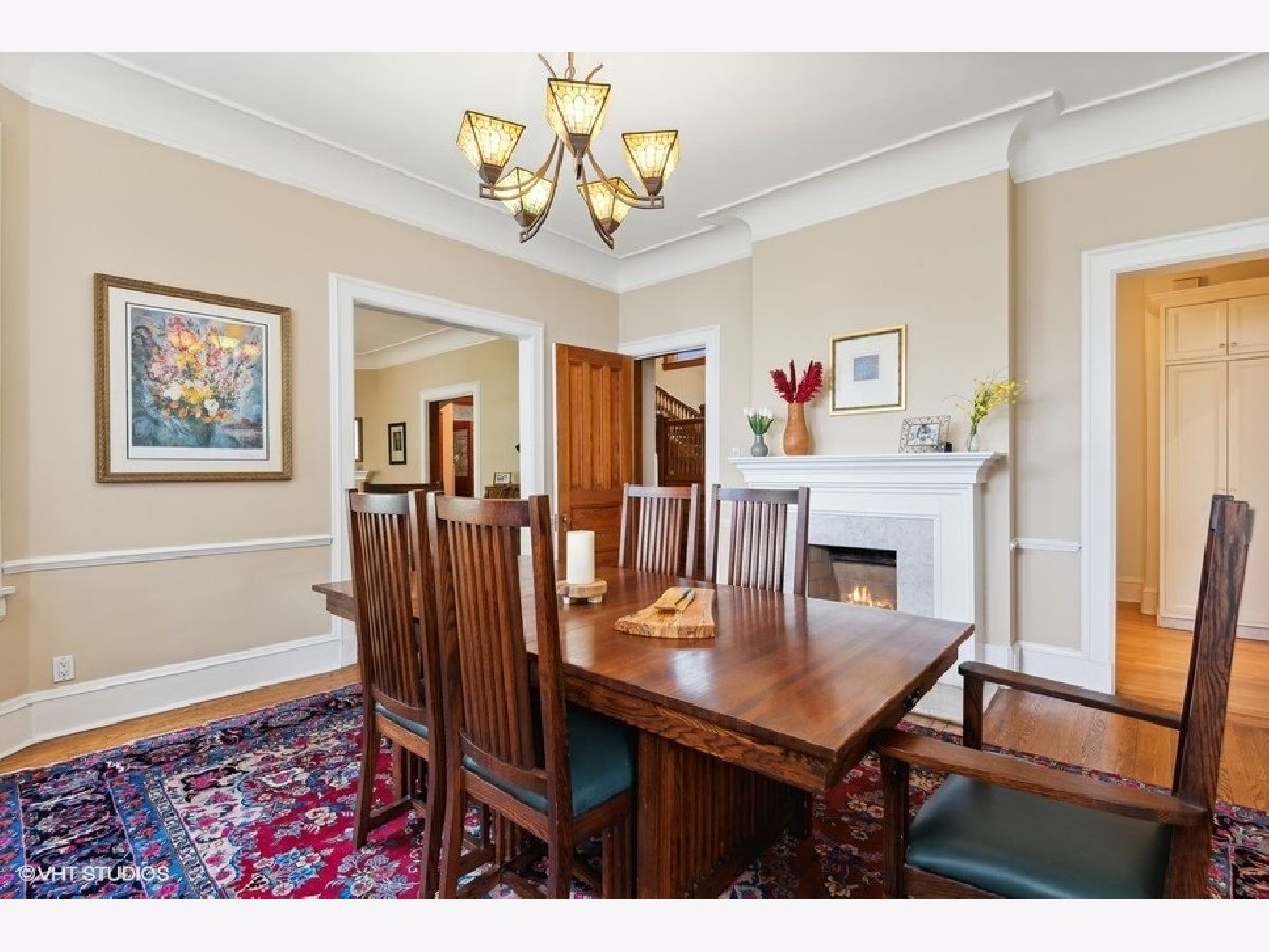 Fabulously updated home in super Hyde Park location, walking distance to University of Chicago, Lab School, Metra, local shops and restaurants. Perfect blend of modern updates and vintage old-world charm! Outstanding floor plan that features the sought-after open kitchen/family room/eating area combo with fully updated kitchen - white and grey cabinetry, natural stone counters, high end appliances, breakfast counter and lots of workspace for the chef in the family! Spacious family room offers a cozy fireplace for winter nights and the eating area is large enough for a farm table of 12. The tastefully crafted built-in shelving units and desk arrangement is great for extra storage and display. Amazing space with lots of windows letting in warm natural light and 2 sets of French doors lead you to the large rear covered porch where you can enjoy the outdoors and yard. The large formal living and dining rooms, both with fireplaces, have ample space for relaxing and entertaining. The den sits at the front of the home just off the large foyer and overlooks the welcoming wrap around porch. The entry with original staircase, natural wood tones and high ceilings feels warm and inviting. The 2nd floor has a primary suite with 2 closets (1 large walk-in) and a newer primary bath complete with double vanity and a walk-in shower. All bedrooms are large with good natural light. Bedrooms #2 and #3 share an updated bathroom and bedroom #4 is en-suite with another recently updated full bath. A spacious and convenient laundry room completes the 2nd floor. The 3rd floor opens to a great room (currently used as a bedroom) with vaulted ceilings and a skylight. You'll also find bedroom #5 plus another full bathroom. The finished basement has several rooms that include 2 bedrooms, an exercise room a kitchenette and a full bathroom. Zoned heating and cooling, 2 car brick-paver parking pad with electronic gated entry. Style, function and beauty - Move right in and love where you live!