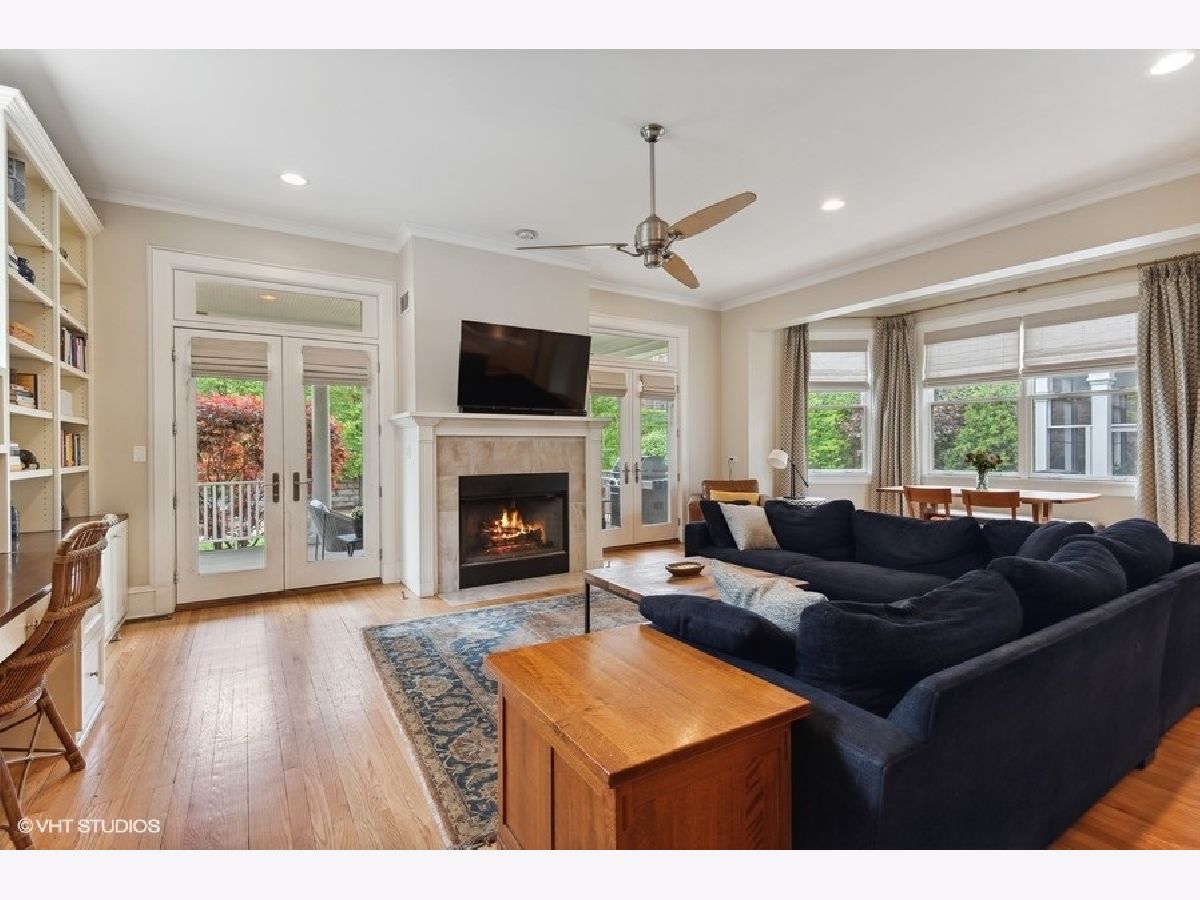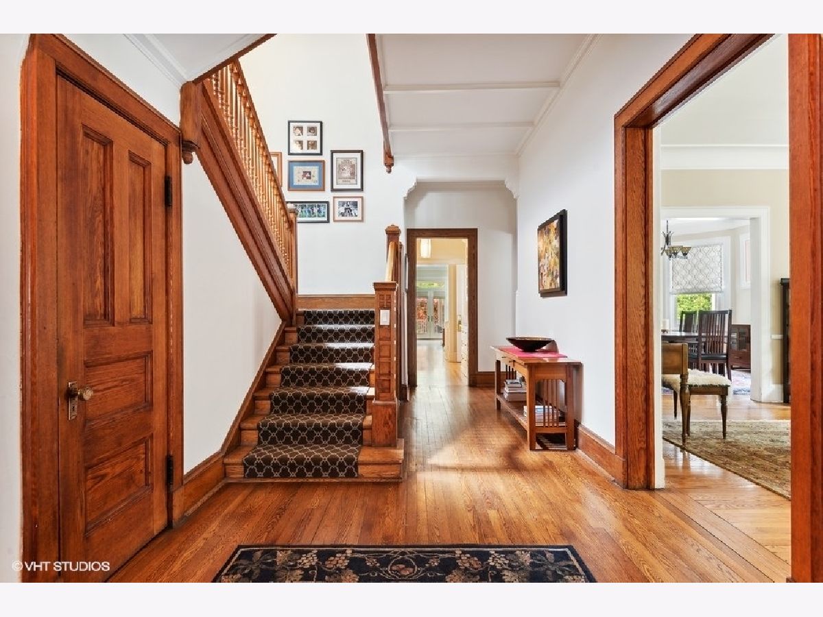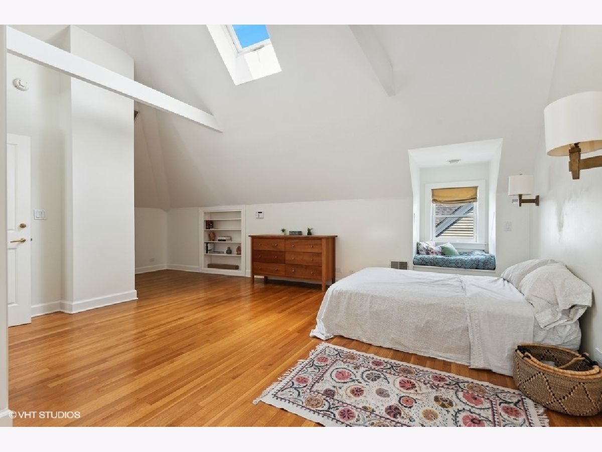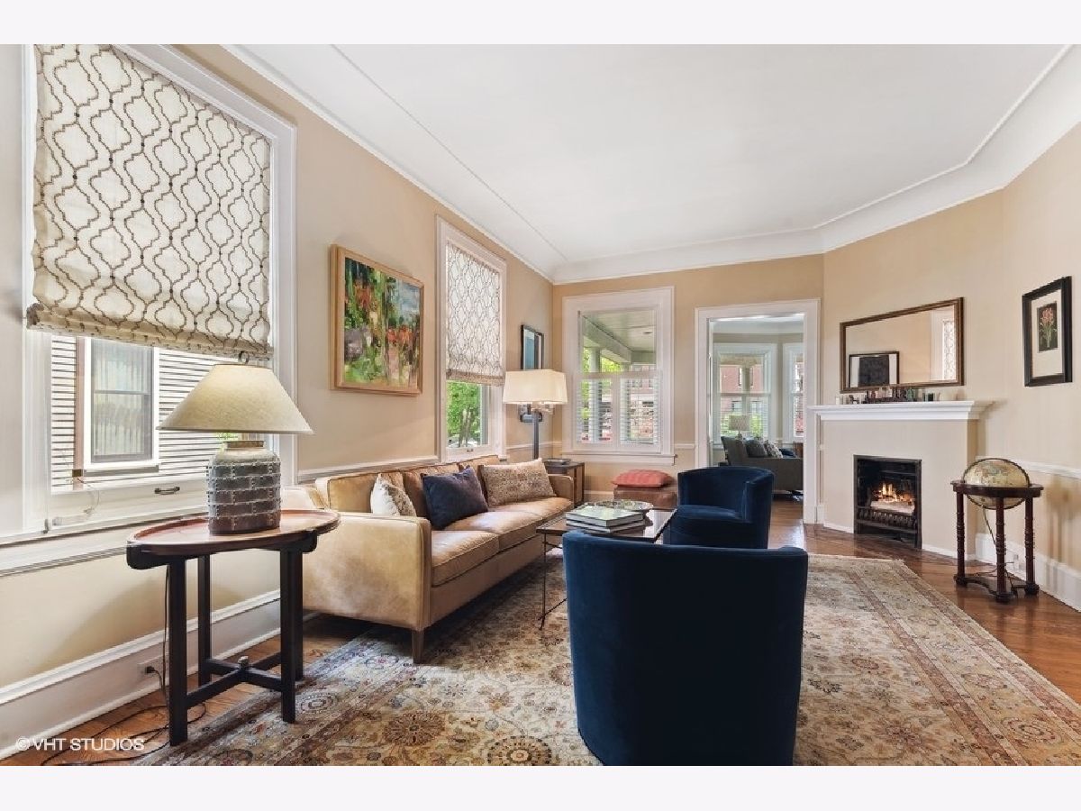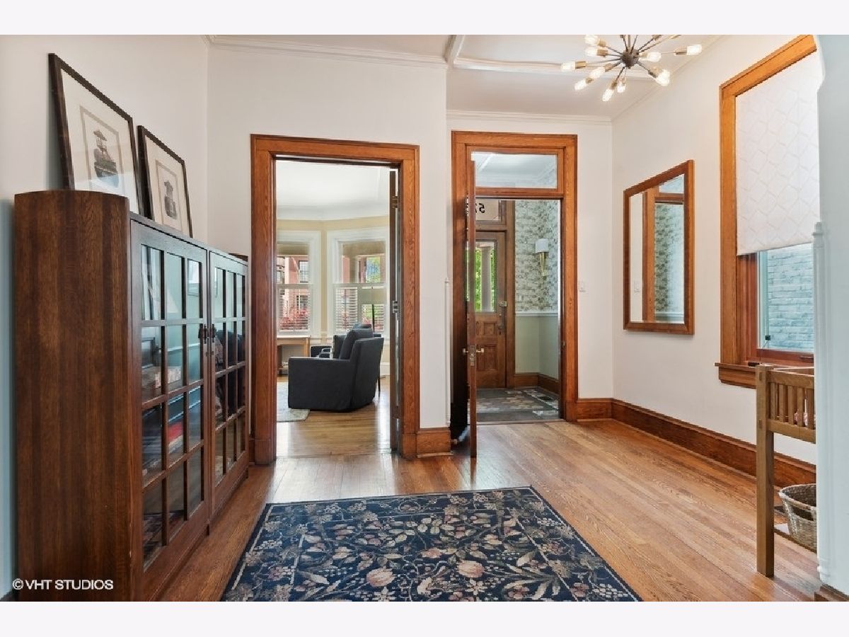 Fabulously updated home in super Hyde Park location, walking distance to University of Chicago, Lab School, Metra, local shops and restaurants. Perfect blend of modern updates and vintage old-world charm! Outstanding floor plan that features the sought-after open kitchen/family room/eating area combo with fully updated kitchen - white and grey cabinetry, natural stone counters, high end appliances, breakfast counter and lots of workspace for the chef in the family! Spacious family room offers a cozy fireplace for winter nights and the eating area is large enough for a farm table of 12. The tastefully crafted built-in shelving units and desk arrangement is great for extra storage and display. Amazing space with lots of windows letting in warm natural light and 2 sets of French doors lead you to the large rear covered porch where you can enjoy the outdoors and yard. The large formal living and dining rooms, both with fireplaces, have ample space for relaxing and entertaining. The den sits at the front of the home just off the large foyer and overlooks the welcoming wrap around porch. The entry with original staircase, natural wood tones and high ceilings feels warm and inviting. The 2nd floor has a primary suite with 2 closets (1 large walk-in) and a newer primary bath complete with double vanity and a walk-in shower. All bedrooms are large with good natural light. Bedrooms #2 and #3 share an updated bathroom and bedroom #4 is en-suite with another recently updated full bath. A spacious and convenient laundry room completes the 2nd floor. The 3rd floor opens to a great room (currently used as a bedroom) with vaulted ceilings and a skylight. You'll also find bedroom #5 plus another full bathroom. The finished basement has several rooms that include 2 bedrooms, an exercise room a kitchenette and a full bathroom. Zoned heating and cooling, 2 car brick-paver parking pad with electronic gated entry. Style, function and beauty - Move right in and love where you live!