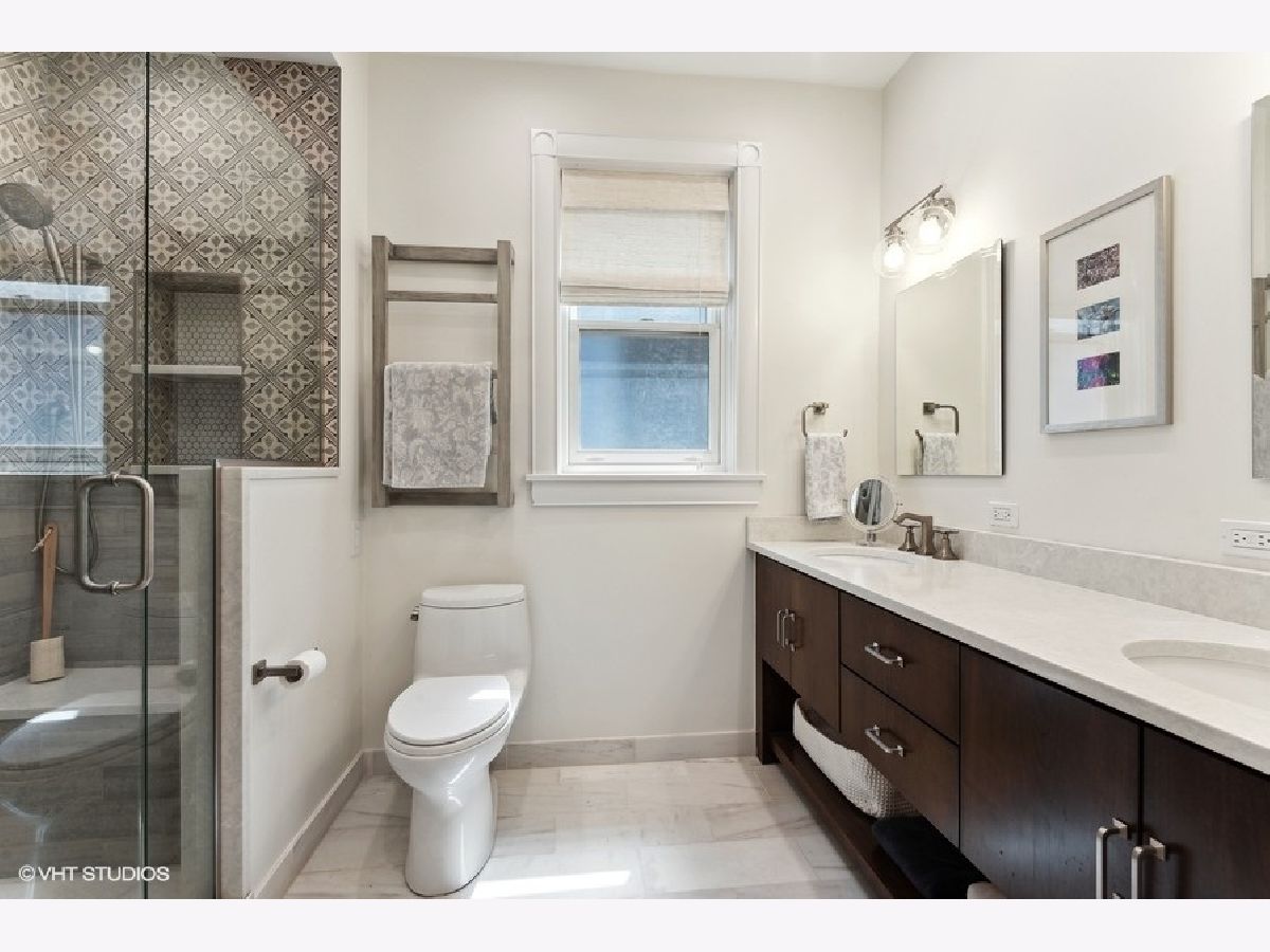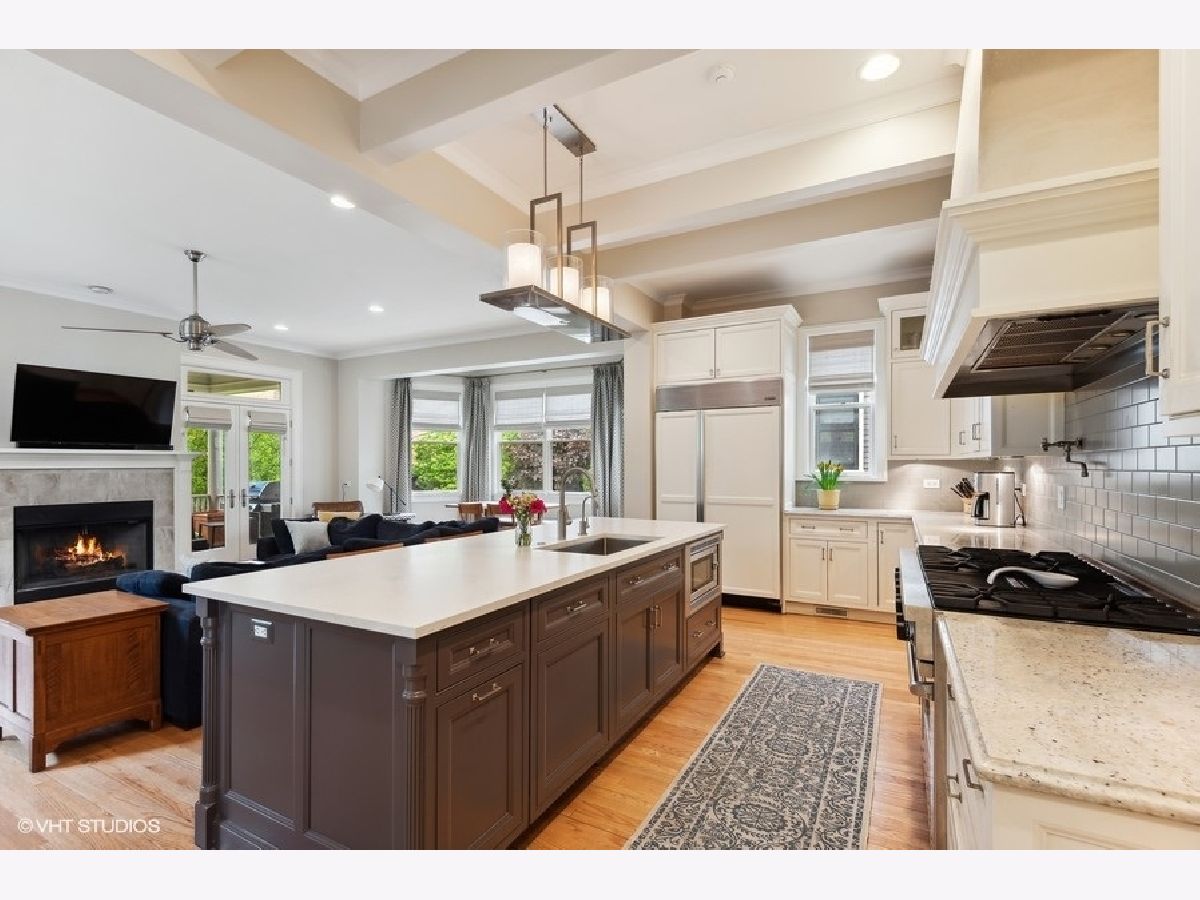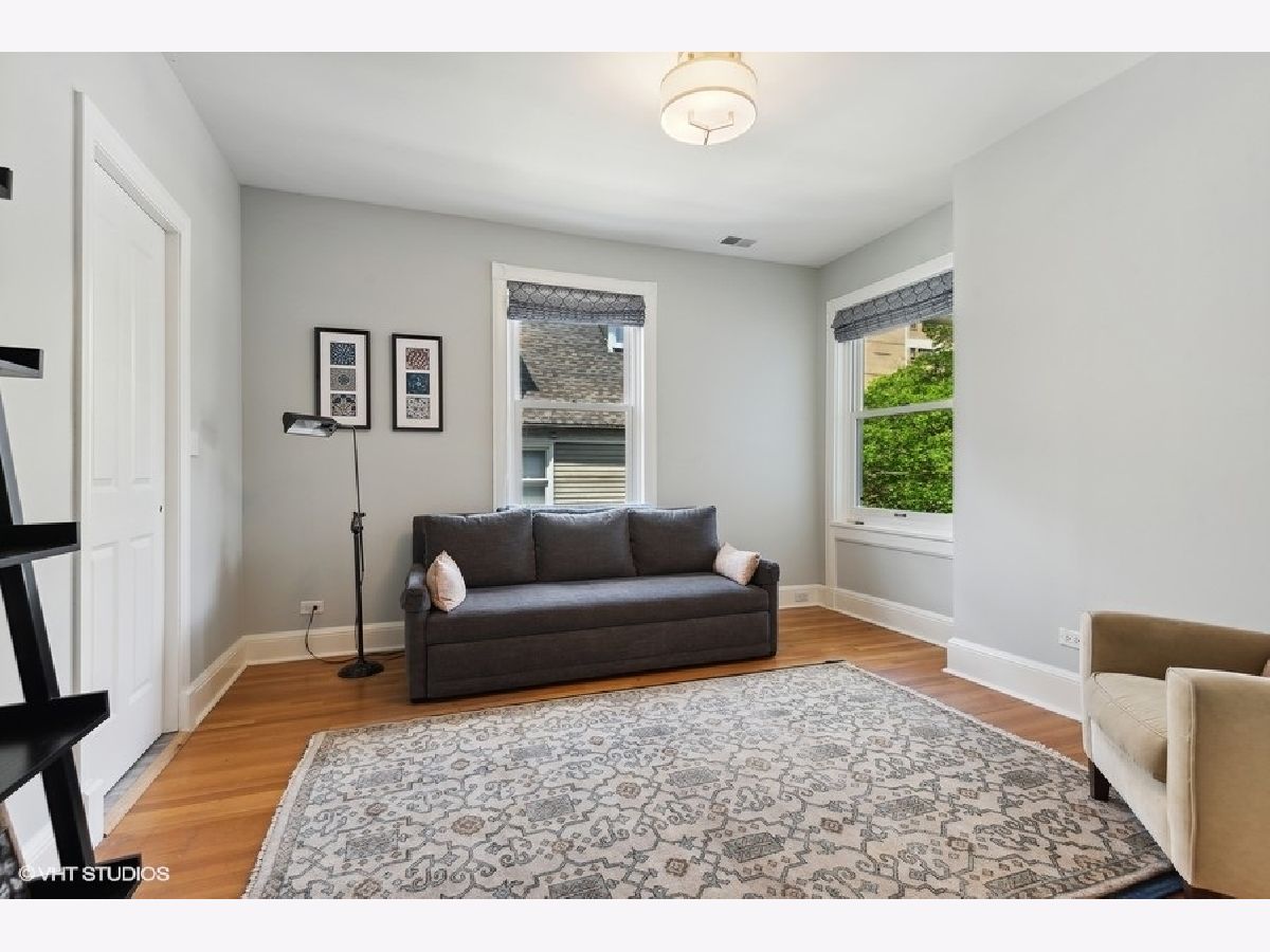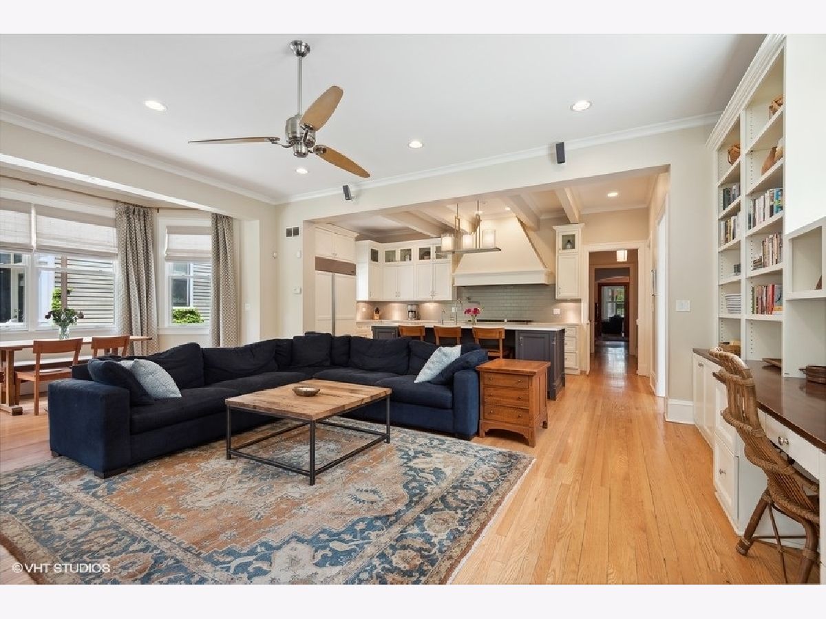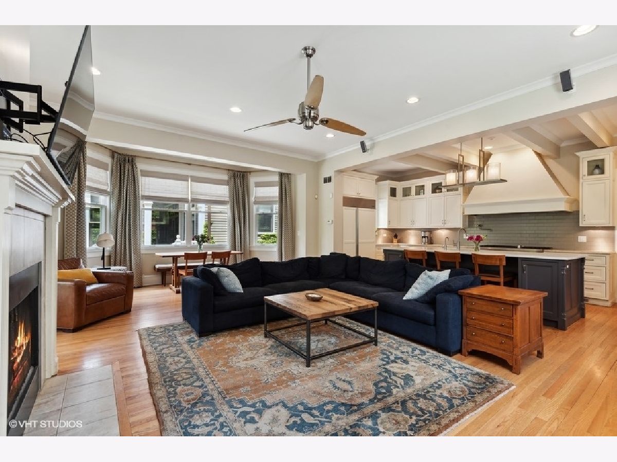 Fabulously updated home in super Hyde Park location, walking distance to University of Chicago, Lab School, Metra, local shops and restaurants. Perfect blend of modern updates and vintage old-world charm! Outstanding floor plan that features the sought-after open kitchen/family room/eating area combo with fully updated kitchen - white and grey cabinetry, natural stone counters, high end appliances, breakfast counter and lots of workspace for the chef in the family! Spacious family room offers a cozy fireplace for winter nights and the eating area is large enough for a farm table of 12. The tastefully crafted built-in shelving units and desk arrangement is great for extra storage and display. Amazing space with lots of windows letting in warm natural light and 2 sets of French doors lead you to the large rear covered porch where you can enjoy the outdoors and yard. The large formal living and dining rooms, both with fireplaces, have ample space for relaxing and entertaining. The den sits at the front of the home just off the large foyer and overlooks the welcoming wrap around porch. The entry with original staircase, natural wood tones and high ceilings feels warm and inviting. The 2nd floor has a primary suite with 2 closets (1 large walk-in) and a newer primary bath complete with double vanity and a walk-in shower. All bedrooms are large with good natural light. Bedrooms #2 and #3 share an updated bathroom and bedroom #4 is en-suite with another recently updated full bath. A spacious and convenient laundry room completes the 2nd floor. The 3rd floor opens to a great room (currently used as a bedroom) with vaulted ceilings and a skylight. You'll also find bedroom #5 plus another full bathroom. The finished basement has several rooms that include 2 bedrooms, an exercise room a kitchenette and a full bathroom. Zoned heating and cooling, 2 car brick-paver parking pad with electronic gated entry. Style, function and beauty - Move right in and love where you live!