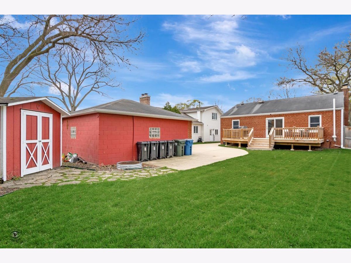 Beautifully updated brick ranch in the Hillcrest Neighborhood. Wood Burning Fireplace in the LR, Laminate flooring in the LR,DR and Bedrooms. New kitchen with 42 inch white cabinets, pantry, Kohler Sink and Faucet, quartz counters and marble backsplash. Newer appliances including a built in microwave. Middle Bedroom has glass doors that go out to a newer large deck with natural gas grill. Concrete driveway 7 years old. Detached brick two car garage. Furnace and Central air is 7 years old. Copper plumbing and HEPA Air Cleaner on the furnace. The windows have been replaced. Full basement waiting for your finishing touches. Fantastic location in a neighborhood with mature trees. Walking distance to Hillcrest Elementary School and the village center. Only 1.3 Miles to the Main St. METRA station.