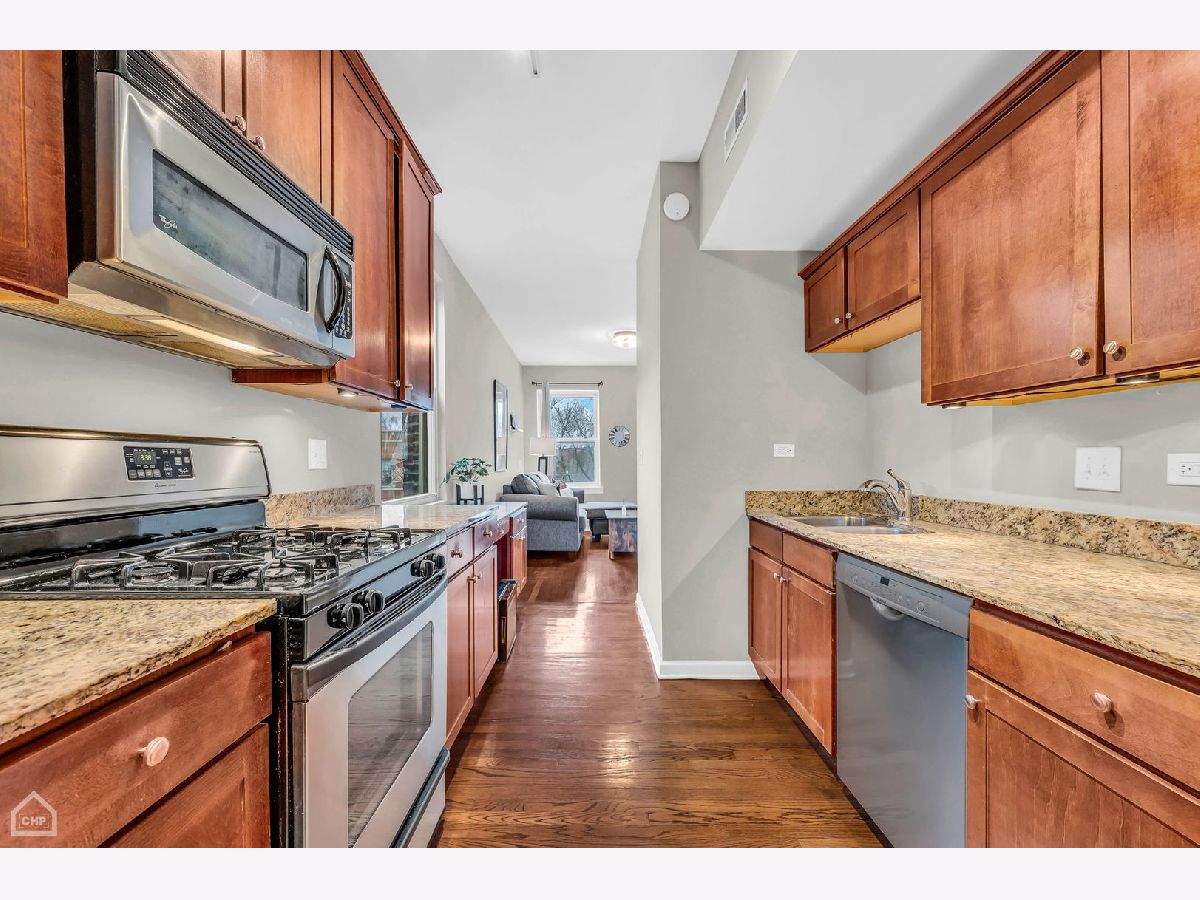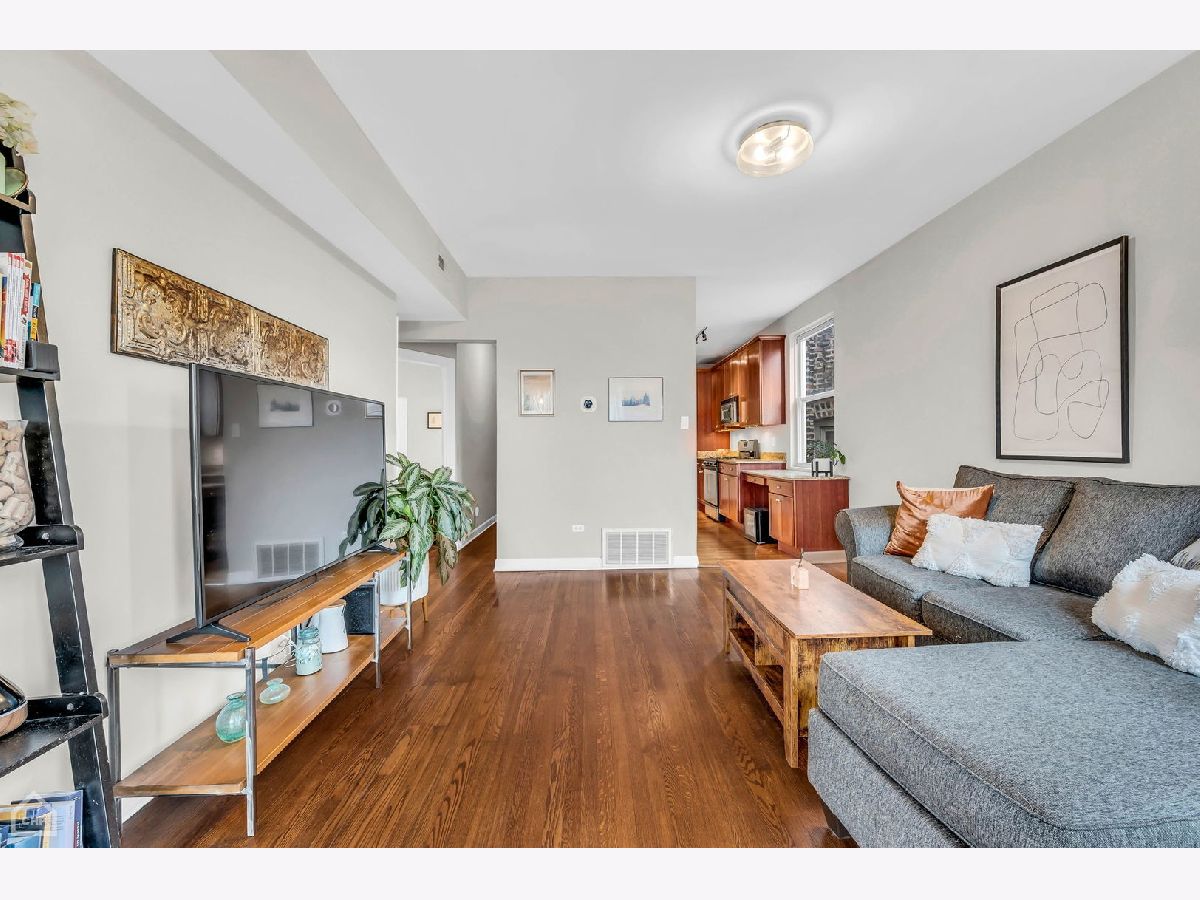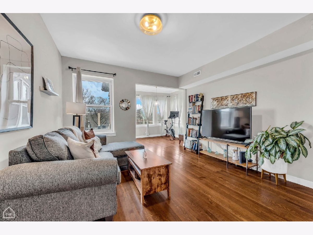 Bright and spacious 2 BR/1 bath top floor unit in Magnolia Glen/Edgewater area. Hardwood floors throughout this charming unit, in unit washer/dryer, nicely sized living room and Nest thermostat make this welcome home one to desire. Bonus sunroom/dining room/flex space off of of the front of the unit with multiple windows, bringing in endless sunlight. Kitchen features granite counters, SS appliances and ample cabinet space. Shared deck space off of kitchen/rear of unit. Additional storage and bike room in building. Great location close to Loyola, public transit, restaurants and more! Easy street parking on side streets.