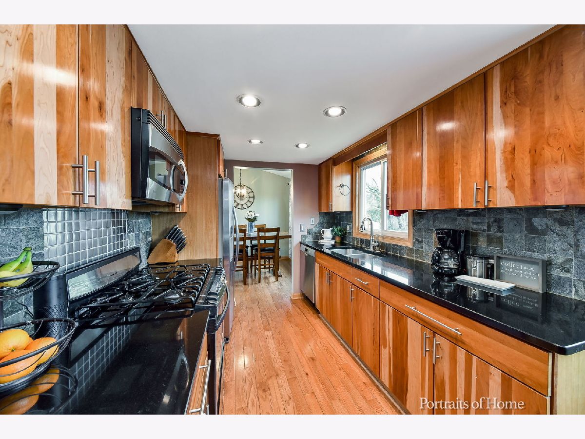 This IS the one you've been looking for! Freshly Painted 3 Bedroom, 1 1/2 Bath, Partially Finished Basement, 2 Car garage, Updated and Move-In Ready! Amazing location backing into Armstrong Park, walking path, near the library and highly rated elementary and middle schools. Walk into this Bright, Open Living Room with Vaulted Ceilings and Hardwood floors. Enjoy the beautiful Kitchen with Cherry Cabinets, Granite Counter Tops, SS Appliances and Wonderful Island & Breakfast Bar. Take 2 short steps into your Cozy Family Room featuring an Inviting Gas Fireplace with sliding doors opening to a lovely Stamped Concrete Patio and completely Fenced in Yard for outdoor fun and entertainment! The 3 Bedrooms upstairs feature a spacious walk-in closet in the master Bedroom and Updated walk-through Master Bath and newer carpeting throughout. The Basement is partially finished for whatever extra space you need from a Rec Room, Office, TV Room, or a Playroom! Your choice! And don't miss the extra storage space that is always needed! A new sump pump and back-up generator are a plus! New carpeting in 2018, 2017 Furnace, 2019 Washer & Dryer, Basement Wet Bar 2019, Basement flooring 2016, newer lowE windows and Updates throughout! This is a MUST SEE! It will Not disappoint! Welcome Home!