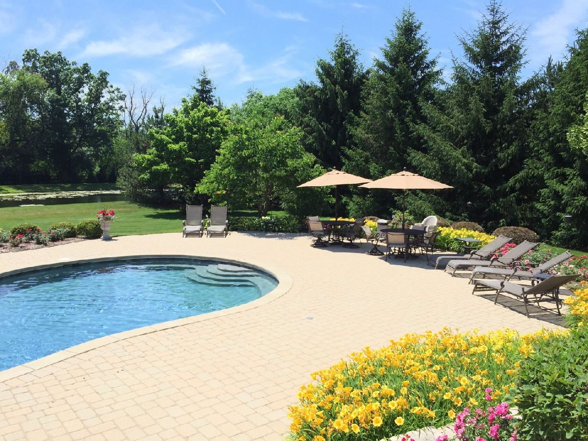 Custom all brick Luxury Resort style HOME positioned on 1.84 acres, lush, mature landscaping and backing to a tranquil pond in desirable Nickels & Dimes Farm. From the moment you arrive you will be impressed! Spacious, bright and neutral, open concept floor plan. Grand entrance into the 2 story foyer with cascading staircase, formal living and dining room and spectacular 2 story family room. Dramatic windows flank the beautiful fireplace. Architectural pillars, deep crown molding, wide trim and lovely stone floors will impress. Cozy days and nights can be spent in the bright sunroom. The private office can double as a main floor guest room. A gourmet cook would love to have this recently updated white kitchen. Quartz topped cabinetry, high end appliances..SubZero & Thermador are sure to please. An additional staircase to the 2nd floor, main floor laundry room, walk in pantry and powder room meet the standards for high function. The double door entry Primary Bedroom offers a fireplace, recessed tray ceiling and wardrobe/dressing area. The elegant bathroom is highlighted by a pillar surround bathtub, dual vanities and a spacious shower. Four additional bedrooms and 3 2 bathrooms complete the second floor. High quality finished in the lower level will not disappoint. Bedroom 5 with private bathroom, a multi purpose room with a glass block wall, billiard room with daylight windows, media room and an impressive bar..no doubt this will be a favorite area in the home. The property is glorious! The newly resurfaced inground pool is state of the art. Beautiful stone pavers surround the pool and are carried throughout the entertaining area. A limestone firepit is a year round favorite. The pond (shared by the neighboring home offers endless entertainment...ice skating, fishing, bird watching and even paddle boarding to name a few. The current owners made this home an outdoor sanctuary with landscaping and hardscapes. Nothing has been overlooked in this HOME! Bike ride the River trail, easy access to Downtown Libertyville, Metra and highways. Independence Grove is easy walking/biking distance. This is truly the HOME of your Dreams!